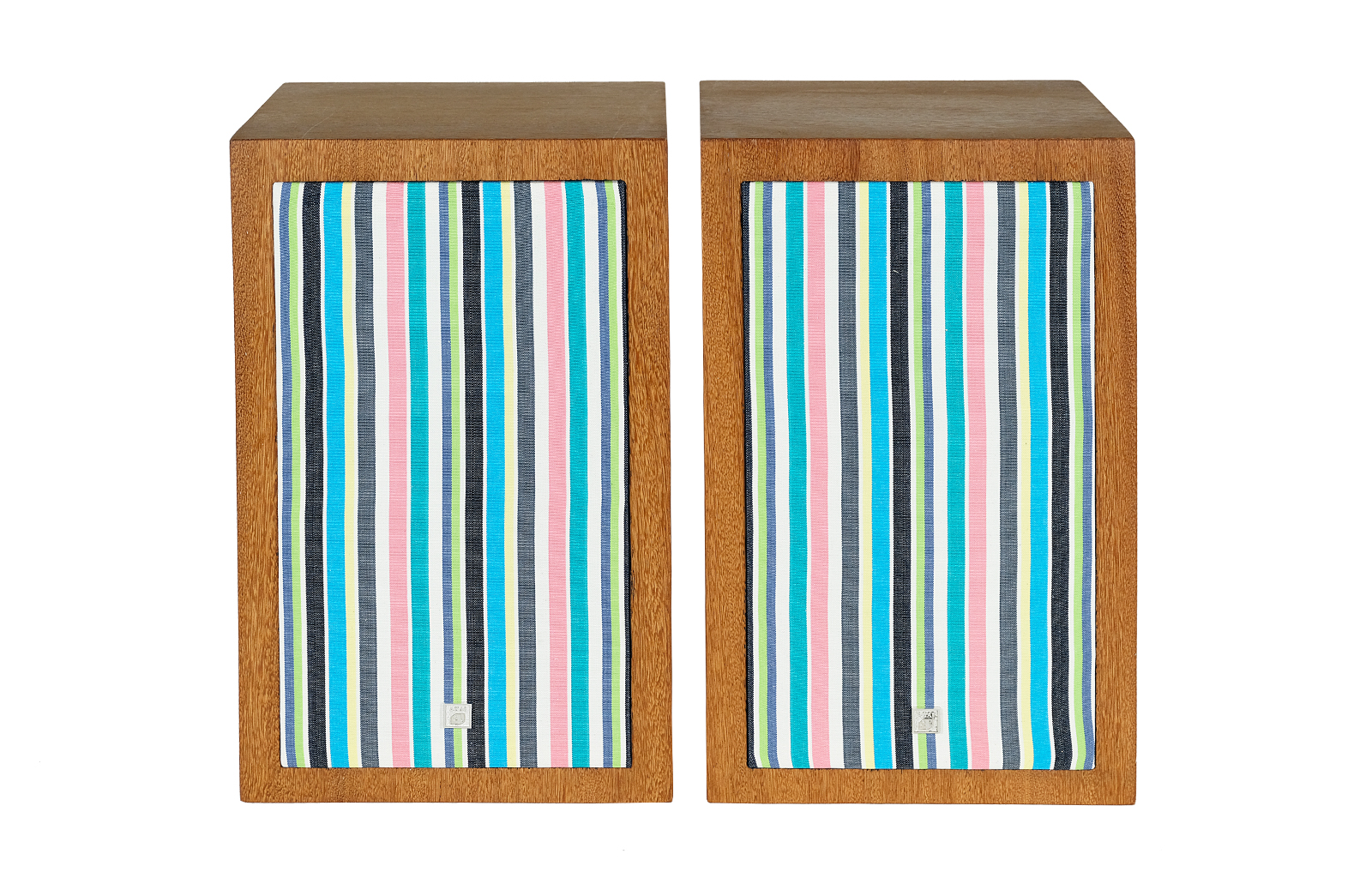 The enclosures have been completely revitalized. The exotic iroko wood adds incredible charm to the speakers. High quality finishing screws. Grilles made of high-quality fabric. The wood finish is Chinese oils produced from natural oils. The wood is very pleasant to the touch. The set has been fully reviewed and serviced.