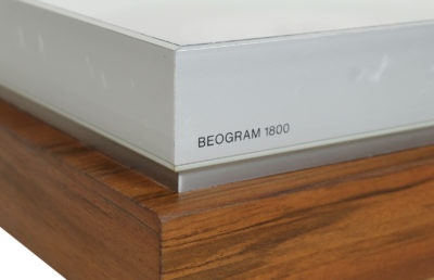 Beogram 1800 was designed by Jacob Jensen in the late 1960s. At the Hanover Fair in 1969, it was one of the products for which Bang & Olufsen received the iF award in the category of “Outstanding Industrial Design”. This is a rare and interesting model. Compared to the first Beogram number 1000, 1800 boasted a new arm and motor. Jensen, however, decided to keep a lot of its predecessor’s design and the matte rubber mat. What made Beogram 1800 stand out was a very unusual dust cover with a metal frame and a transparent top panel.