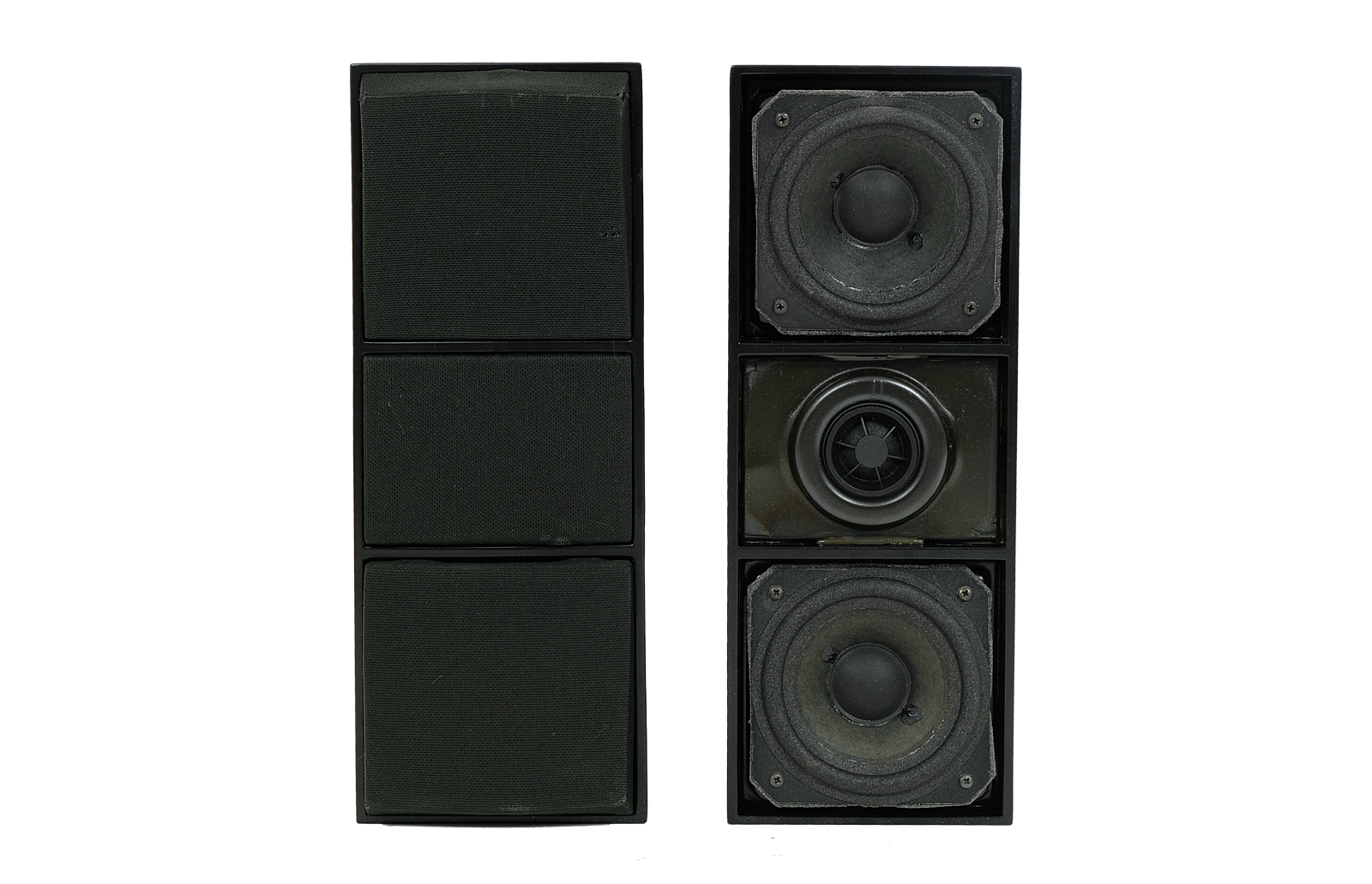 The enclosures have undergone total revitalization, sandblasted and painted with powder paint burned in the oven at a very high temperature. Housings made of aluminum. Original speakers.