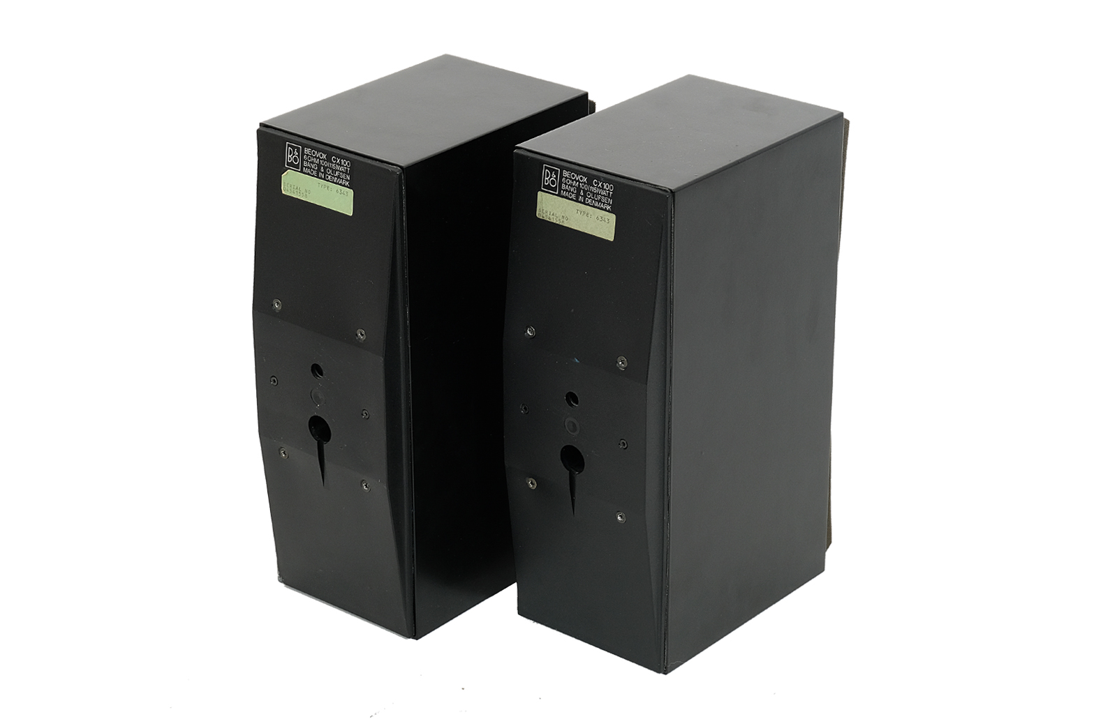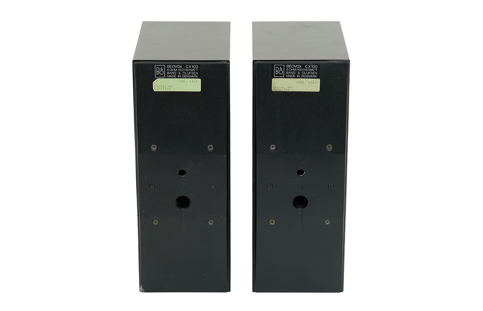 Beovox CX100, 32 cm high, is the largest of a series of compact aluminum speakers launched by B&O. Although they were no higher than a vinyl record, the sound quality was the same as in full-size Beovox models. The CX100 loudspeakers have been designed for small rooms so that the sound is well-balanced and every type of music sounds completely natural.