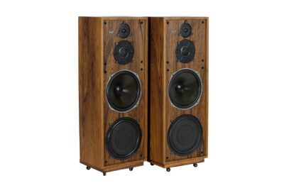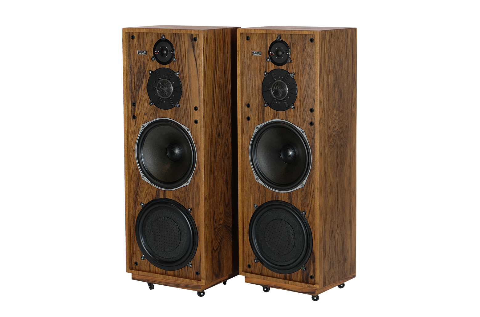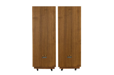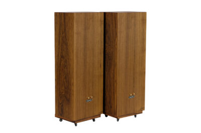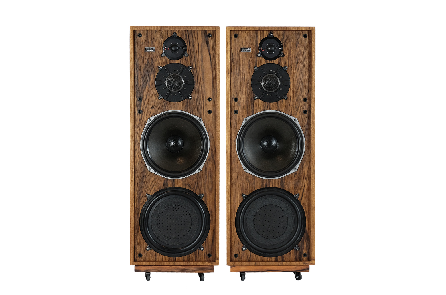 The enclosures have been completely revitalized. Teak wood adds incredible charm to the speakers. New grilles and speaker terminals. The wood finish is Chinese oil produced from natural oils and natural turpentine-based beeswax. The wood is extremely pleasant to the touch. New front panel made on CNC. The metal elements of the enclosures were cleaned and painted using the automotive wet painting technique.  Mobile speakers platform included. The capacitors in the crossover have been replaced. Speakers have been fully revitalised.