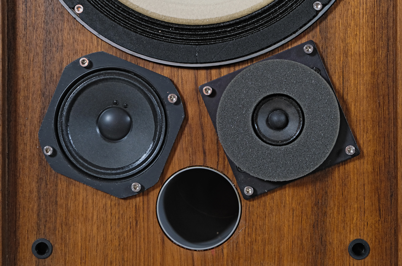 Original enclosures from the 70s renovated using the highest quality materials. This project uses one of the most beautiful and exclusive types of decorative wood, teak. It has been finished with Chinese oil produced from natural oils and natural turpentine-based beeswax. As a result, the original structure and hue of the wood were emphasised, and the enclosures are well protected and very pleasant to the touch. Every detail was taken care of. Professional acoustic sponge and new grilles in JBL’s characteristic shade of blue blend beautifully with the rosewood. The set also includes standard stickers with the name of the model. The enclosures are equipped with new speaker terminals.