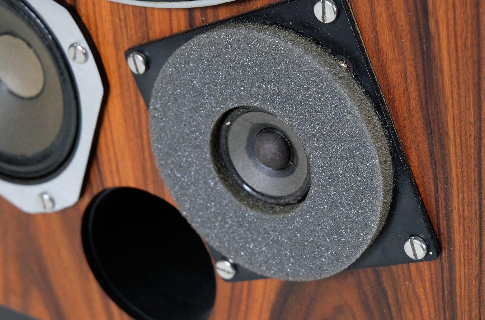 The enclosures have been completely revitalized. American cherry and rosewood wood adds incredible charm to the speakers. High quality finishing screws. New foams in the tweeters. New brand sticker with model marking. New potentiometers. The fronts of the speakers were painted using the automotive wet painting technique. The wood finish is Chinese oil produced from natural oils and natural turpentine-based beeswax. The wood is very pleasant to the touch.