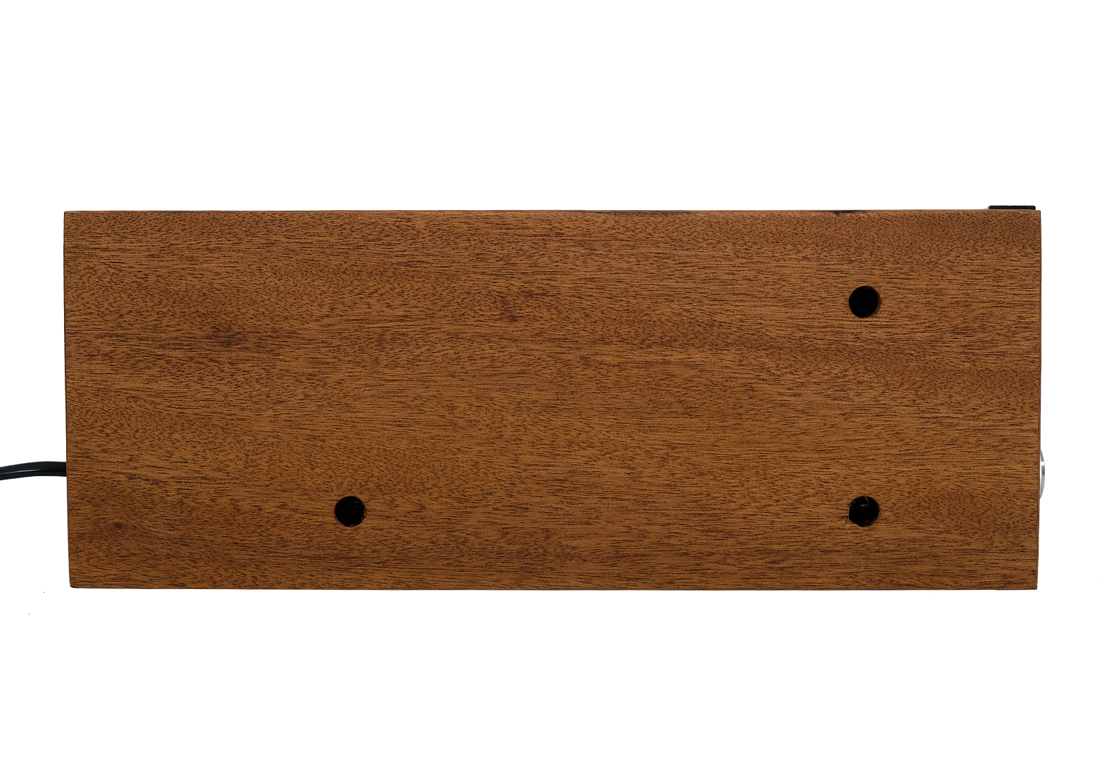 The case has been completely revitalized, potentiometers are in perfect condition. The metal elements of the case were sandblasted and powder coated, fired at high temperature. The new side boards made of the exotic doussie wood make it look elegant and distinguished. The front panel is made of aluminium. The scale is beautifully highlighted, the device does not require reprogramming.