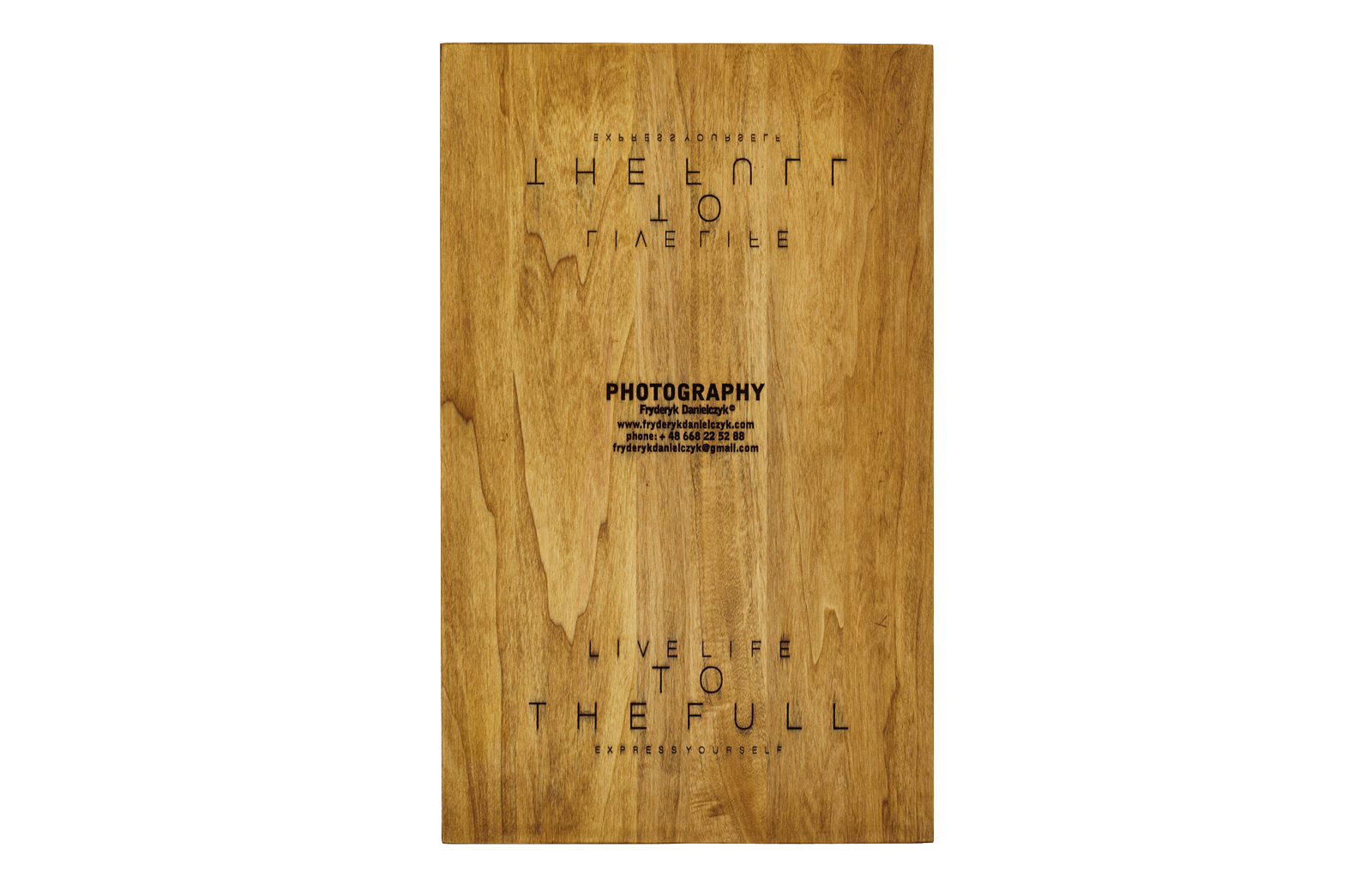 The wood used for making profiles has 8-12% of moisture content and usually is hardwood from beech, ash, alder, maple, oak, fruit trees or tropical trees. It is always the best quality timber, free of knots, sapstain or other defects. The wood I use for framing is usually seasoned in natural conditions for a few or more than ten years. Panels of wood, before they are milled, mature for a few weeks to prevent distortion of profiles. After obtaining a desired shape, the ready material is seasoned for another few weeks. A ready profile gets into my hands and the painstaking processing of each frame begins, one by one, for several months. Every frame is made with my own hands, thanks to this its uniqueness is exceptional. The material used to protect wood after processing is mostly oil. A photograph has no direct contact with the frame and glass.