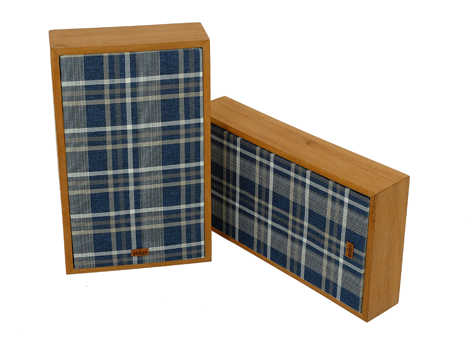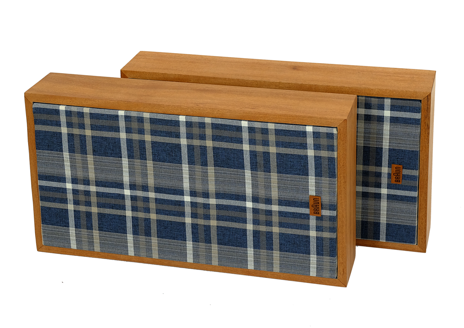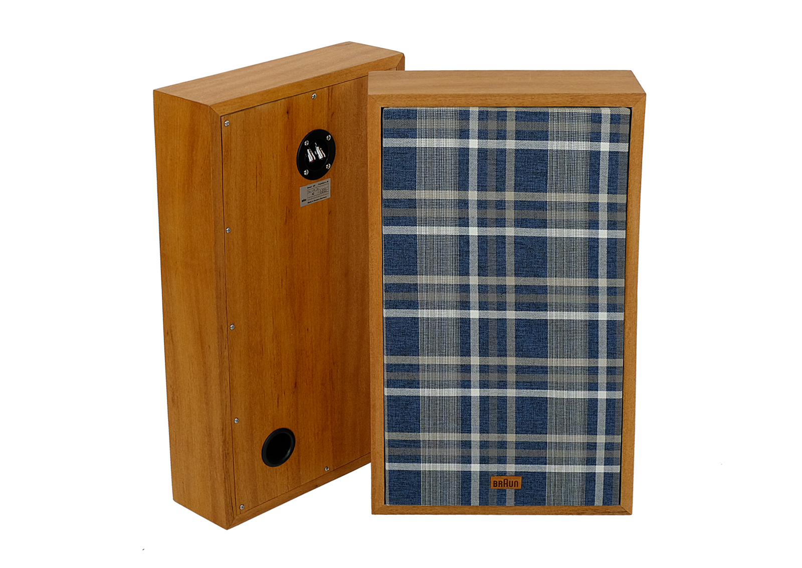 The cases have been completely revitalized. The boxes are made of the exotic doussie wood, front panel is made of Canadian maple wood. The finishing screws are high quality. The covers are made of high quality upholstery fabric. Wood finish is made with Chinese oil produced of natural oils. The wood feels nice to touch. There is a new Braun laser cut logo in exotic Jatobe wood.