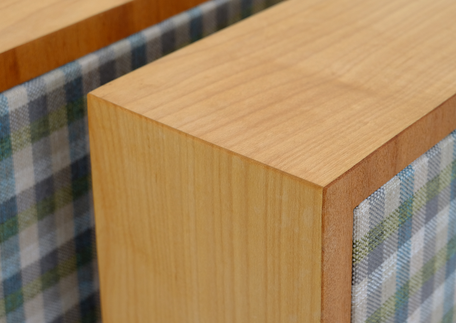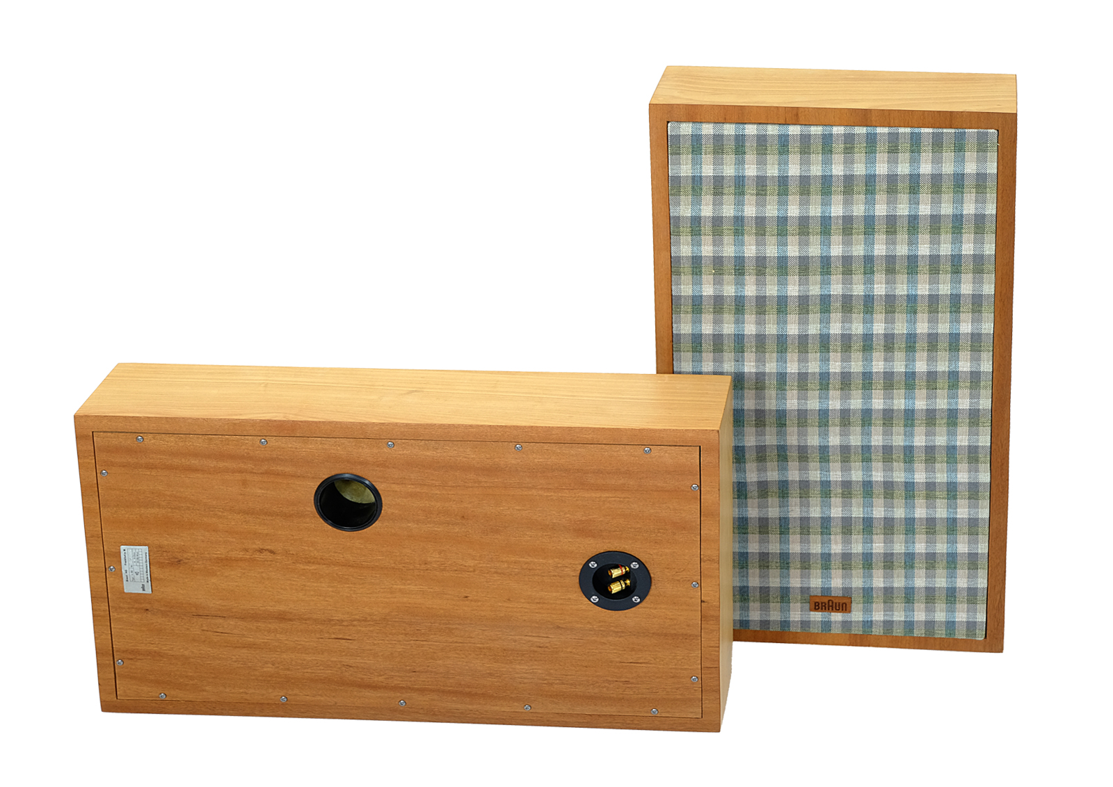 The cases have been completely revitalized. Front and real panel are made of the exotic doussie wood, the res is made of maple wood. The finishing screws are high quality. The covers are made of high quality upholstery fabric. Wood finish is made with Chinese oil produced of natural oils. The wood feels nice to touch. There is a new Braun laser cut logo in exotic Jatobe wood.