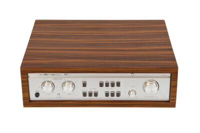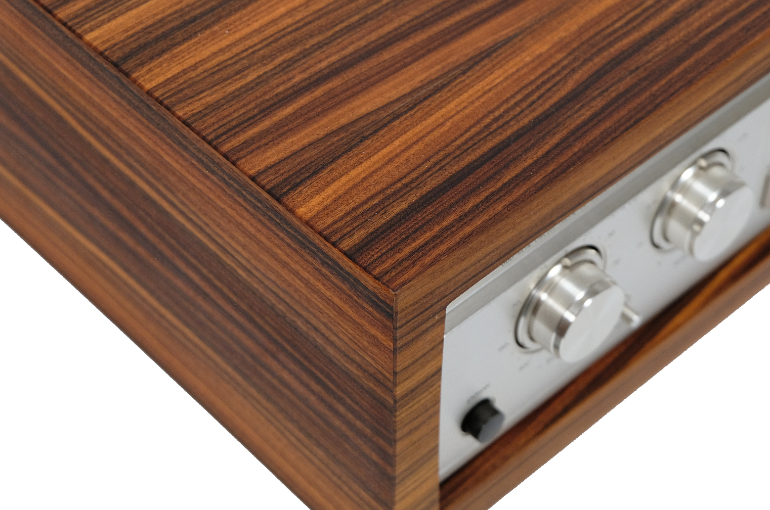 The enclosure has been completely revitalized, made of rosewood. The wood finish is Chinese oil produced from natural oils and natural turpentine-based beeswax. All external metal elements have been cleaned and painted using the automotive wet painting technique. The device has been completely reviewed and serviced. The preamplifier is equipped with new aluminum feet.