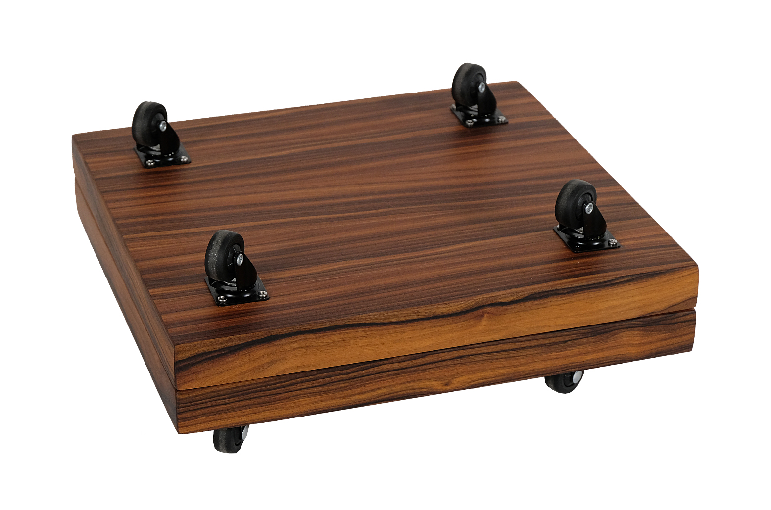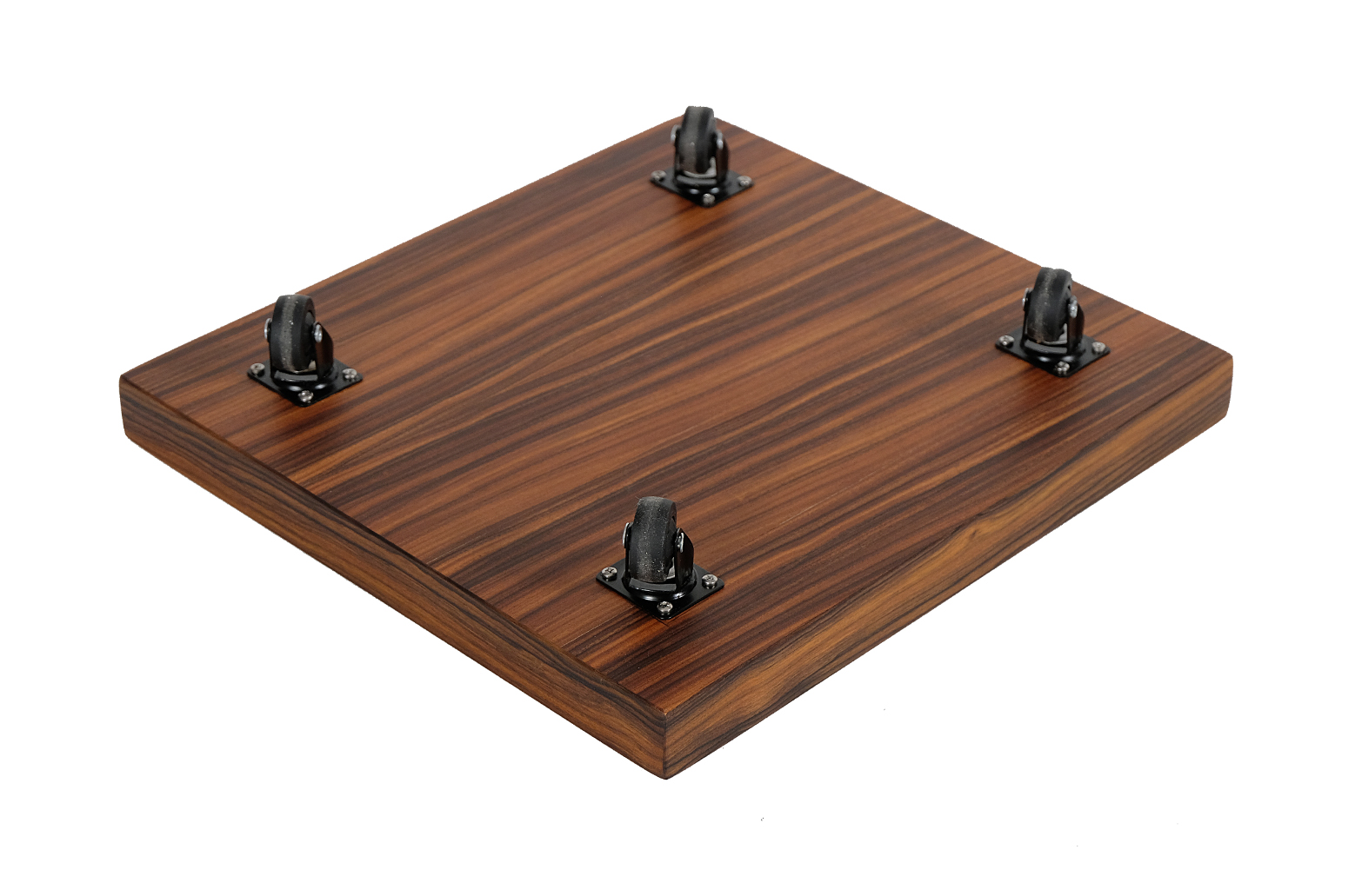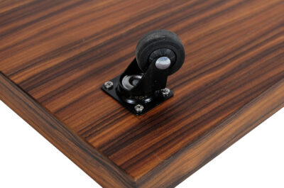 Mobile speakers platform is an elegant, high quality stand for arranging and moving heavier models of floor-standing loudspeakers. This project uses one of the most beautiful and precious types of decorative wood – rosewood. It has been finished with Chinese oil produced from natural oils and natural turpentine-based beeswax. As a result, the wood is well protected and its original structure and hue were emphasised. The platform is also equipped with rubber swivel wheels with metal bearings and a brake.