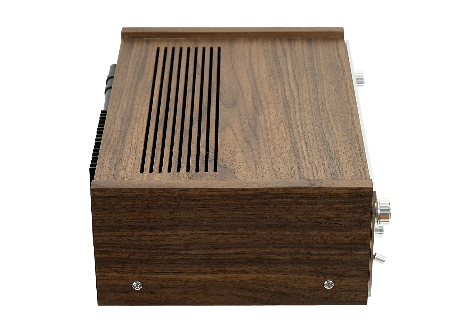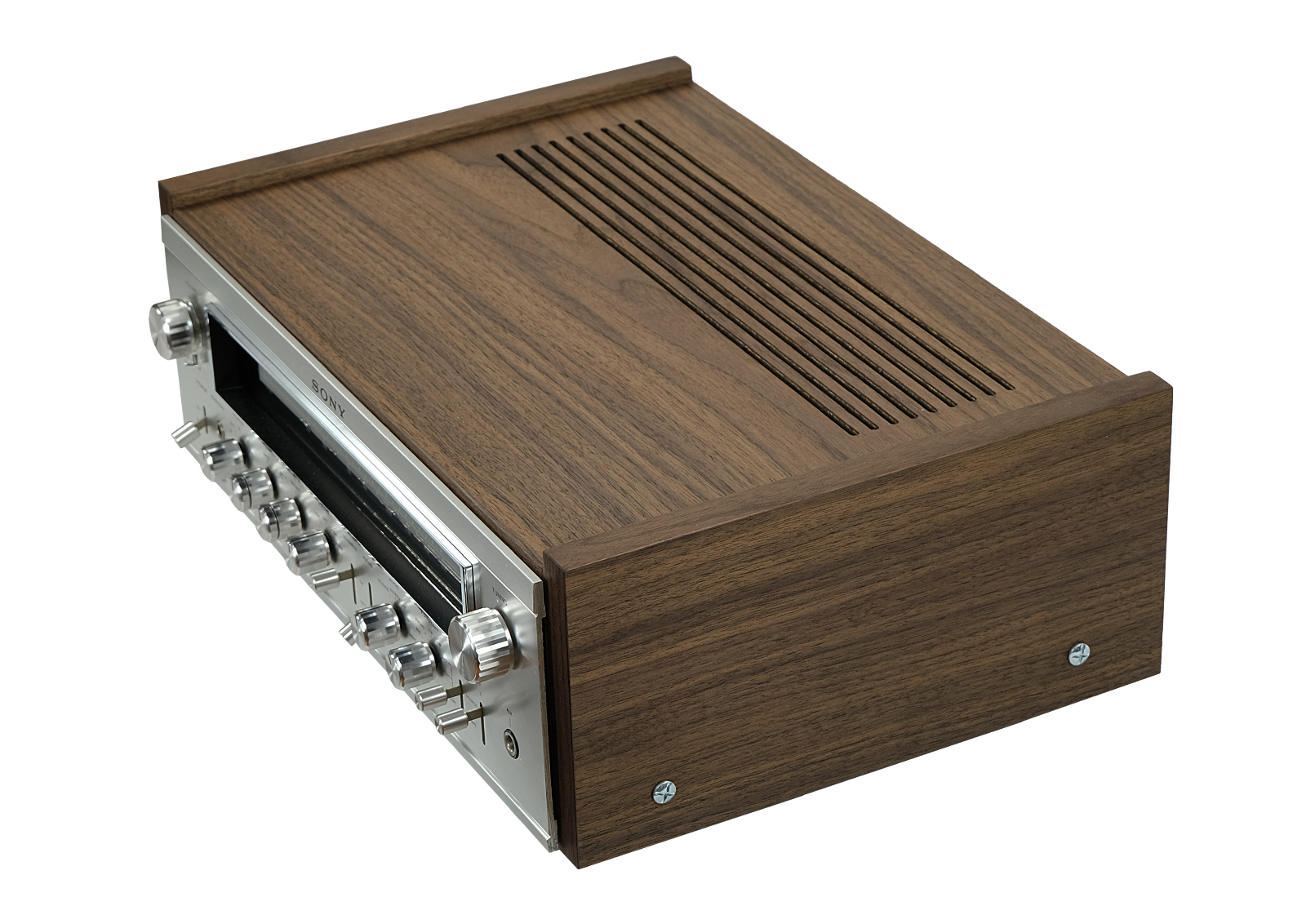 The presented version of STR-7055 comes in a metal enclosure. The new wooden enclosure was built from scratch basing on original designs from the 70s. American walnut wood was used and the upper element was CNC milled. The wood finish is Chinese oil produced from natural oils. Potentiometers in perfect condition. The device has been completely reviewed and serviced. Collector’s item. In perfect condition.
