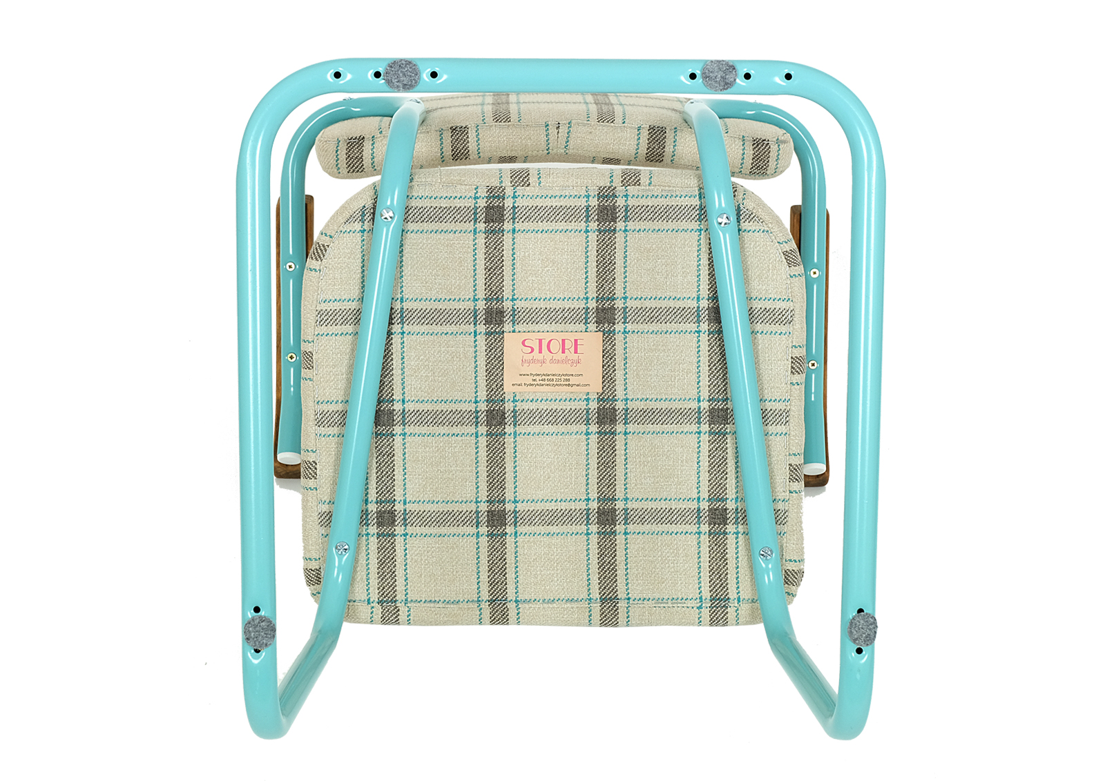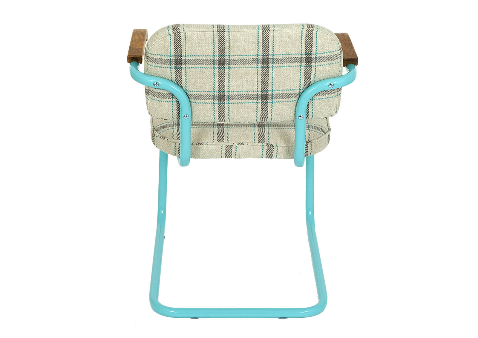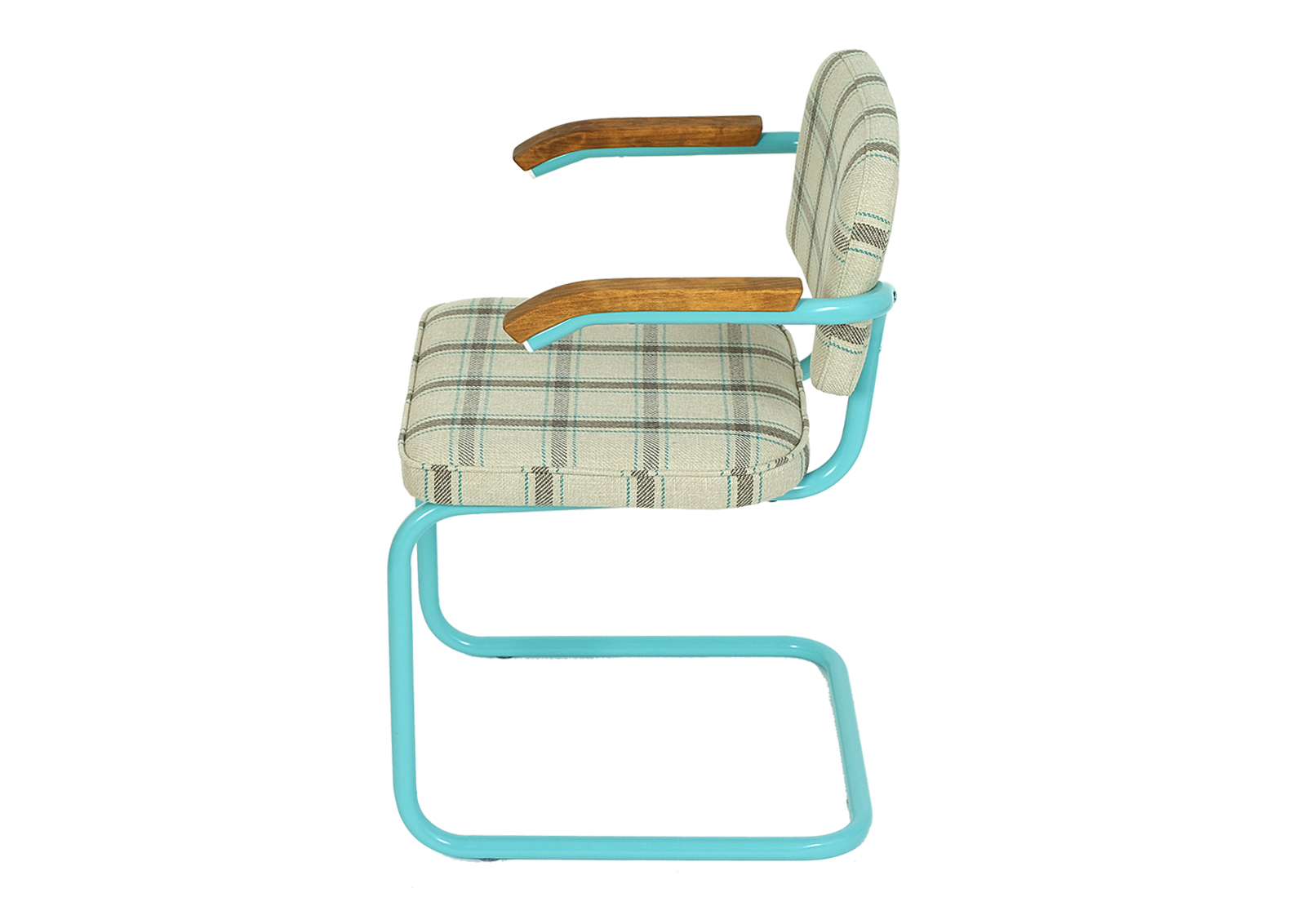 The chair has a steel frame, a wide, comfortable seat and an ergonomically contoured backrest, with the ability to swing. A solid, upholstered headrest and seat. Steel armrests with wooden covers. Comfortable seat for meditation.