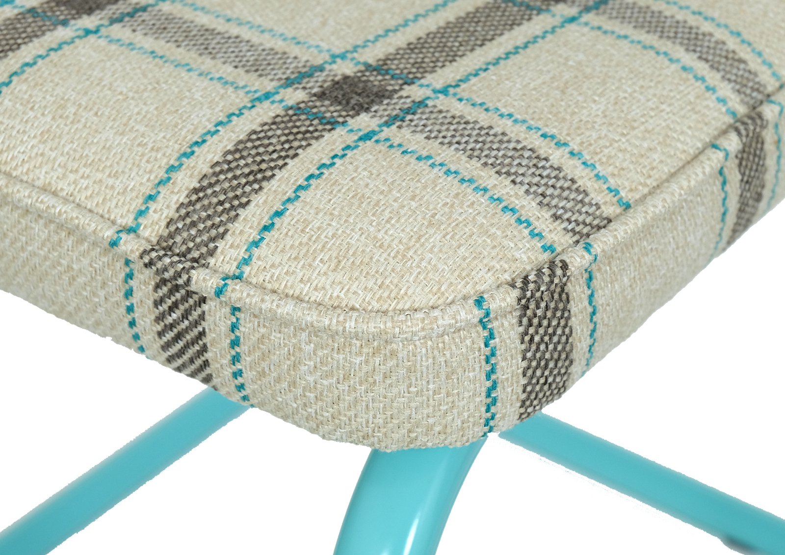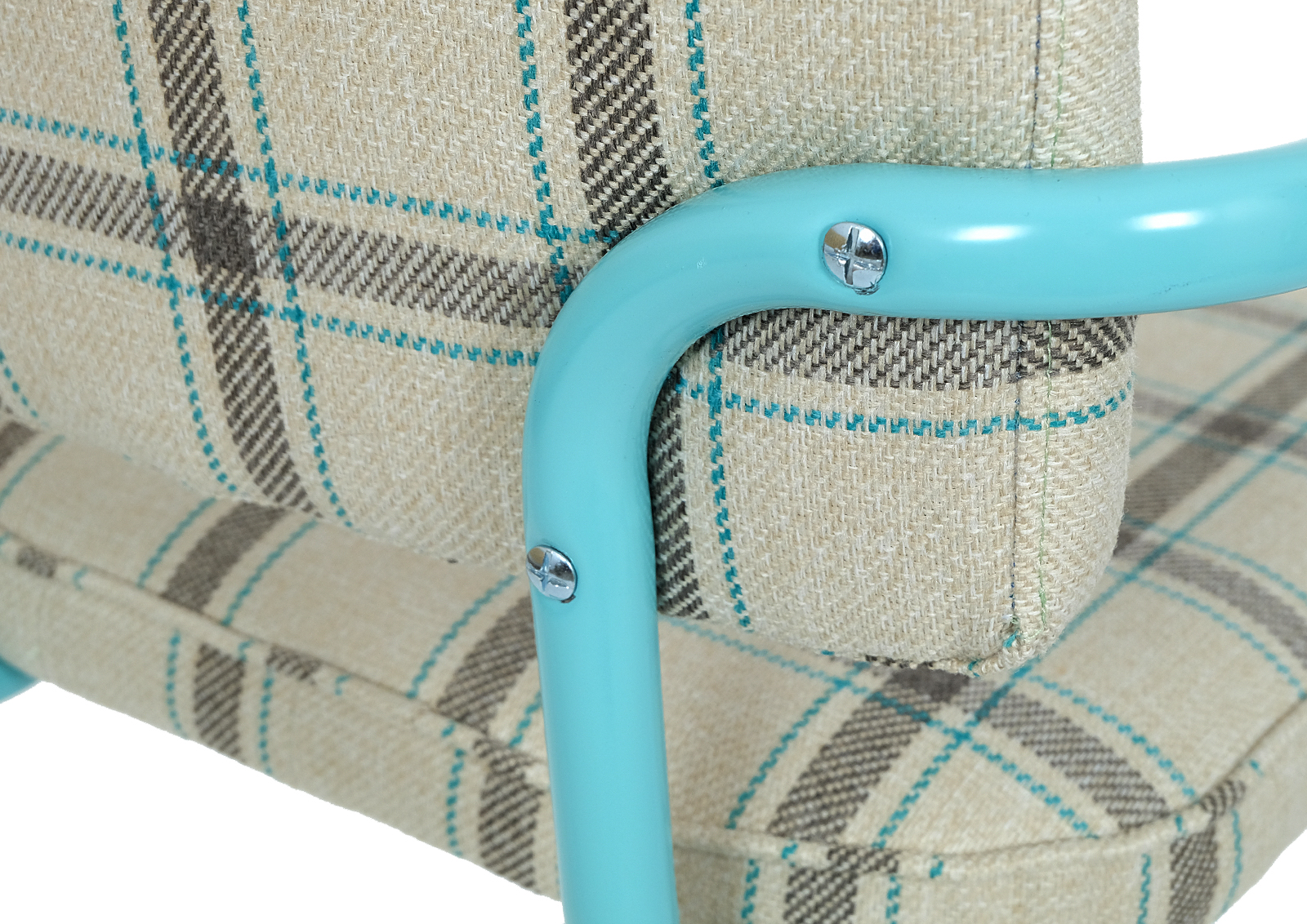 Hand-sewn. Very good quality fabric, abrasion resistance 30,000 strokes. New metal screws. Adjustable chair legs with felt floor protectors.