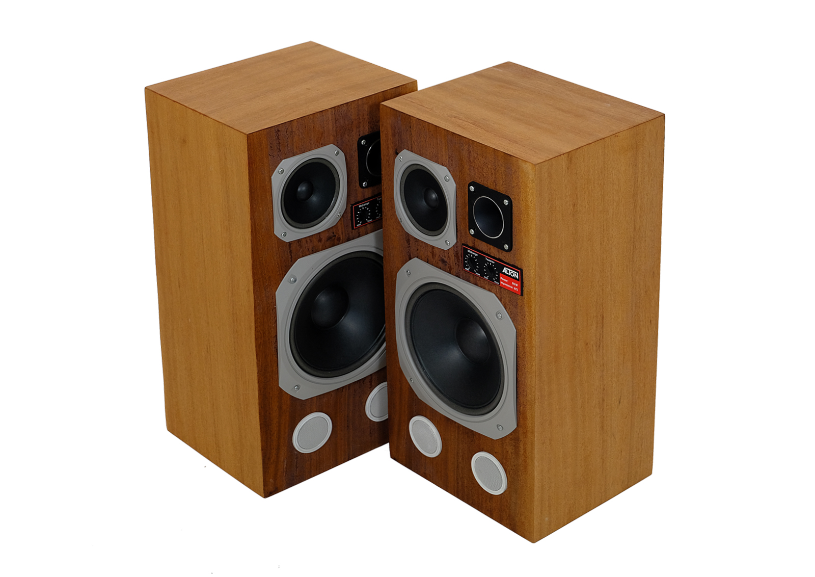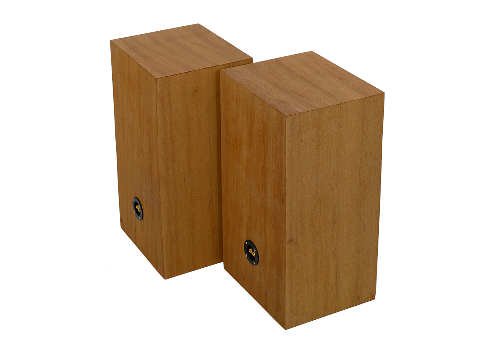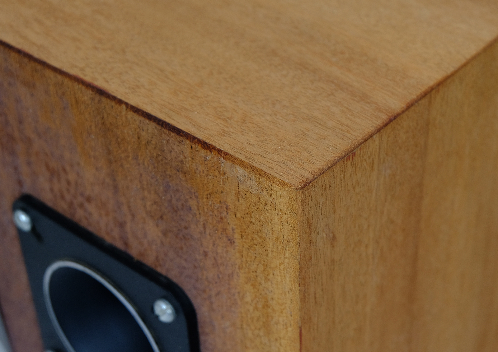 The enclosures have been completely revitalized. The front panel is made of exotic sapeli wood, the rest is made of doussie. High quality finishing screws. Speaker grilles painted with high quality car paint. The wood finish is Chinese oil produced from natural oils. The wood is very pleasant to the touch.