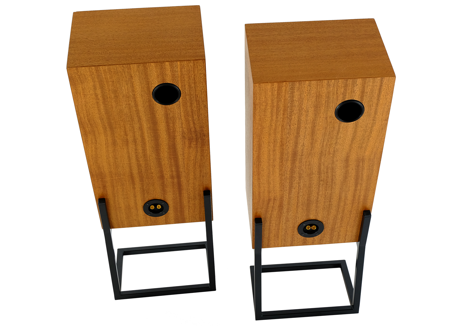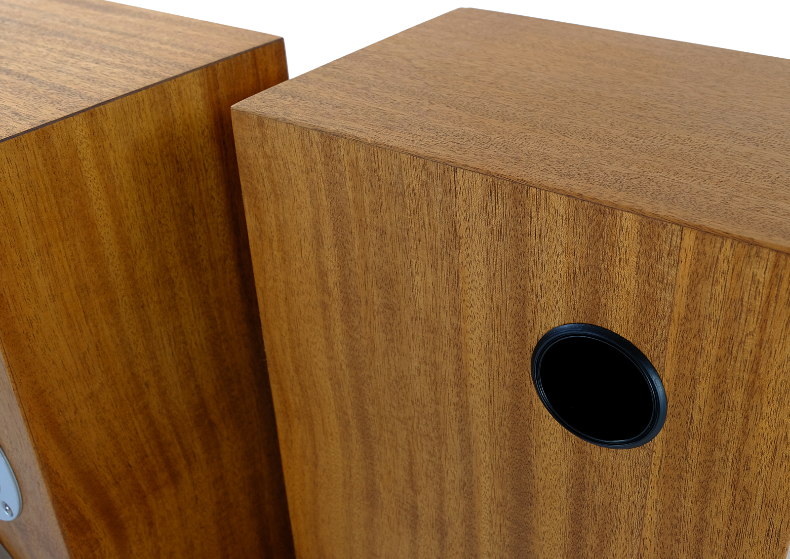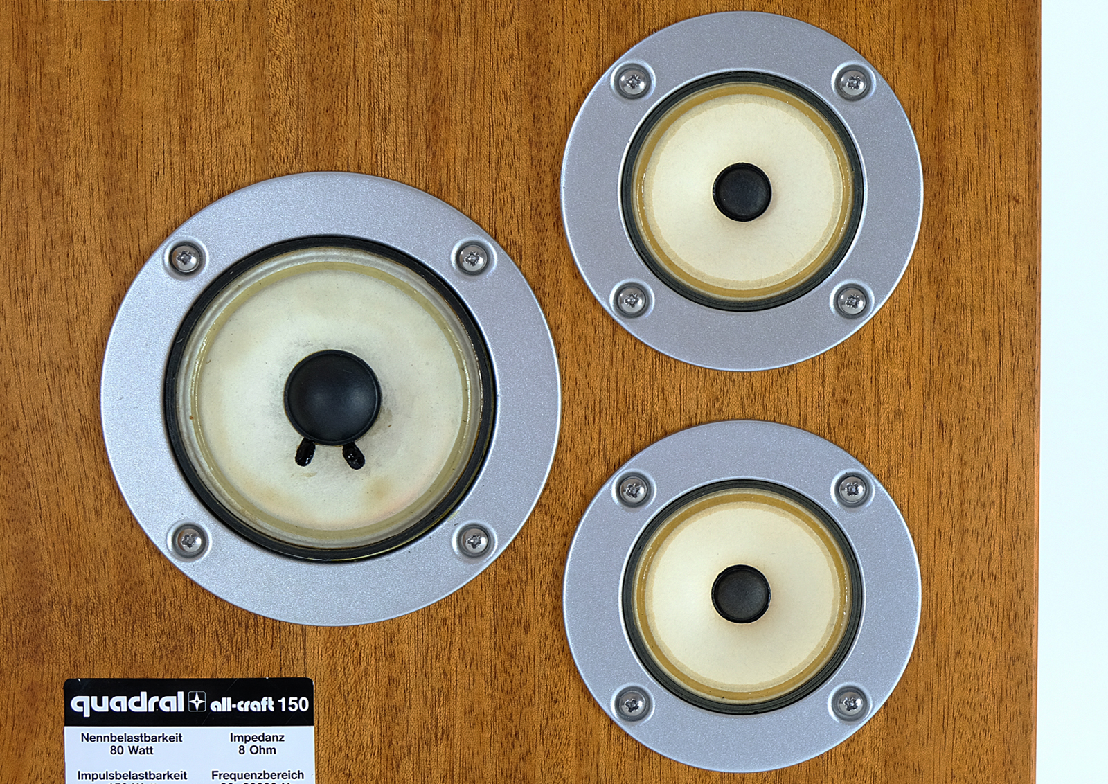 The cases have been fully revitalised. Exotic mahogany gives the speakers the additional charm. The white membranes give the set their smart and elegant look. The wood has been treated with Chinese natural oil, smooth to touch.