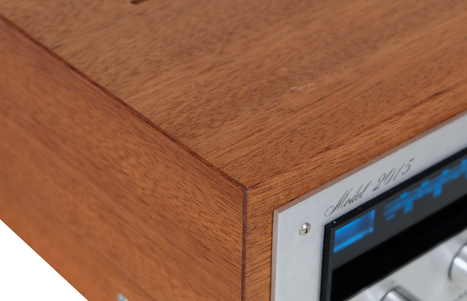 Prezentowany model został wyposażony w nową powiększoną obudowę z drewna egzotycznego meranti, która podkreśla jego piękny charakterystyczny dla lat 70tych dizajn. Wykończenie drewna to olej chiński produkowany na bazie naturalnych olei oraz naturalny wosk pszczeli na bazie terpentyny. Potencjometry w idealnym stanie. Panel przedni wykonany ze szczotkowanego aluminium. Urządzenie po całkowitym przeglądzie i serwisie, zostało wyposażone w nowe aluminiowe nóżki.
