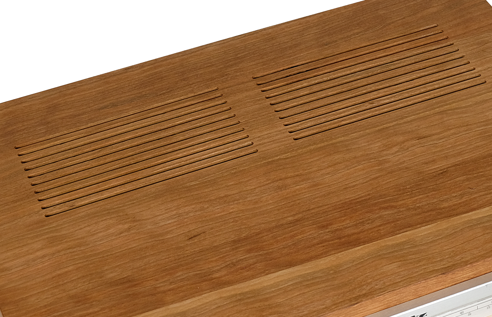 Prezentowany model został wyposażony w nową powiększoną obudowę z drewna czereśni amerykańskiej, która podkreśla jego piękny charakterystyczny dla lat 80tych dizajn. Wykończenie drewna to olej chiński produkowany na bazie naturalnych olei. Potencjometry w idealnym stanie. Urządzenie po całkowitym przeglądzie i serwisie.