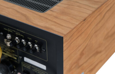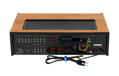 Prezentowany model został wyposażony w nową obudowę z drewna czereśni amerykańskiej, która podkreśla jego piękny charakterystyczny dla lat 70tych dizajn. Wykończenie drewna to olej chiński produkowany na bazie naturalnych olei oraz naturalny wosk pszczeli na bazie terpentyny. Potencjometry w idealnym stanie. Metalowe i tylne elementy obudowy zostały oczyszczone i pomalowane przy użyciu samochodowej techniki lakierniczej “na mokro”. Urządzenie po całkowitym przeglądzie i serwisie.