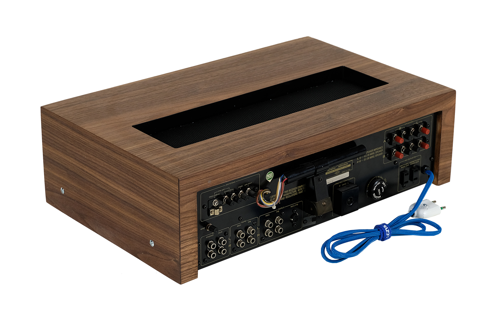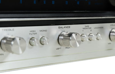 Prezentowany model został wyposażony w nową powiększoną obudowę z drewna orzecha amerykańskiego, która podkreśla jego piękny charakterystyczny dla lat 70tych dizajn. Wykończenie drewna to olej chiński produkowany na bazie naturalnych olej. Potencjometry w idealnym stanie. Metalowe elementy obudowy zostały oczyszczone i pomalowane przy użyciu samochodowej techniki lakierniczej “na mokro”. Urządzenie po całkowitym przeglądzie i serwisie.
