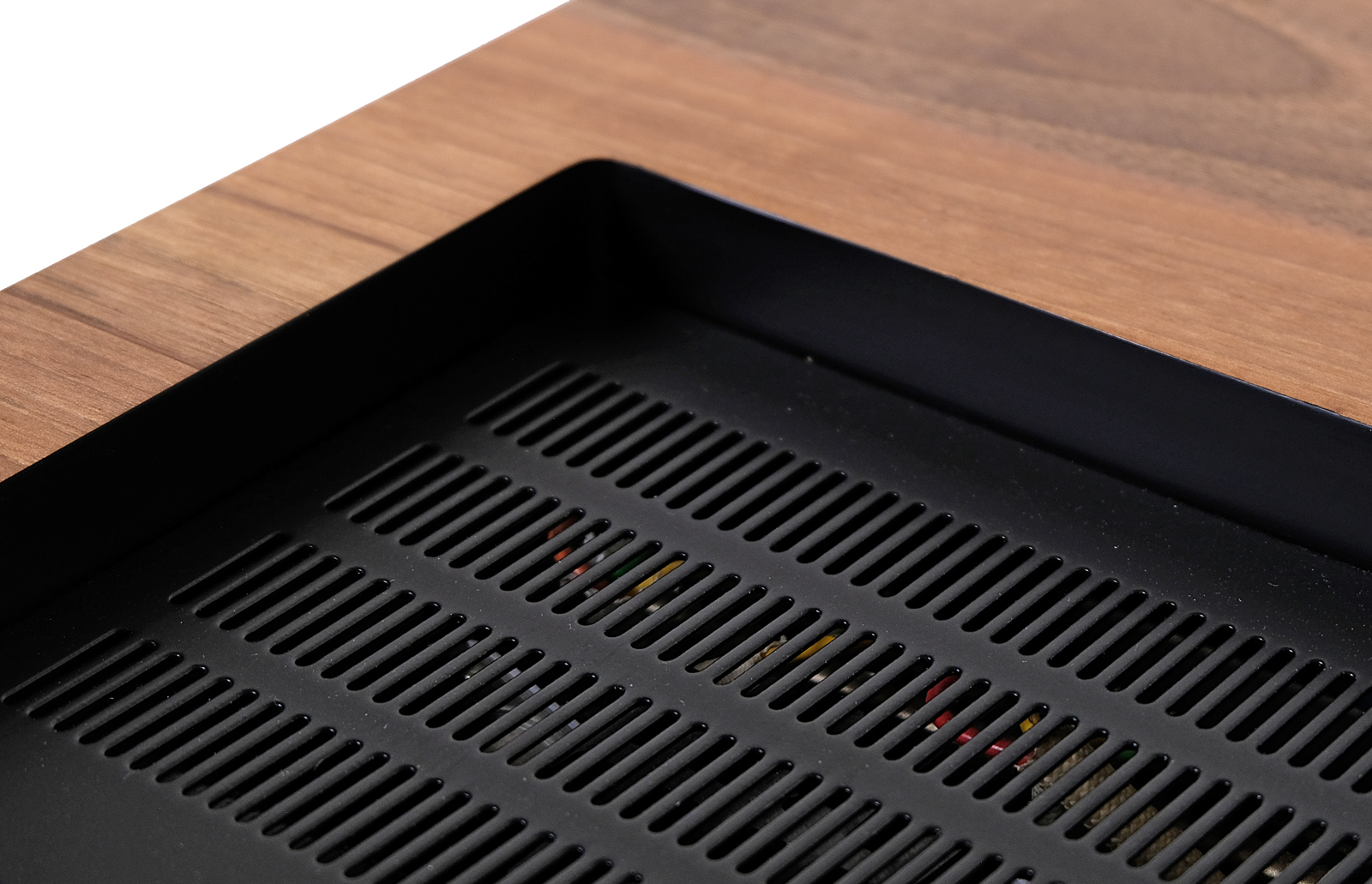 Prezentowany model został wyposażony w nową powiększoną obudowę z drewna orzecha włoskiego, która podkreśla jego piękny charakterystyczny dla lat 70tych dizajn. Wykończenie drewna to olej chiński produkowany na bazie naturalnych olej. Potencjometry w idealnym stanie. Metalowe elementy obudowy zostały oczyszczone i pomalowane przy użyciu samochodowej techniki lakierniczej “na mokro”. Urządzenie po całkowitym przeglądzie i serwisie.