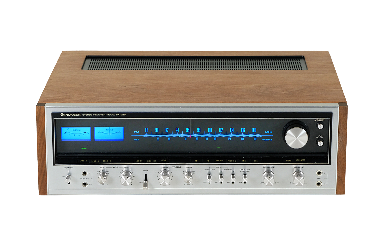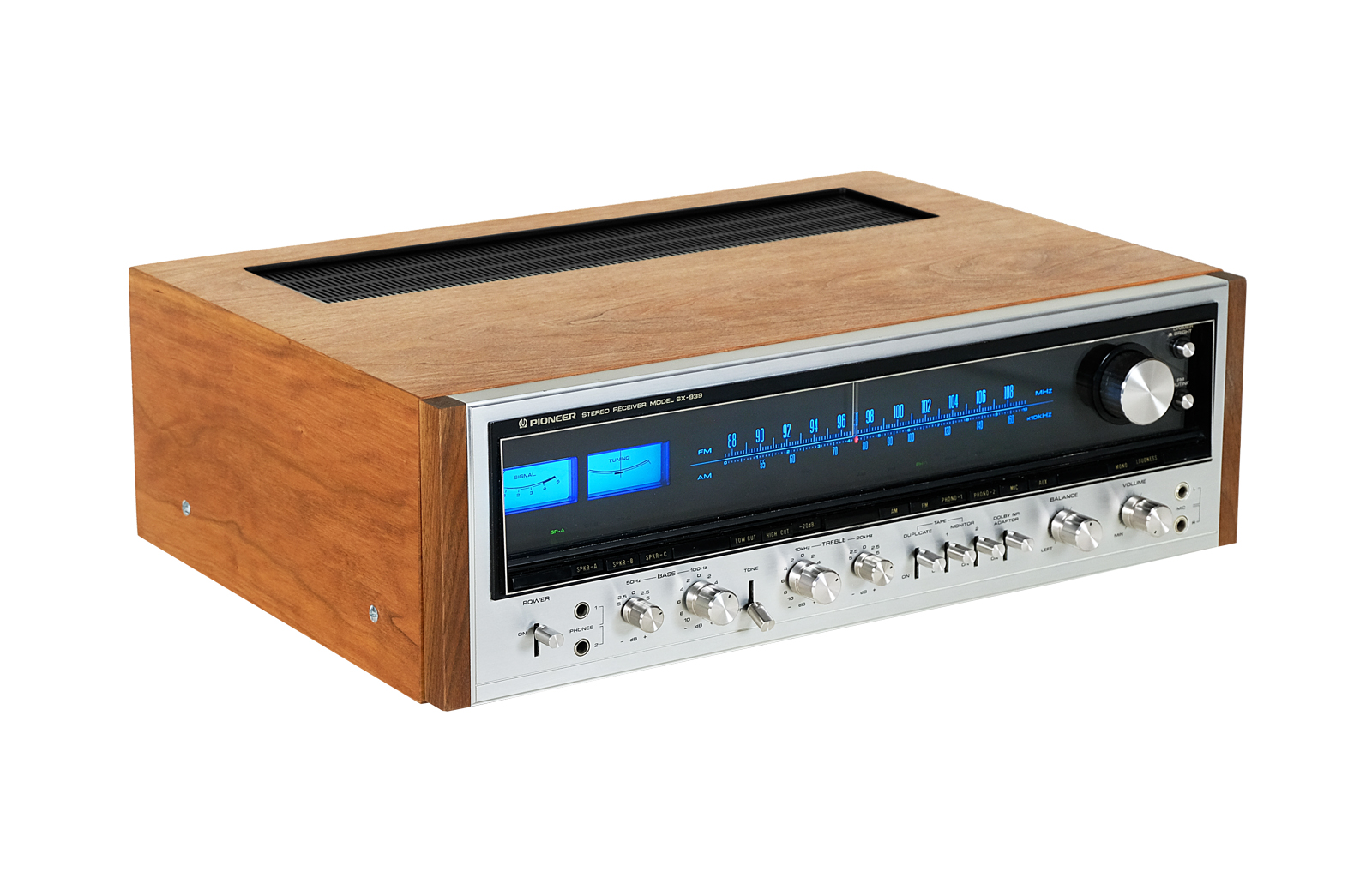 Pioneer SX-939 to bardzo wszechstronny odbiornik stereo FM / MW o dużej mocy. Urządzenie posiada równoległy wzmacniacz mocy OCL typu push – pull z całkowitymi zniekształceniami harmonicznymi poniżej 0,3%, całkowicie nowy obwód PLL MPX, czterokrotny zmienny kondensator liniowy częstotliwości oraz nowo opracowany układ scalony AM.