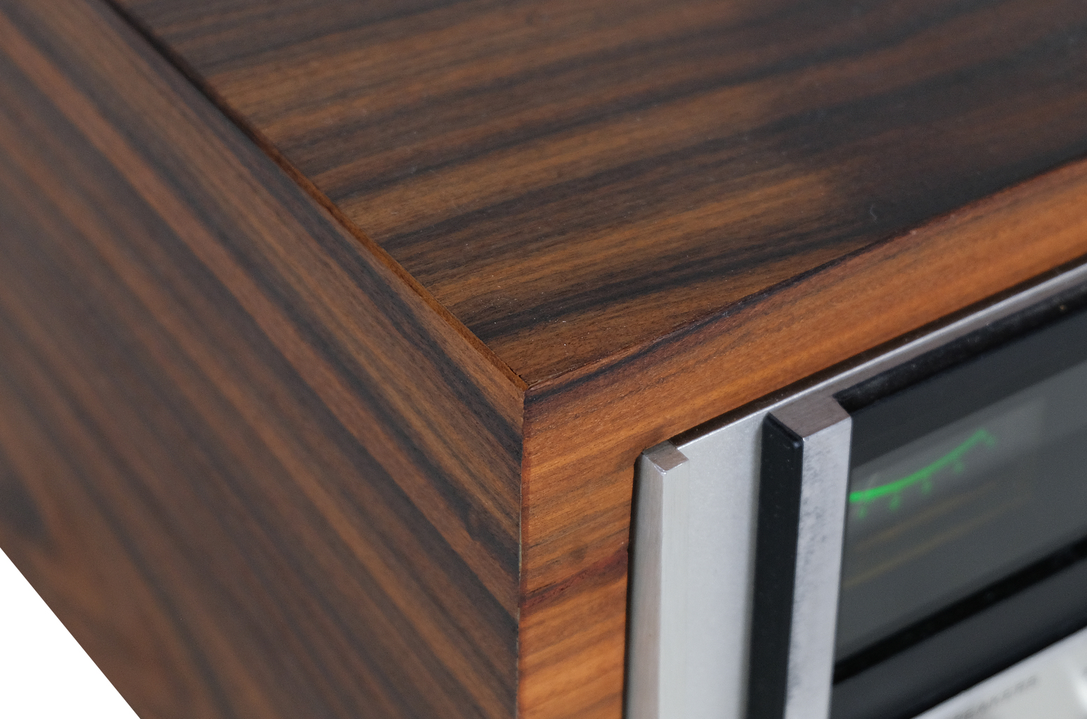 Nowa, drewniana obudowa została zrewitalizowana od podstaw w oparciu o oryginalne konstrukcje z lat 70tych. Zastosowane drewno to palisander. Wykończenie drewna to olej chiński produkowany na bazie naturalnych olei, oraz naturalny wosk pszczeli na bazie terpentyny. Potencjometry w idealnym stanie. Urządzenie po całkowitym przeglądzie i serwisie, zostało wyposażone w nowe nóżki wykonane z aluminium.