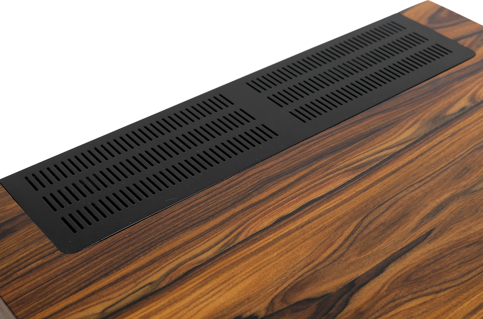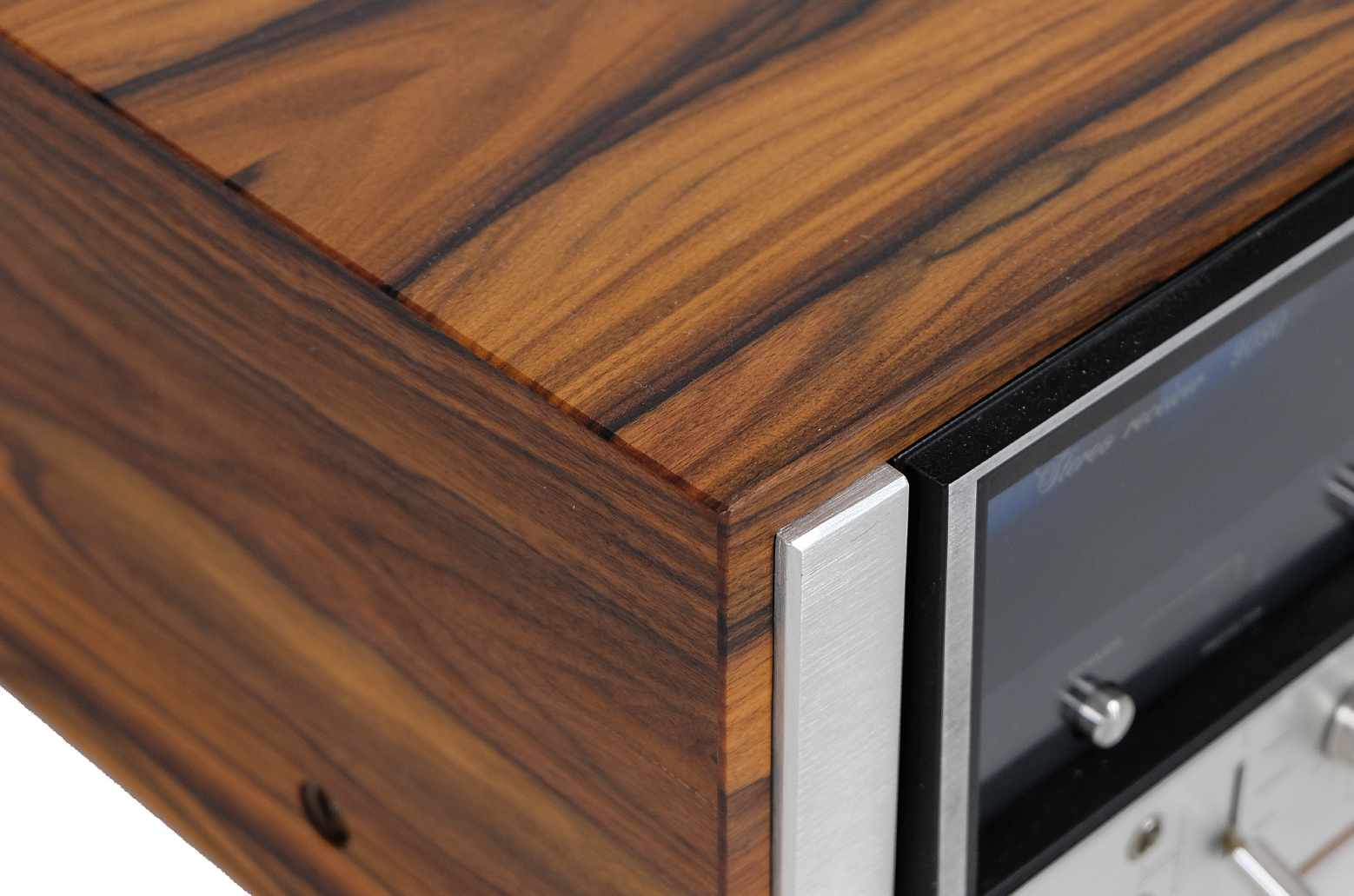 Prezentowany model został wyposażony w nową obudowę z drewna palisanderowego, która podkreśla jego piękny charakterystyczny dla lat 70tych dizajn. Wykończenie drewna to olej chiński produkowany na bazie naturalnych olej oraz wosk pszczeli na bazie terpentyny. Metalowe elementy obudowy zostały oczyszczone i pomalowane przy użyciu samochodowej techniki lakierniczej “na mokro”. Urządzenie po całkowitym przeglądzie i serwisie.