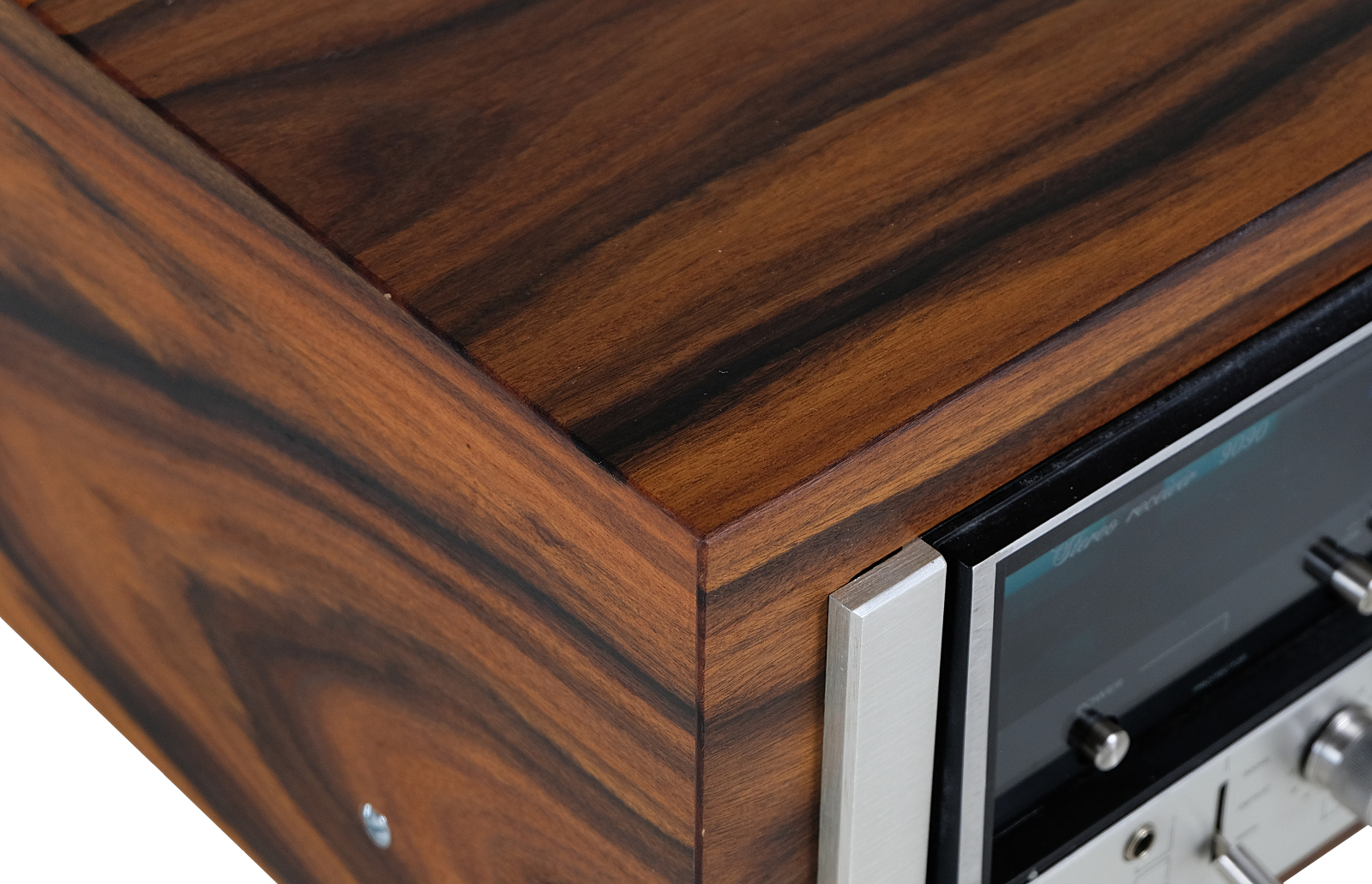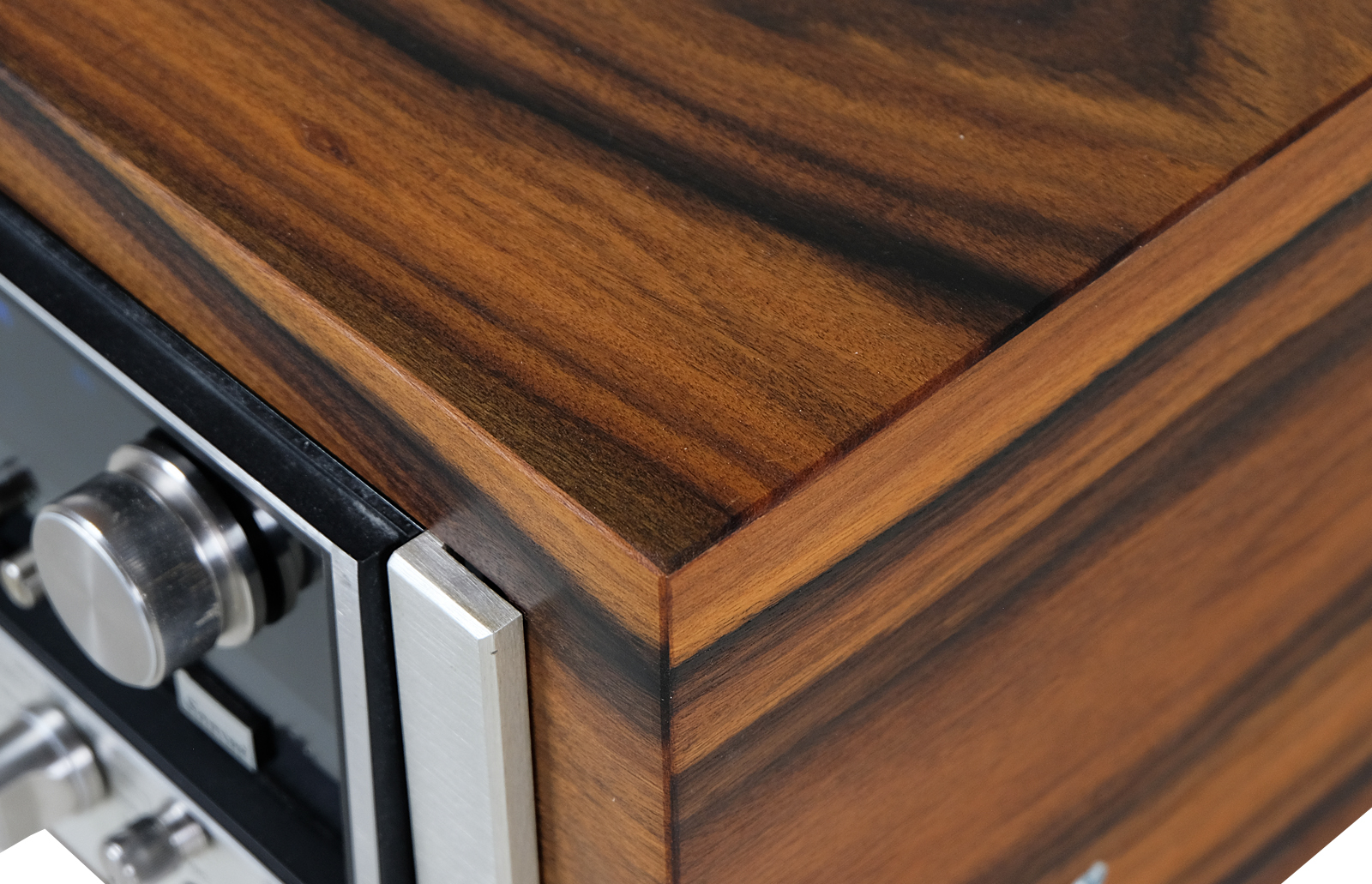 Prezentowany model został wyposażony w nową powiększoną obudowę z egzotycznego drewna palisander, która podkreśla jego piękny charakterystyczny dla lat 70tych dizajn. Wykończenie drewna to olej chiński produkowany na bazie naturalnych olej. Potencjometry w idealnym stanie. Metalowe elementy obudowy zostały oczyszczone i pomalowane przy użyciu samochodowej techniki lakierniczej “na mokro”. Urządzenie po całkowitym przeglądzie i serwisie.