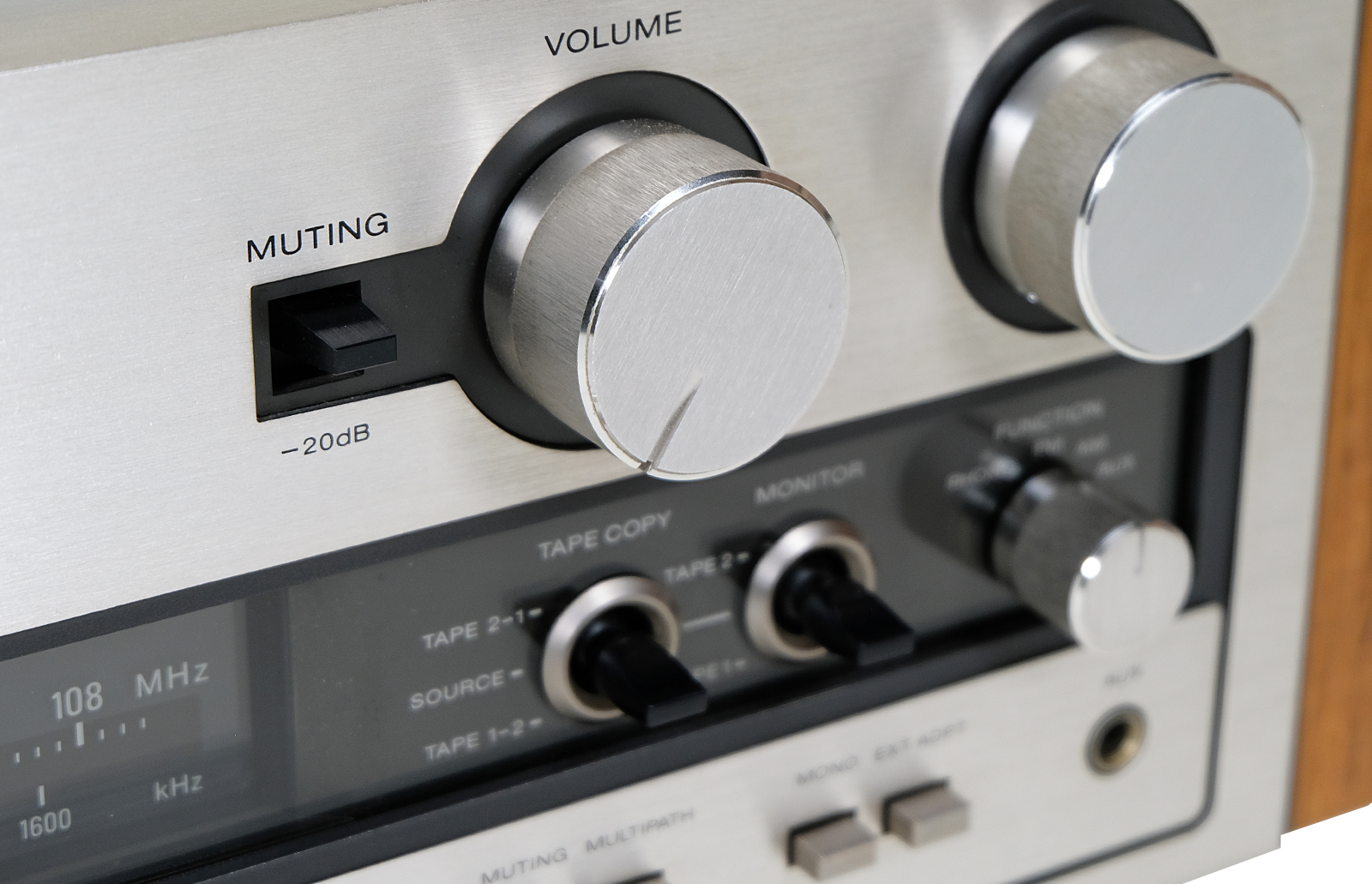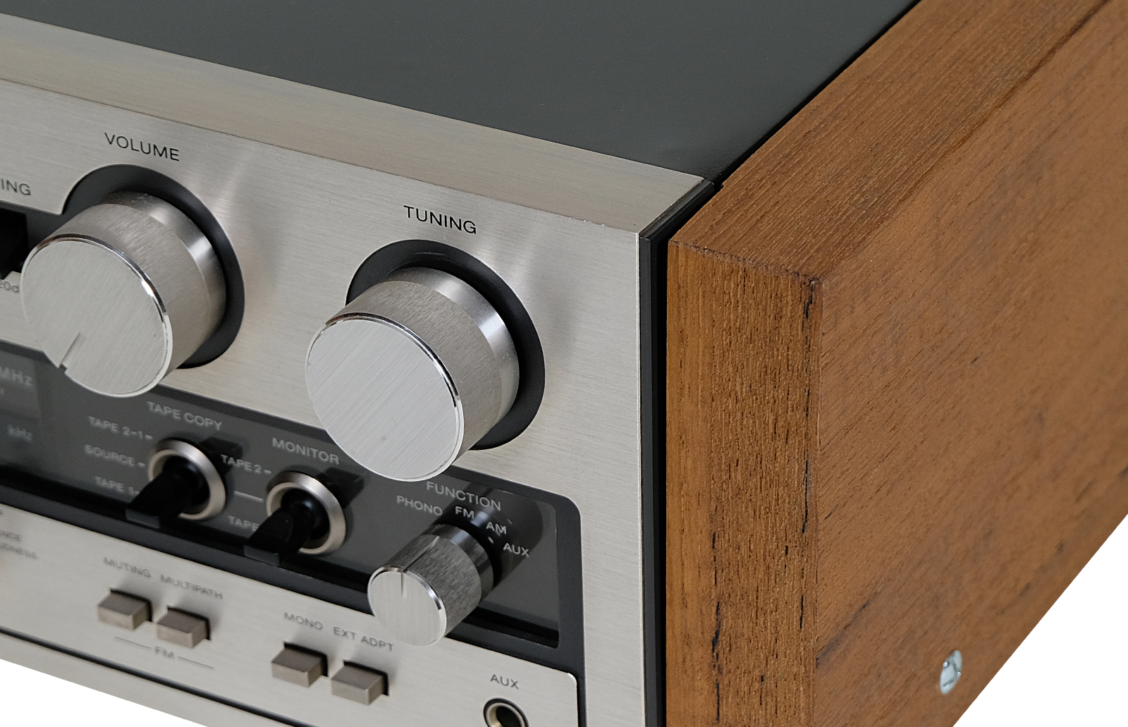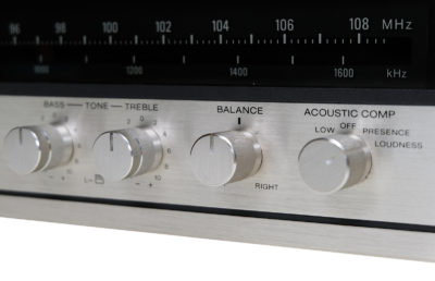 Obudowa została poddana całkowitej rewitalizacji, potencjometry w idealnym stanie, metalowe elementy obudowy zostały wypiaskowane i pomalowane przy użyciu samochodowej techniki lakierniczej “na mokro”. Nowe boczne deski z drewna teku sprawiają że zestaw ma elegancki i wytworny wygląd. Panel przedni wykonany jest ze szczotkowanego aluminium.