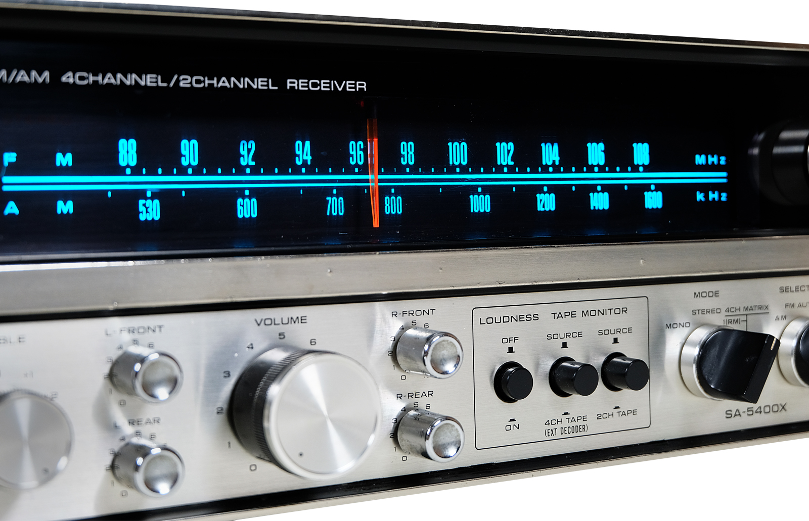 SA 5400X to kwadrofoniczny amplituner z pierwszej połowy lat 70tych o naturalnym, miękkim i ciepłym brzmieniu. Oprócz pięknego dizajnu charakterystycznego dla swojej epoki, model ten wyróżnia się konstrukcją wyposażoną w podwójną końcówkę mocy. Dzięki temu żadnemu z dwóch zestawów głośników, które można podpiąć, aby uzyskać efekt kwadrofonii, nie zabraknie mocy. Ciekawym rozwiązaniem są dwie regulacje głośności – na tył i na przód, czyli oddzielnie na każdą parę kolumn.