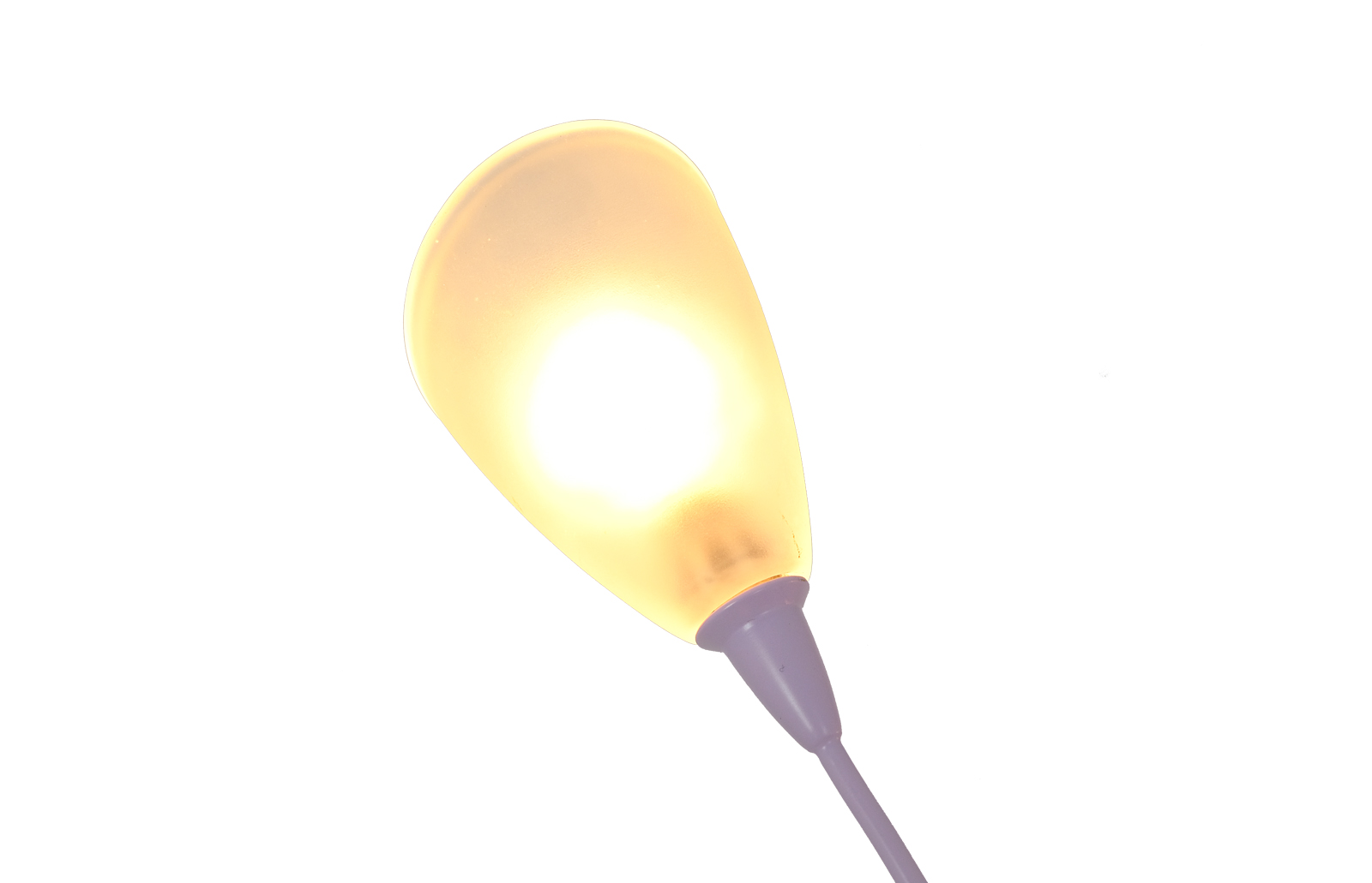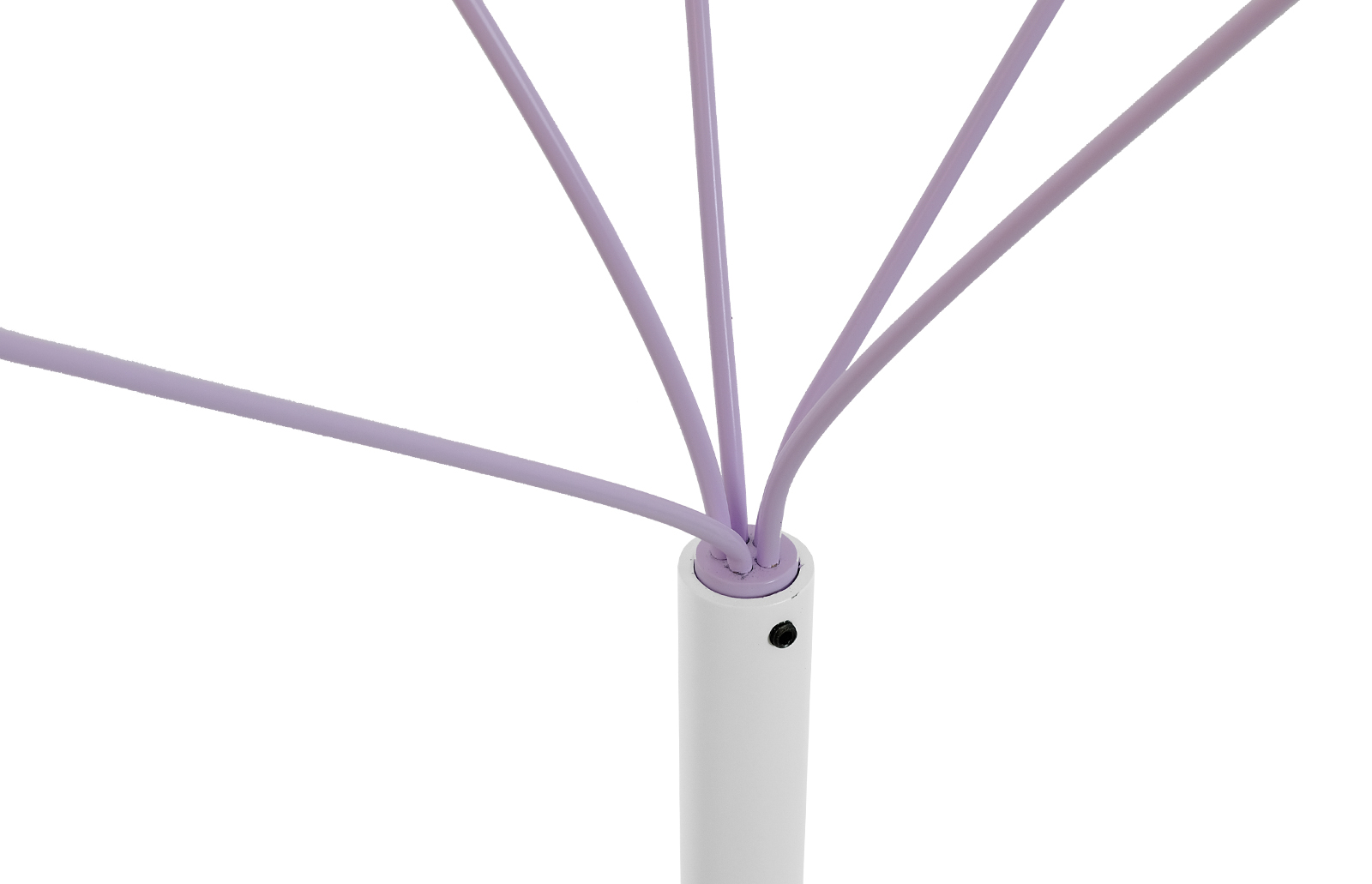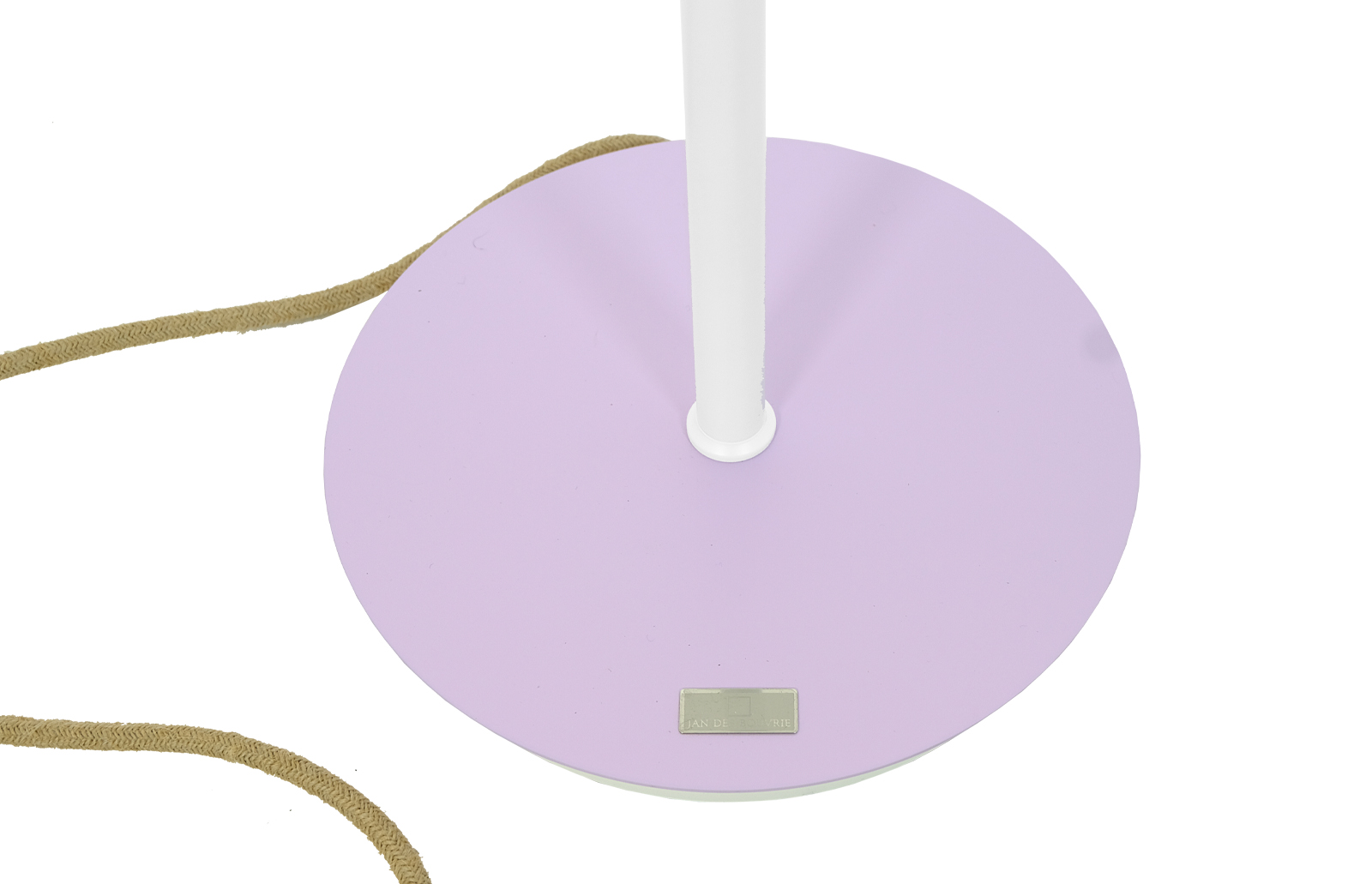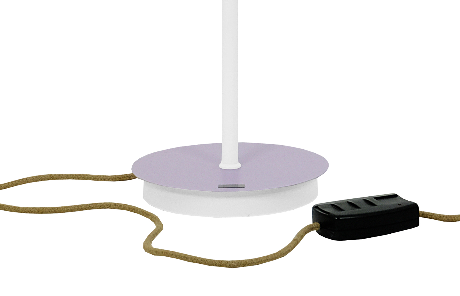 Lampa została oczyszczona ze starych powłok, a następnie pomalowana przy użyciu samochodowej techniki lakierniczej “na mokro”. Użyto lakierów w kolorze białym oraz lila i zabezpieczono je bezbarwnym lakierem matowym. Lampa zyskała również nowy kabel zasilający w oplocie jutowym i wtyczkę typu vintage.
