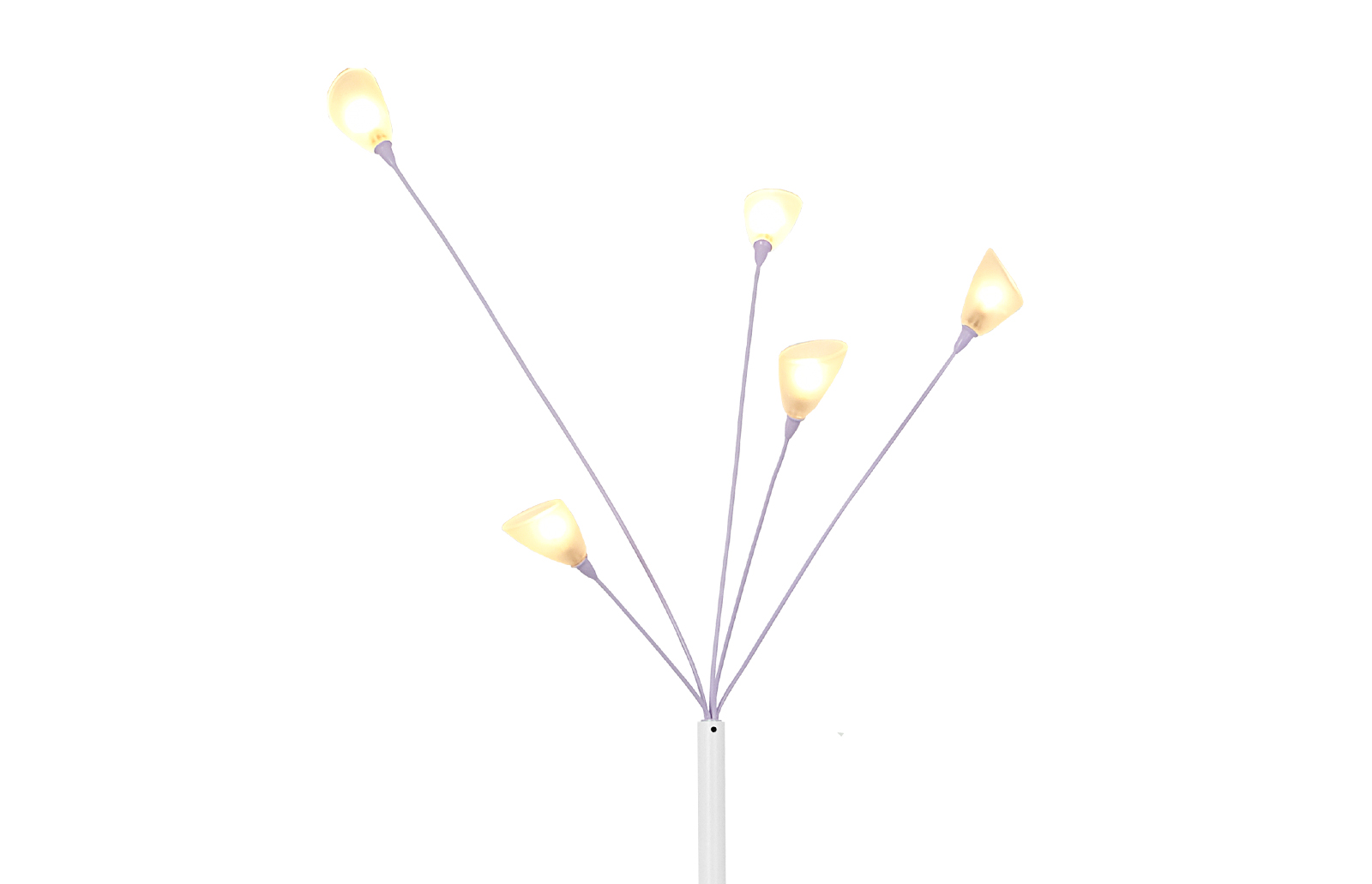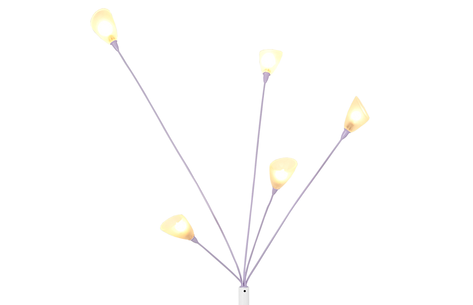 Piękna, dekoracyjna lampa z przełomu lat 80-90tych wykonana ze stali nierdzewnej. Pięć małych, szklanych, mlecznych kloszy w kształcie “kielichów” daje bardzo ciepłe, przytulne światło regulowane ściemniaczem.