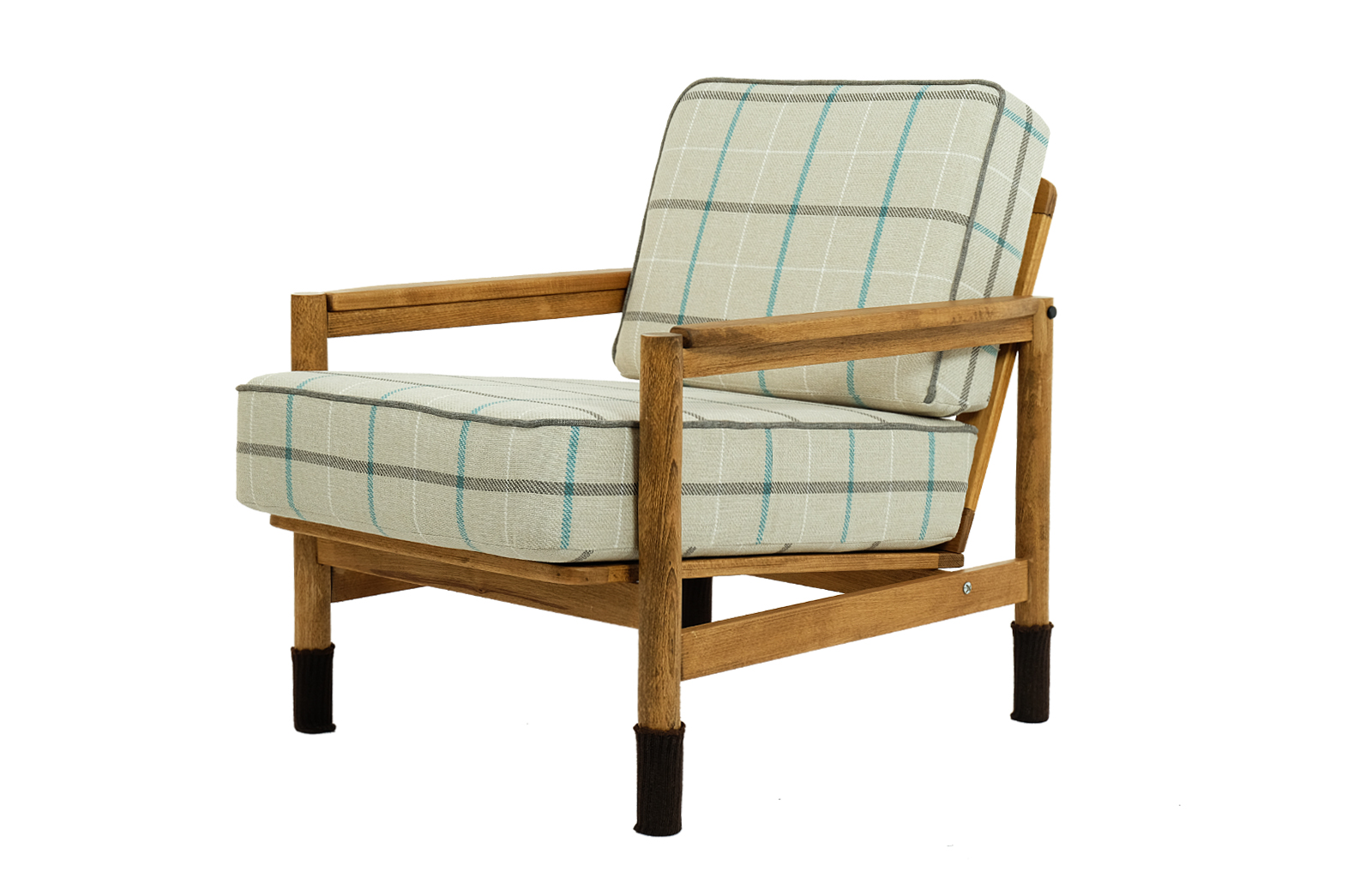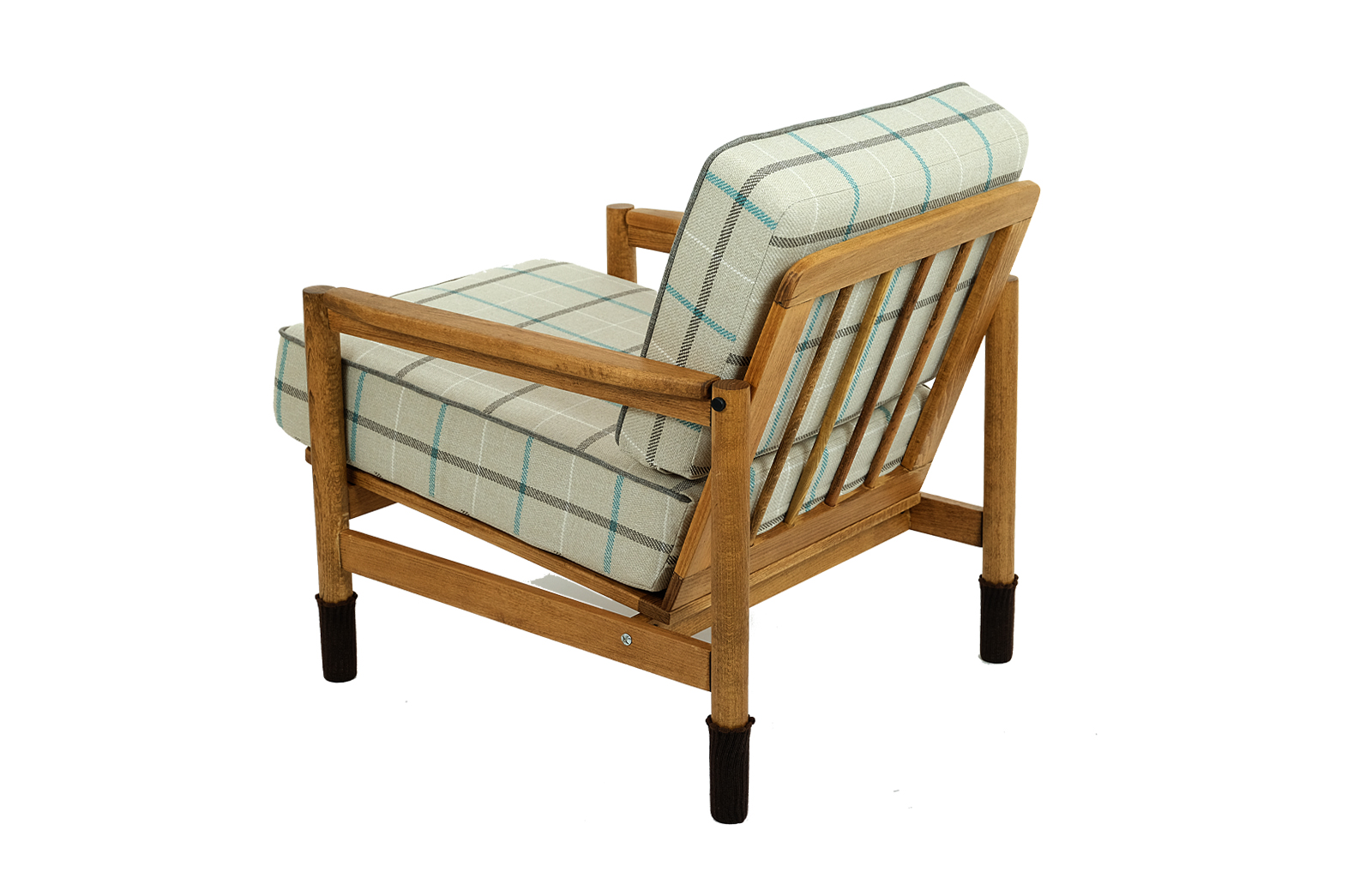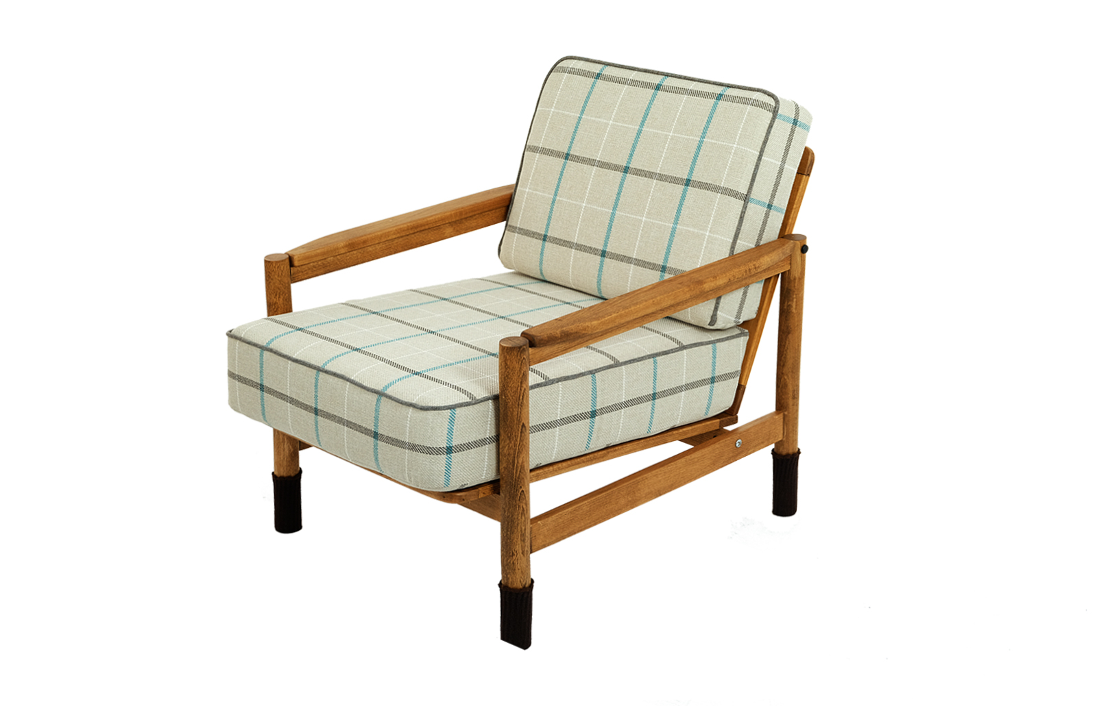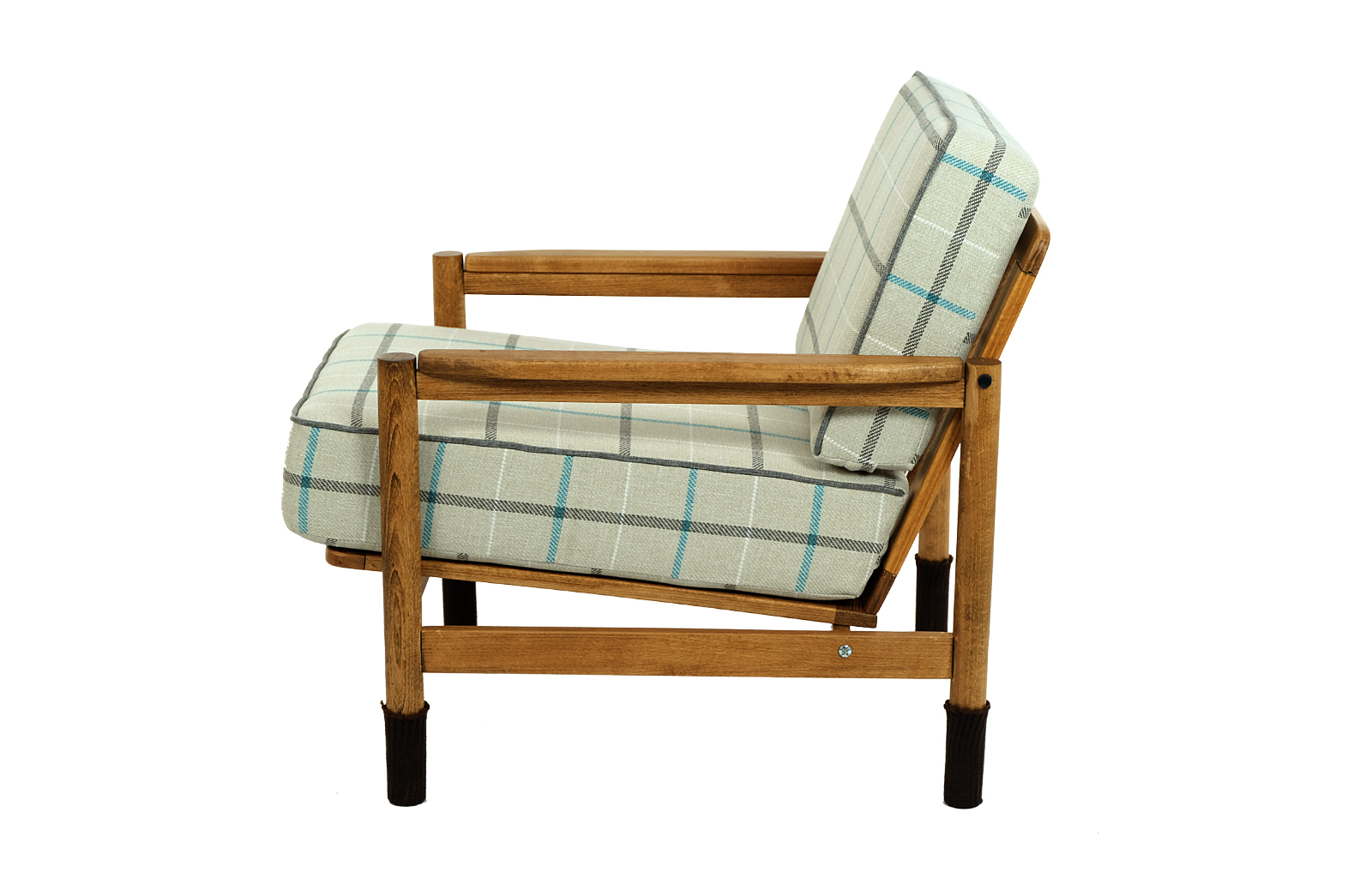 Fotel Typ B-7522 zaprojektowany został przez Zenona Bączyka w latach 60. Produkowany był w Swarzędzkich Fabrykach Mebli. Zrobiony z drewna bukowego. Fotel został całkowicie rozebrany, drewno oczyszczone ze starych powłok lakierniczych, ponownie sklejony, zabezpieczony olejem na bazie naturalnych olei chińskich, przyjaznym dla środowiska. Nowa tapicerka, wymieniona gąbka, pasy, fizelina. Ręcznie szyty. Dobrej jakości tkanina, odporność na ścieranie 20 000 suwów. Nowe metalowe śruby. Wygodny i komfortowy, piękny i praktyczny.