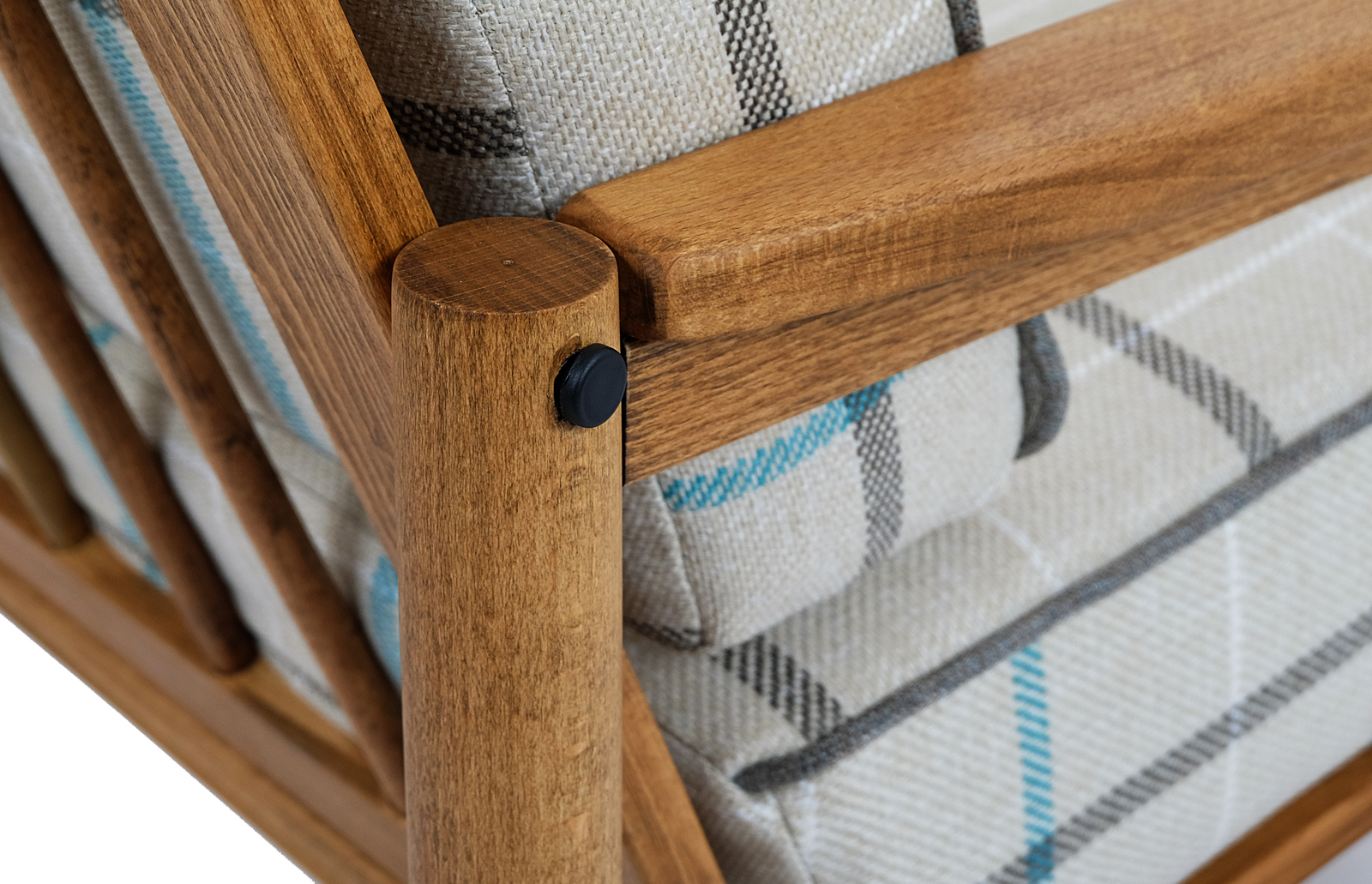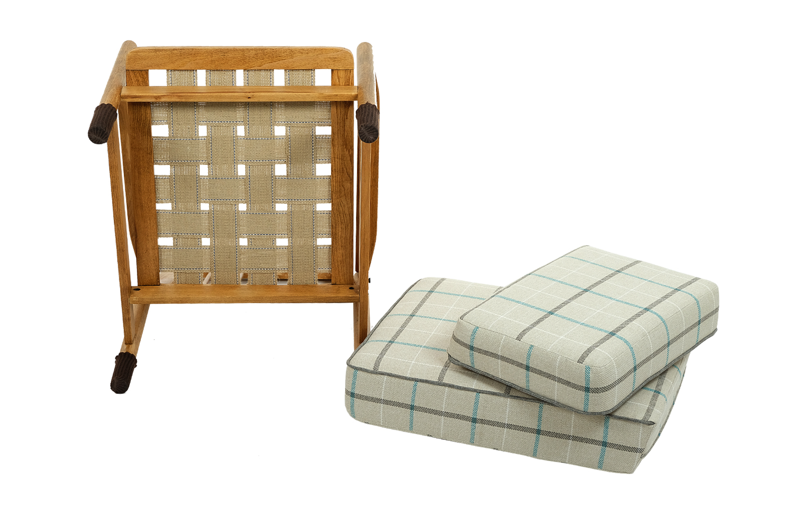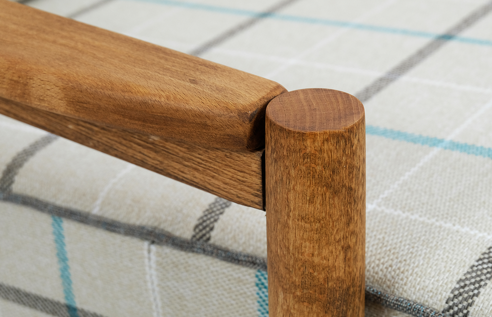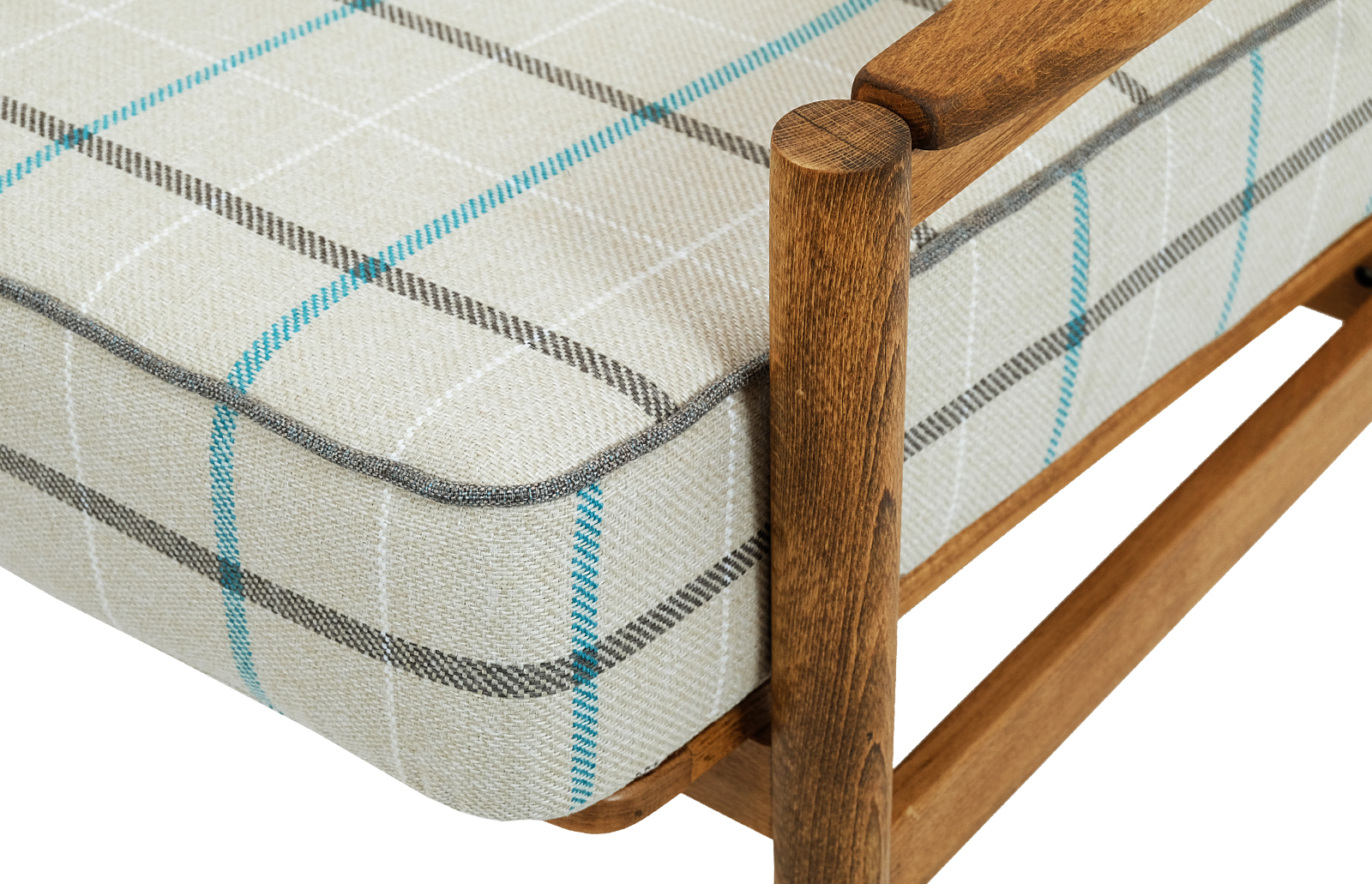 Fotel Typ B-7522 zaprojektowany został przez Zenona Bączyka w latach 60. Produkowany był w Swarzędzkich Fabrykach Mebli. Zrobiony z drewna bukowego. Fotel został całkowicie rozebrany, drewno oczyszczone ze starych powłok lakierniczych, ponownie sklejony, zabezpieczony olejem na bazie naturalnych olei chińskich, przyjaznym dla środowiska. Nowa tapicerka, wymieniona gąbka, pasy, fizelina. Ręcznie szyty. Dobrej jakości tkanina, odporność na ścieranie 20 000 suwów. Nowe metalowe śruby. Wygodny i komfortowy, piękny i praktyczny.