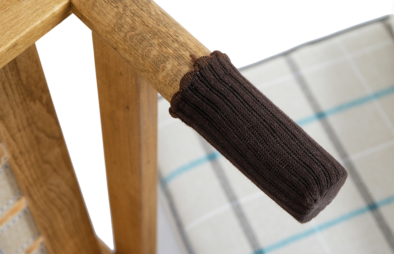 Nóżki foteli “ubrane” w ciepłe, świąteczne skarpetki.