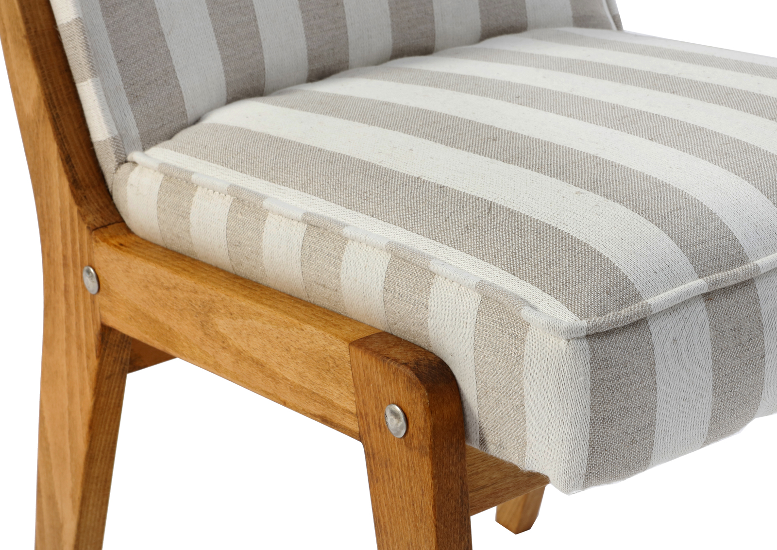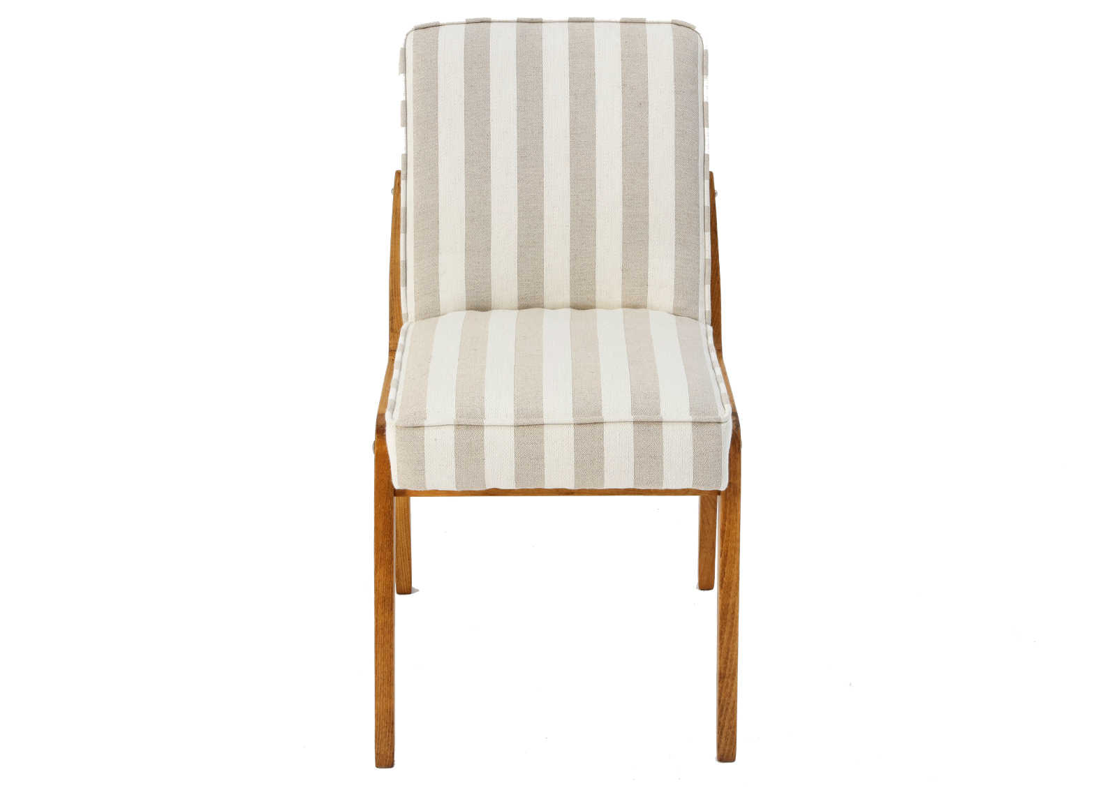 Fotelik został całkowicie rozebrany, drewno oczyszczone ze starych powłok, ponownie sklejony, zabezpieczony olejem na bazie naturalnych olei chińskich, przyjaznym dla środowiska. Drewno bukowe. Nowa tapicerka, wymieniona gąbka, pasy, fizelina. Ręcznie szyty. Nowe metalowe śruby. Szkielet wewnątrz oczyszczony dokładnie papierem, zabezpieczony. Bardzo miękka i przyjemna w dotyku tkanina melanżowa, odporność na ścieranie 20 000 suwów.  Kultowy model fotela PRL.