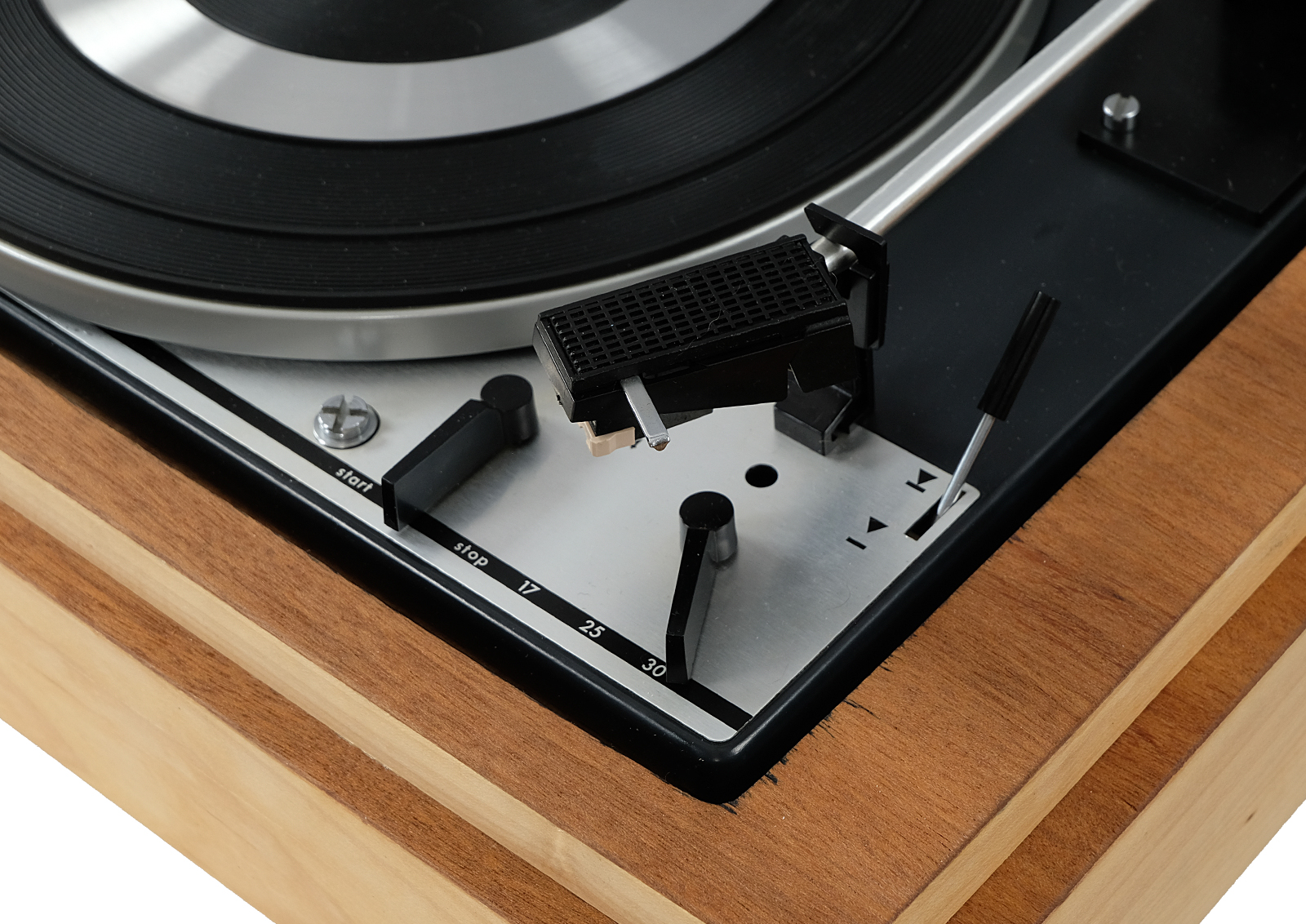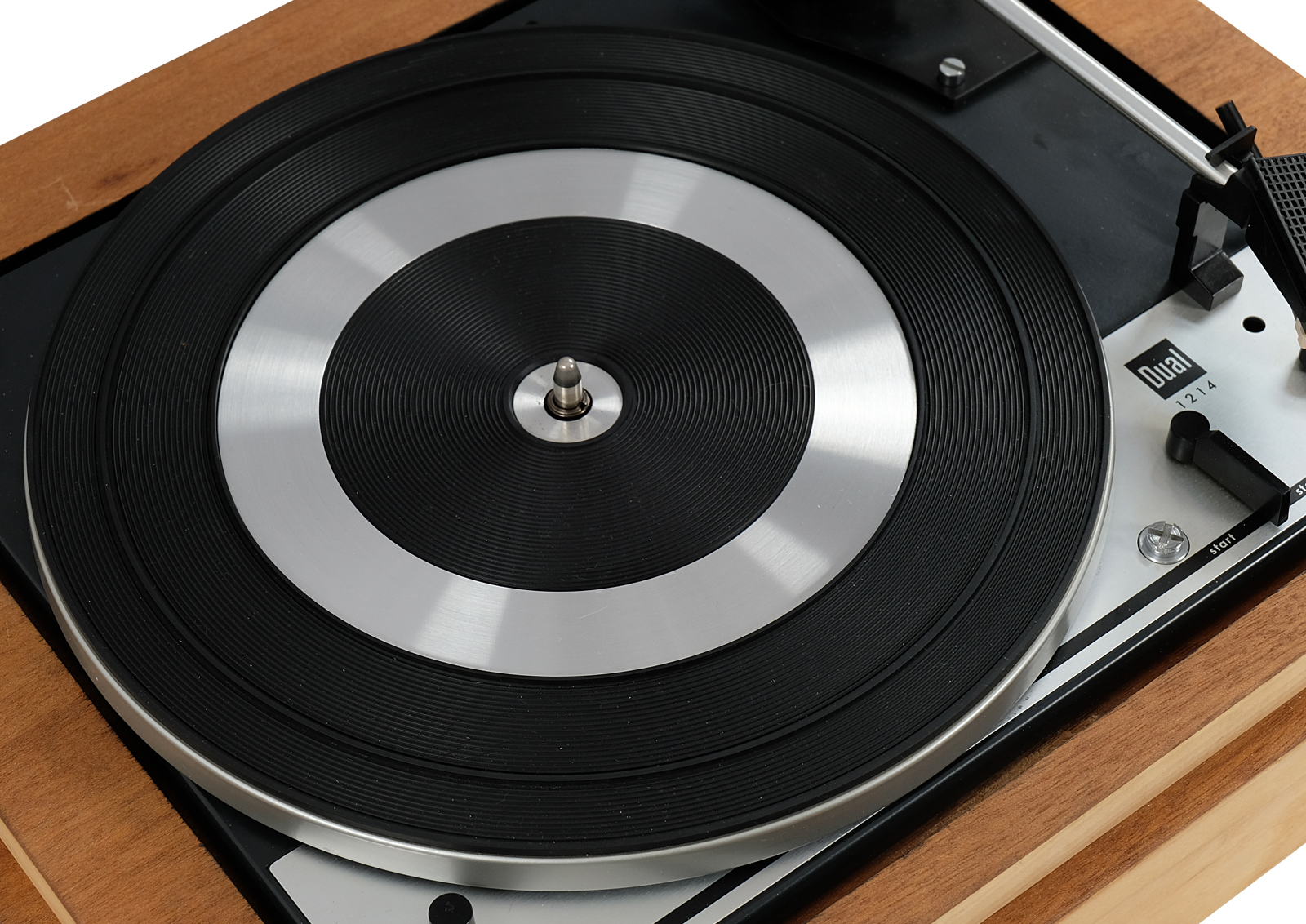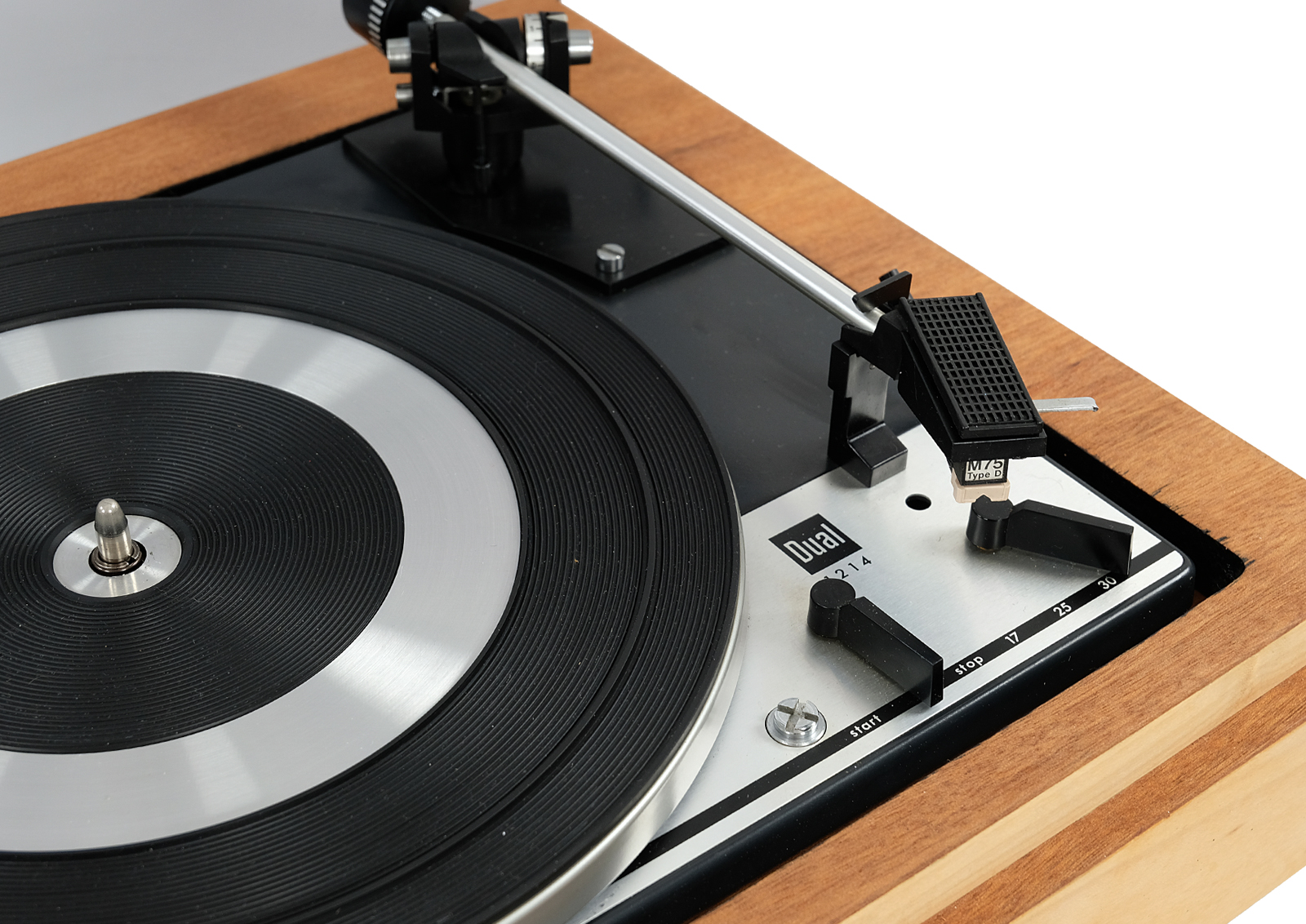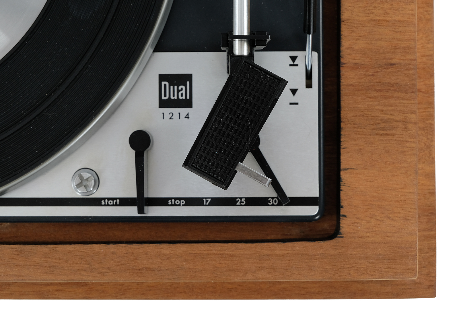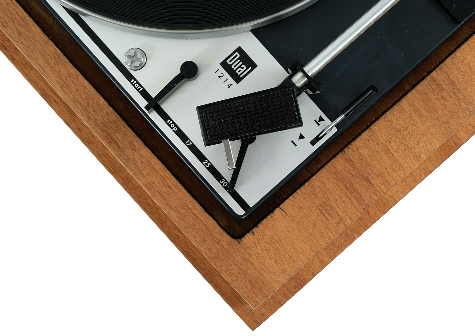 Gramofony z serii Dual 12XX były wytwarzane na początku lat 70tych i “wkładane” przez producenta w różnego rodzaju obudowy, również w kooperacji z innymi znanymi niemieckimi markami (m.in Saba, Nordmende, Wega), które nie chciały produkować własnych mechanizmów. Prezentowany model 1214 był wytwarzany dla firmy Grundig, dlatego też charakteryzuje się szerszą, profilowaną obudową. Wyposażony jest w wyważone ramię, które łączy w sobie małą masę i wysoką sztywność. Oznaczone za pomocą numeracji pokrętło umożliwia precyzyjne i łatwe regulowanie siły nacisku w zależności od wybranego modelu wkładki.