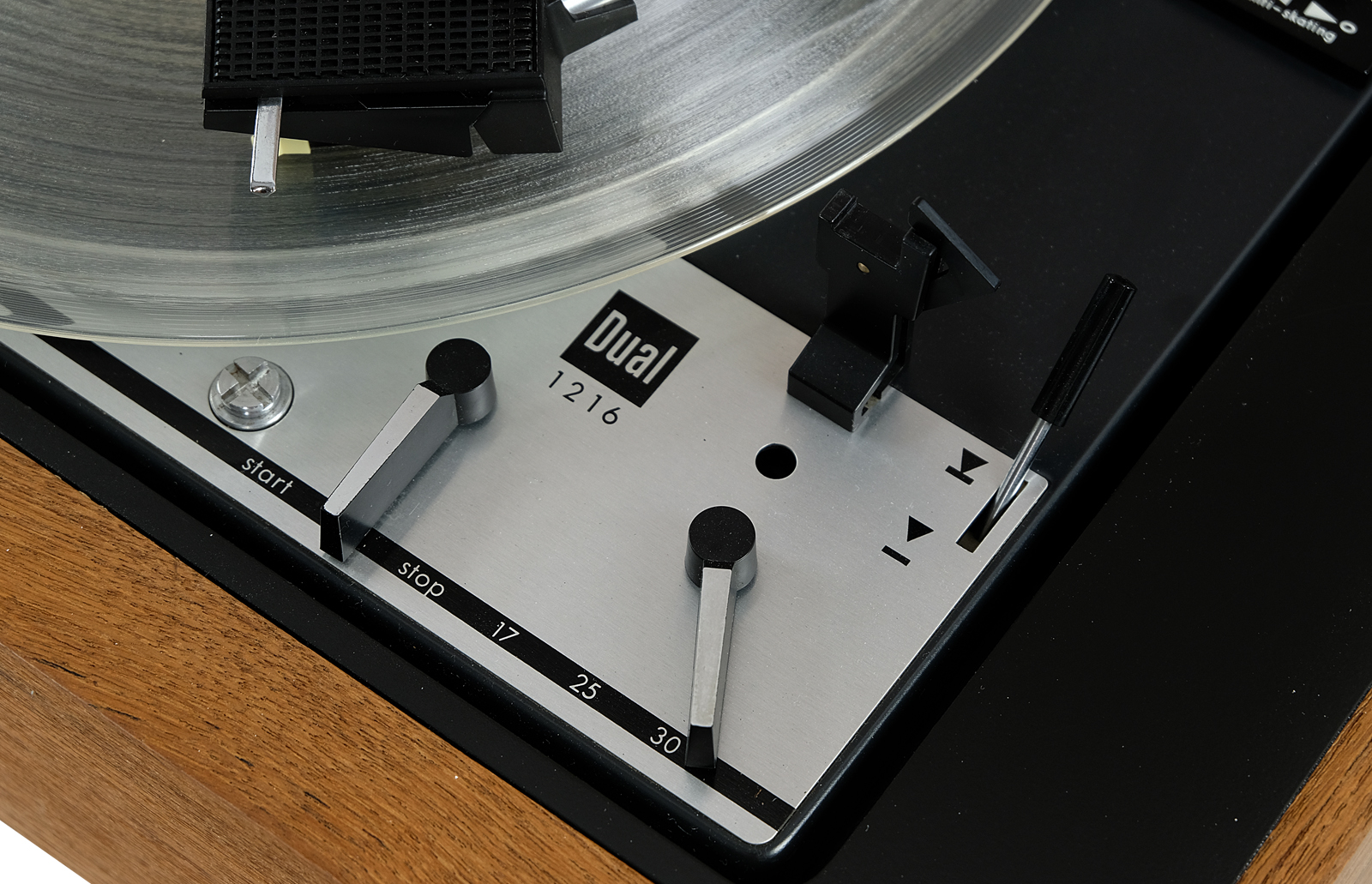 Prezentowany Dual 1216 to gramofon o napędzie bezpośrednim wyposażony w 4-biegunowy silnik asynchroniczny. Dobrze wyważone ramię łączy w sobie małą masę i wysoką sztywność, a oznaczone za pomocą numeracji pokrętło umożliwia precyzyjne i łatwe regulowanie siły nacisku w zależności od wybranego modelu wkładki. Obecnie gramofon wyposażony jest w dobrej jakości wkładkę magnetyczną Shure M75 Type D z nową igłą Shure, która zapewnia ciepłe, miękkie i selektywne brzmienie.