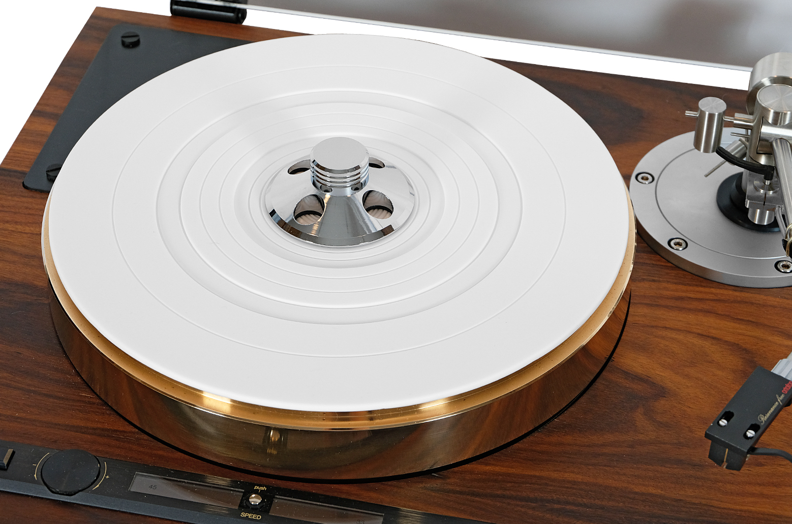 Prezentowany model wyposażony jest w dedykowane ramię Fidelity-Research FR-64S, które wprowadzono na rynek w 1976 roku. Jakość wykonania, precyzja montażu, powtarzalność wyników testów spowodowały, że uchodzi za jedno z najbardziej cenionych ramion gramofonowych w historii. Konstrukcja w kształcie litery S z zawieszeniem przegubowym i koncentryczną, nie podwieszaną przeciwwagą oraz dynamiczny mechanizm wyważania służący do ustawiania VTF zapewniają wierne odtwarzanie dźwięku. Aby ograniczyć drgania do produkcji użyto drobno szczotkowanej stali nierdzewnej, 3 razy mocniejszej niż stop aluminium.