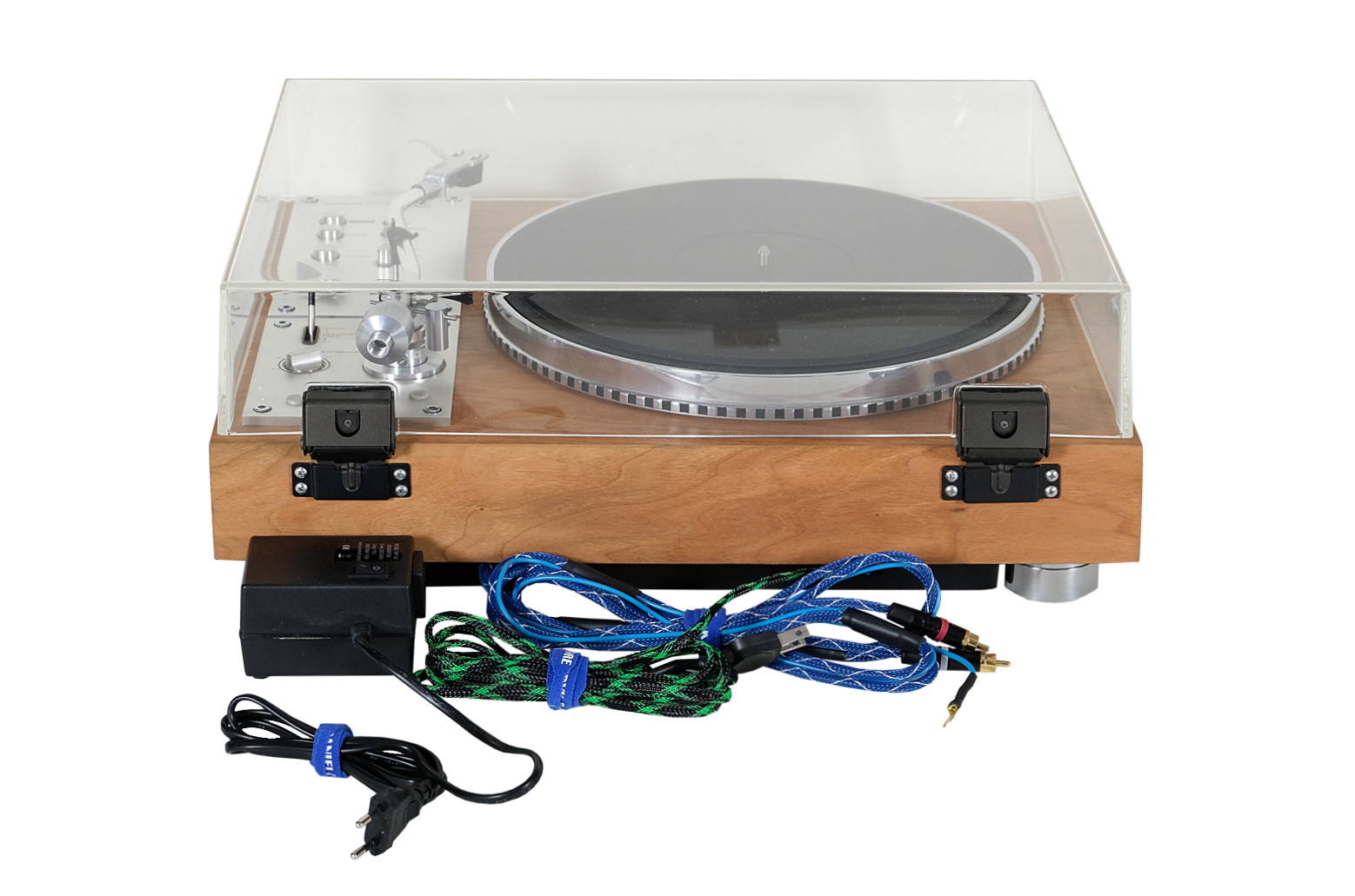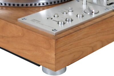Obudowa prezentowanego modelu została poddana całkowitej rewitalizacji – zastosowano drewno czereśni amerykańskiej wykończone olejem chińskim na bazie olei naturalnych, oraz naturalny wosk pszczeli na bazie terpentyny. Wszystkie metalowe elementy oraz spód gramofonu zostały oczyszczone i pomalowane przy użyciu samochodowej techniki lakierniczej “na mokro”. Użyto lakieru w kolorze czarnym i zabezpieczono go bezbarwnym lakierem satynowym.