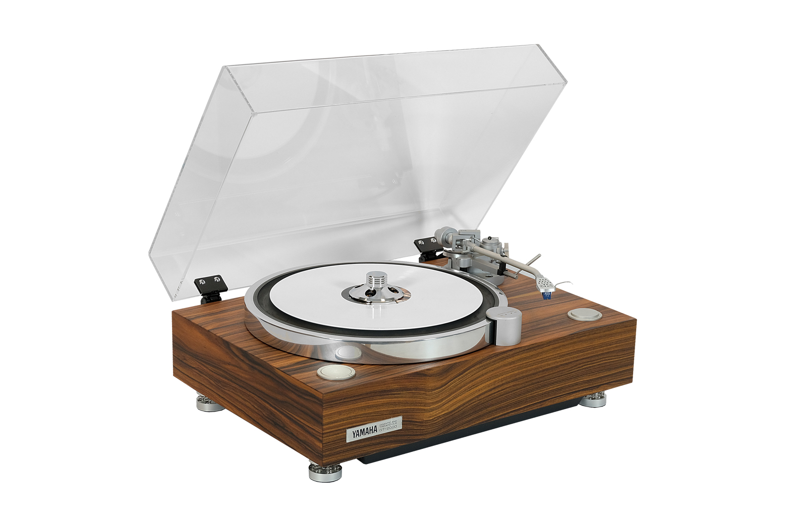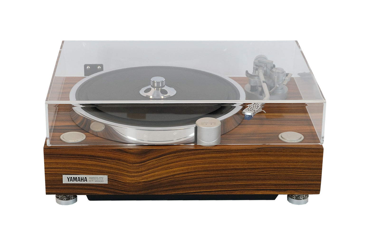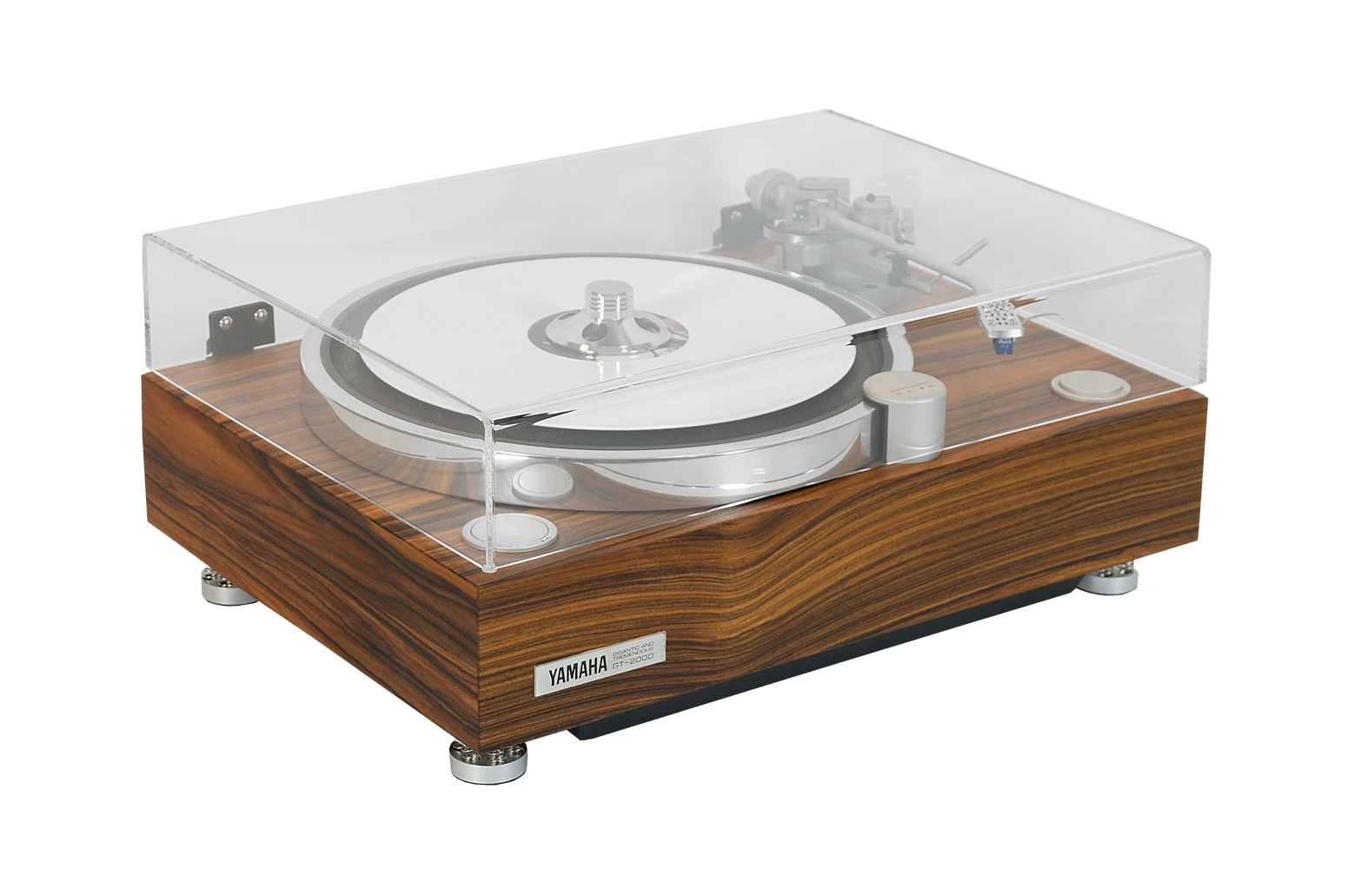 Yamaha GT-2000 to gramofon serii GT stworzony w ramach koncepcji projektowej Gigantic & Tremendous. Produkowany w latach 1982-1989, a następnie wznowiony w 1991 roku jako produkt limitowany. Talerz wyprodukowano metodą kucia na gorąco, która polega na podgrzewaniu aluminium (rafinowanego do prawie 100% czystości) do temperatury 500-700 stopni Celsjusza, ściskaniu go specjalną prasą wysokociśnieniową, a następnie precyzyjnemu wykańczaniu przez cięcie i obróbkę. Dzięki temu unikatowemu rozwiązaniu talerz jest mniej podatny na zarysowania, a przede wszystkim utrzymuje dokładną równowagę dynamiczną. Ponadto ma dużą średnicę 374 mm, aby zwiększyć moment bezwładności. Zastosowano także bezrdzeniowy silnik otworowy DC o początkowym momencie obrotowym 2 kg-cm, napędza talerz bezpośrednio eliminując zacięcia. Gramofon został wyposażony w długie i lekkie ramię w kształcie litery S z mechanizmem regulacji wysokości od + 10 mm do – 6 mm. Head shell jest wykonany z czystego bloku aluminiowego i zaprojektowany tak, aby zapobiec szkodliwym wibracjom. Przewód RCA wykorzystuje niskoimpedancyjne kable NEGLEX 2496 o podwójnym cylindrze (26- i 23-żyłowe) i jest podłączony do ramienia gramofonu w najkrótszej możliwej odległości, bez kabli przebiegających przez obudowę, aby zminimalizować utratę informacji oraz zakłóceń z wewnętrznych przewodów. Yamaha GT-2000 to wyjątkowy gramofon, który łączy w sobie japońską jakość wykonania z możliwością indywidualnej konfiguracji, co czyni go doskonałym wyborem dla wymagających miłośników analogowego brzmienia.