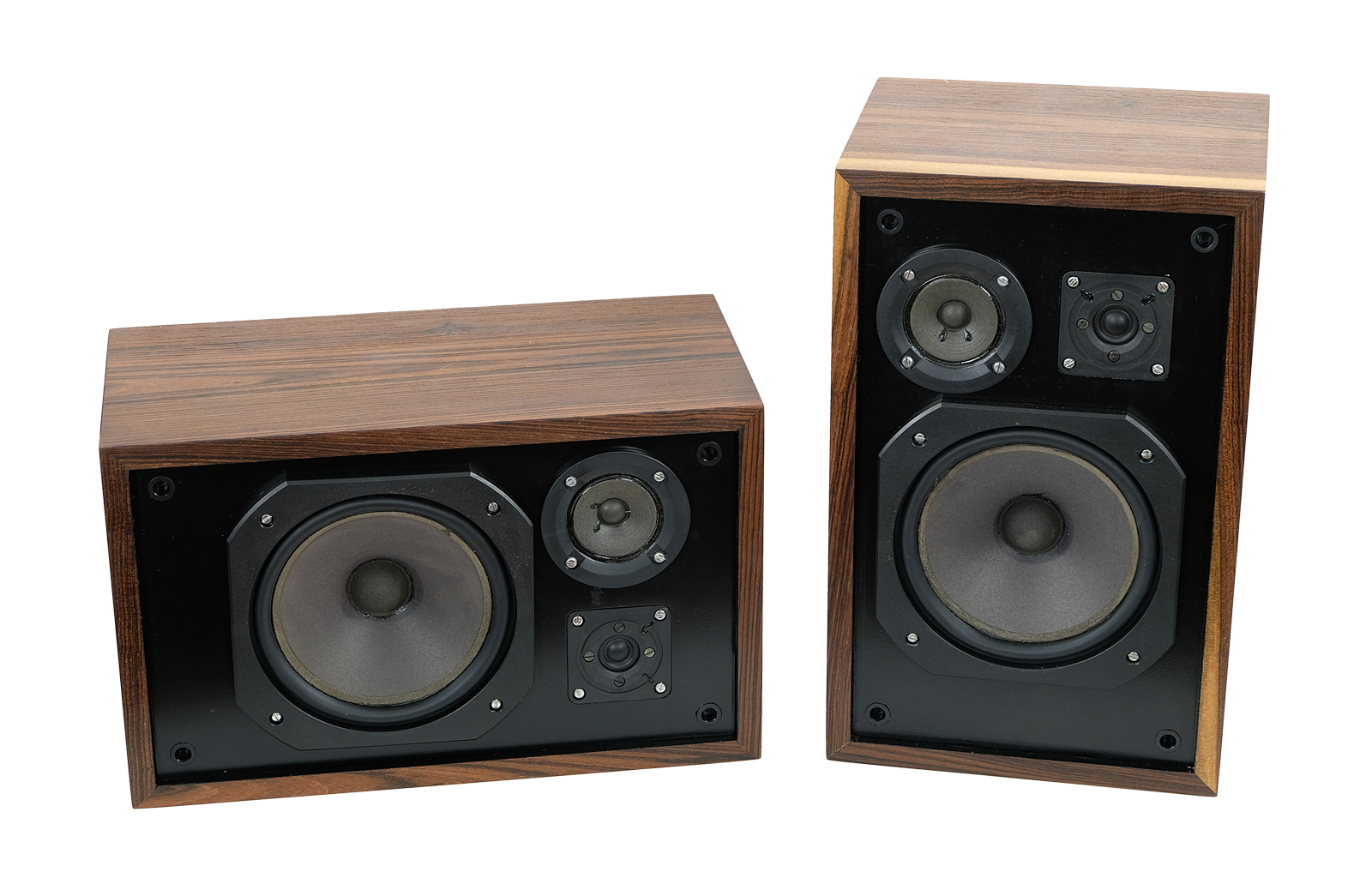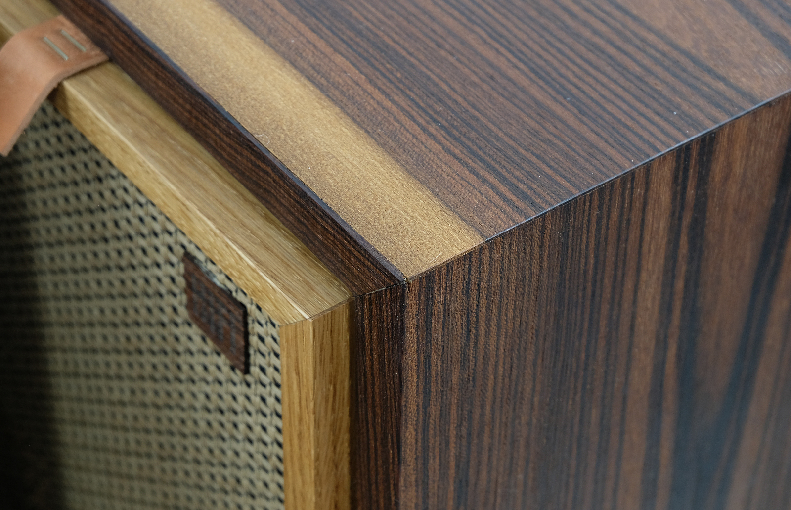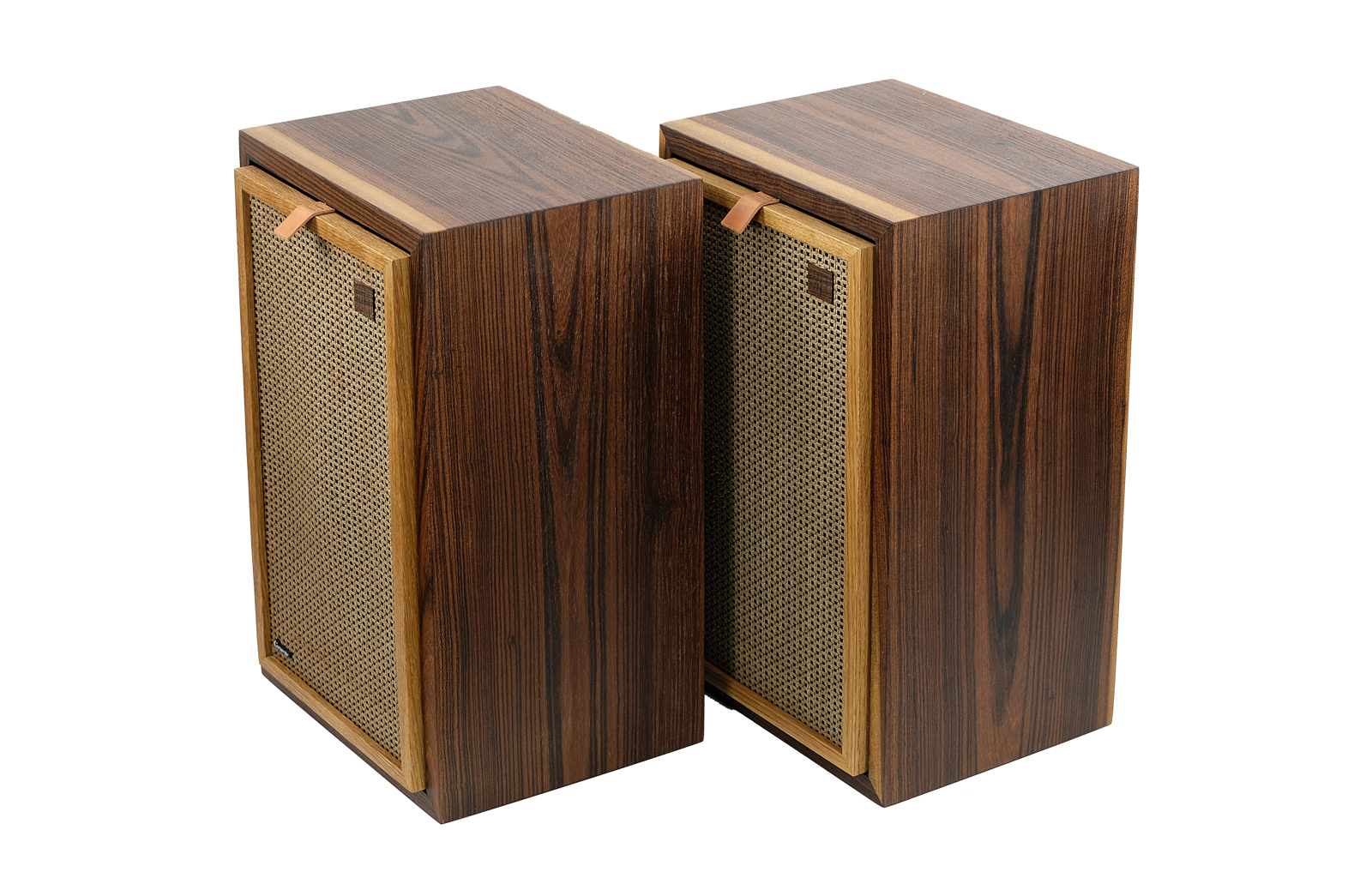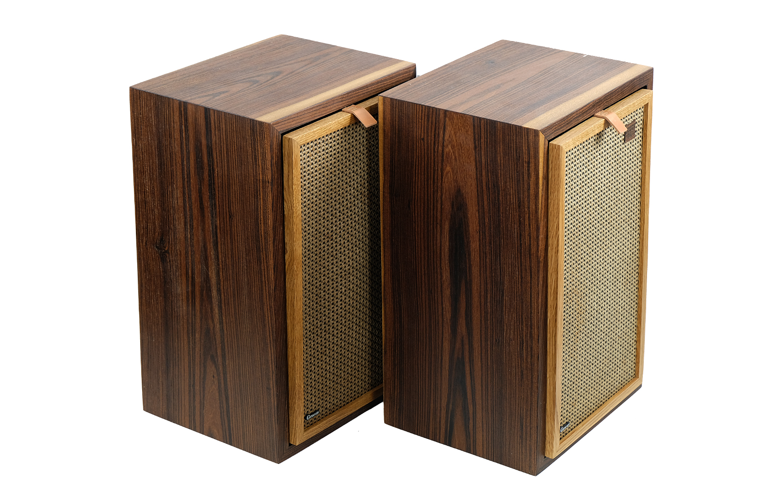 Obudowy zostały poddane całkowitej rewitalizacji. Egzotyczne drewno louro preto, dodaje niesamowitego uroku kolumnom . Wykończenie drewna to olej chiński produkowany na bazie naturalnych olei. Drewno bardzo miłe w dotyku. Maskownice zrobione z ręcznie przeplatanego ratanu, zabezpieczone olejem.