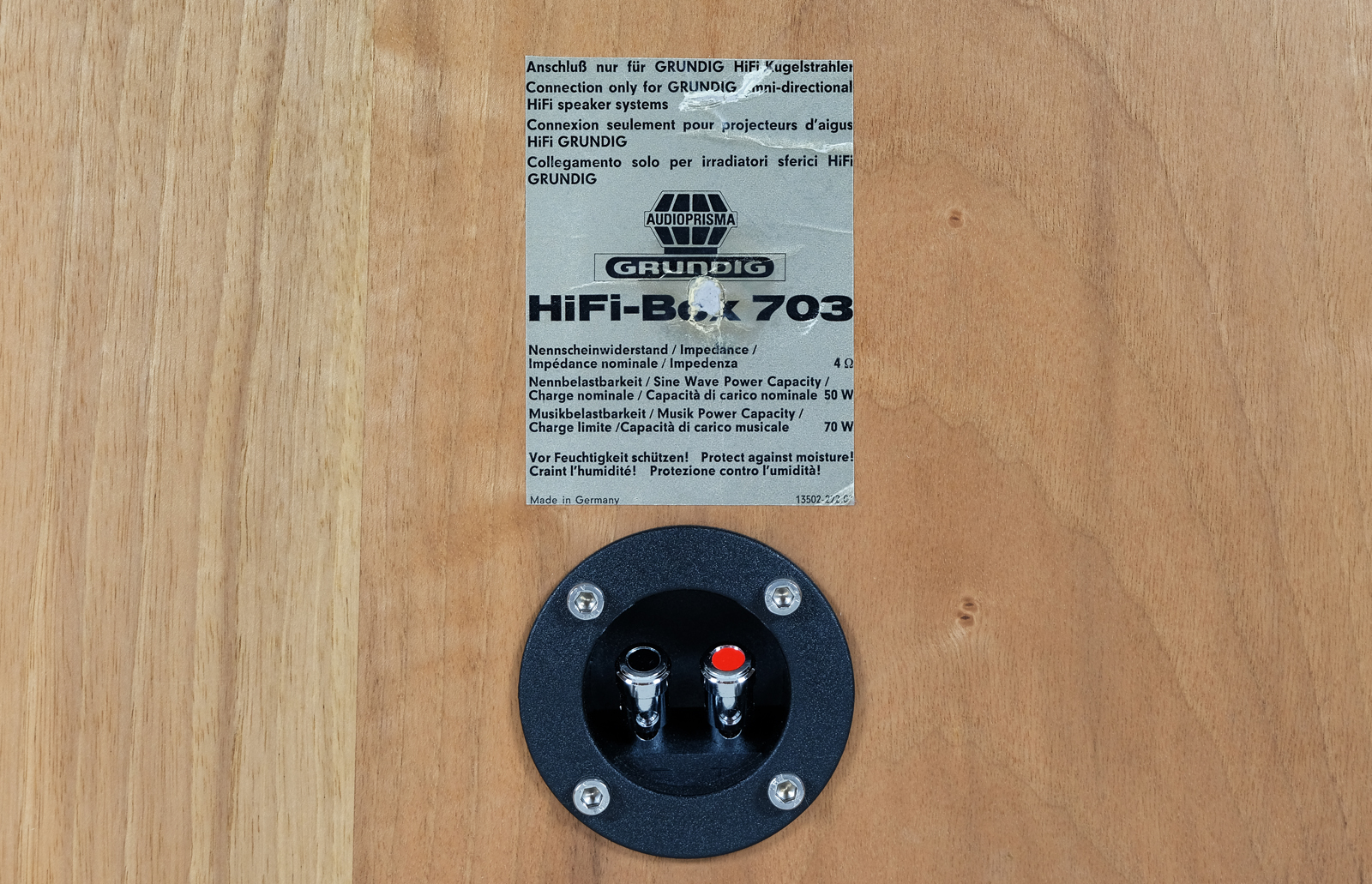 Lata 70te są jednogłośnie uznawane za złoty okres dla produktów z rodziny Grundig. Projekty powstałe w tym okresie charakteryzują się wyjątkowo wysokim poziomem jakości, tak jak kolumny HiFi Box 703. Pochodzą one z wyjątkowej serii Audioprisma wyposażonej w charakterystyczną soczewkę akustyczną w górnej przedniej części, umieszczoną przed głośnikiem wysokotonowym. Model ten to również kultowe “flachbox” (z niem. płaskie kolumny) wyróżniające się pięknym ponadczasowym dizajnem oraz umożliwiające łatwiejsze mocowanie na ścianie i regulowanie nachylenia. Jednocześnie są to głośniki o dużych wymiarach, które mimo ograniczonej głębokości mają świetne parametry akustyczne.