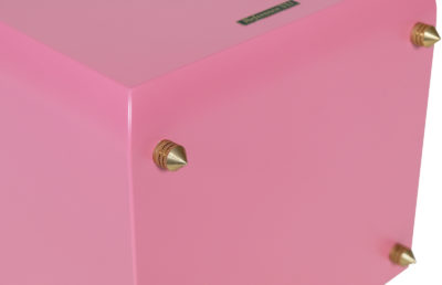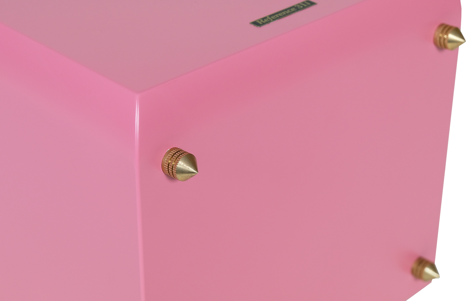Kolumny zostały oczyszczone ze starych powłok a następnie pomalowane przy użyciu samochodowej techniki lakierniczej “na mokro”. Użyto lakieru w kolorze różowym i zabezpieczono go bezbarwnym lakierem satynowym. Kolumny wyposażone w kolce stabilizujące drgania.