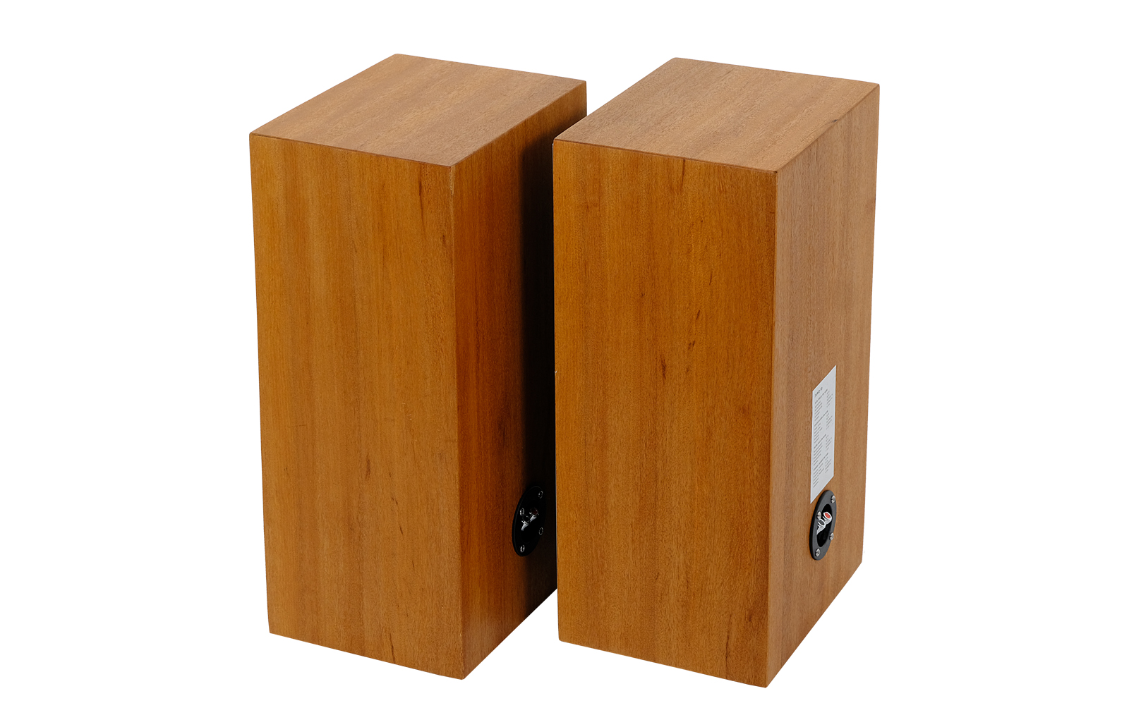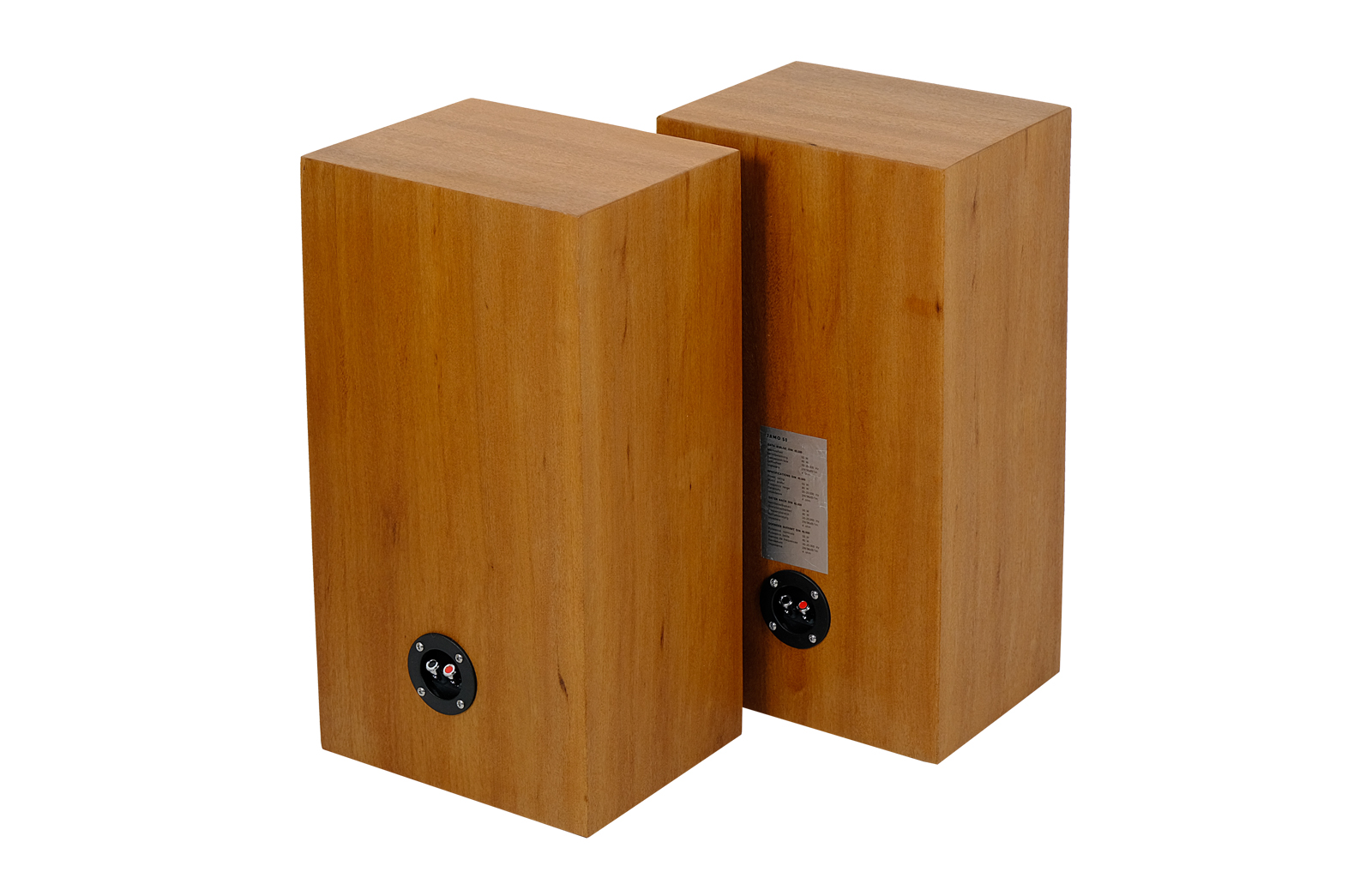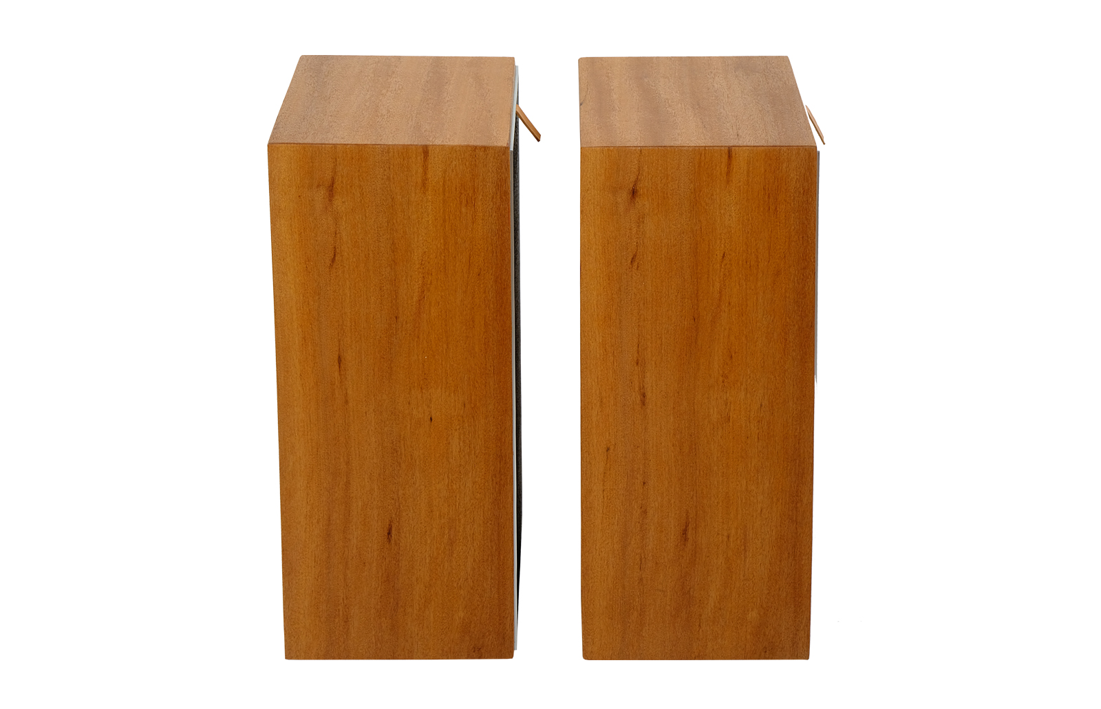 Obudowy zostały poddane całkowitej rewitalizacji. Egzotyczne drewno merbau, dodaje niesamowitego uroku kolumnom. Wysokiej jakości śruby wykończeniowe. Maskownice zrobione z wysokiej jakości tkaniny akustycznej. Wykończenie drewna to olei chiński produkowany na bazie naturalnych olei. Drewno bardzo miłe w dotyku. Praktyczne ciągadełka wykonane z naturalnej skóry, przymocowane do maskownicy umożliwiają swobodne wyjmowanie i wkładanie maskownic.