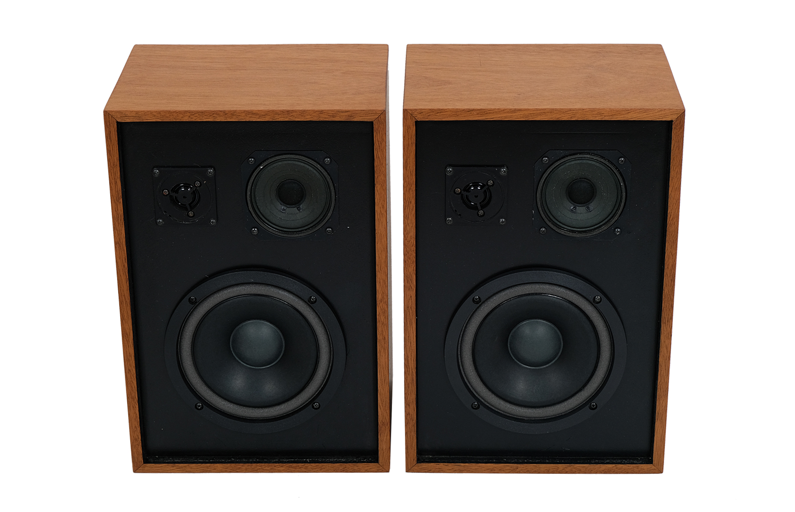 Obudowy zostały poddane całkowitej rewitalizacji. Egzotyczne drewno acajou, dodaje niesamowitego uroku kolumnom . Wykończenie drewna to olej chiński produkowany na bazie naturalnych olei. Drewno bardzo miłe w dotyku. Maskownice zrobione z ręcznie przeplatanego ratanu, zabezpieczone olejem.