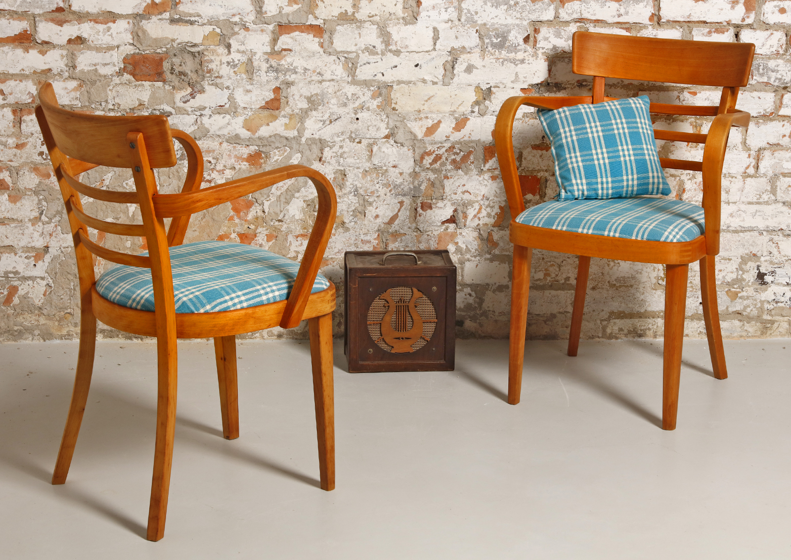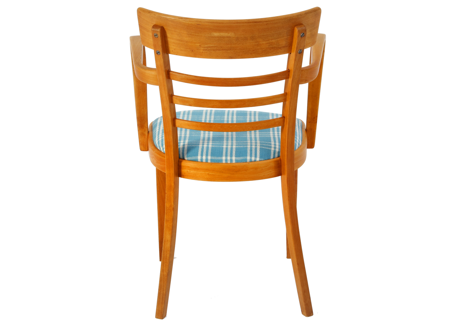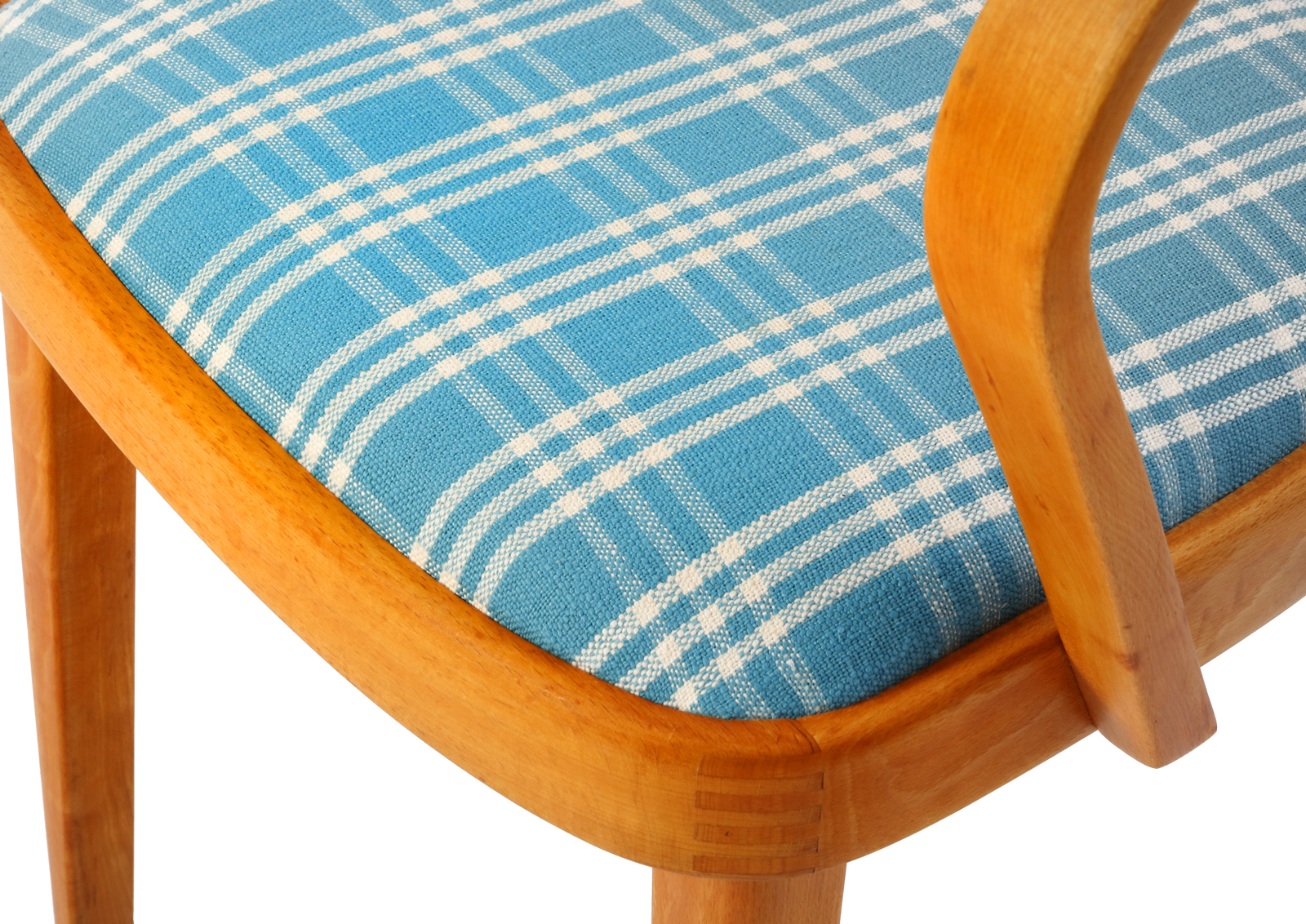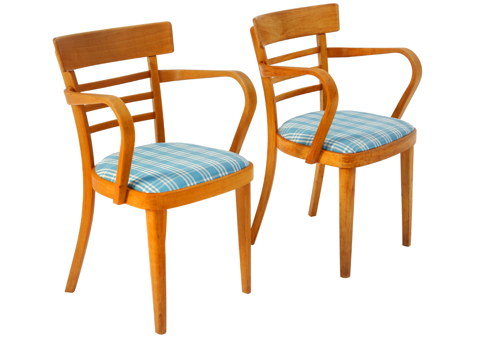 Krzesła zostały całkowicie rozebrane, drewno oczyszczone ze starych powłok, ponownie sklejone, zabezpieczone olejem na bazie naturalnych olei chińskich, przyjaznym dla środowiska. Nowa tapicerka, wymieniona gąbka. Bardzo dobrej jakości tkanina, odporność na ścieranie 50 000 suwów. Wykonane z drewna bukowego. Bardzo wygodne, świetnie wyprofilowane do biurka.