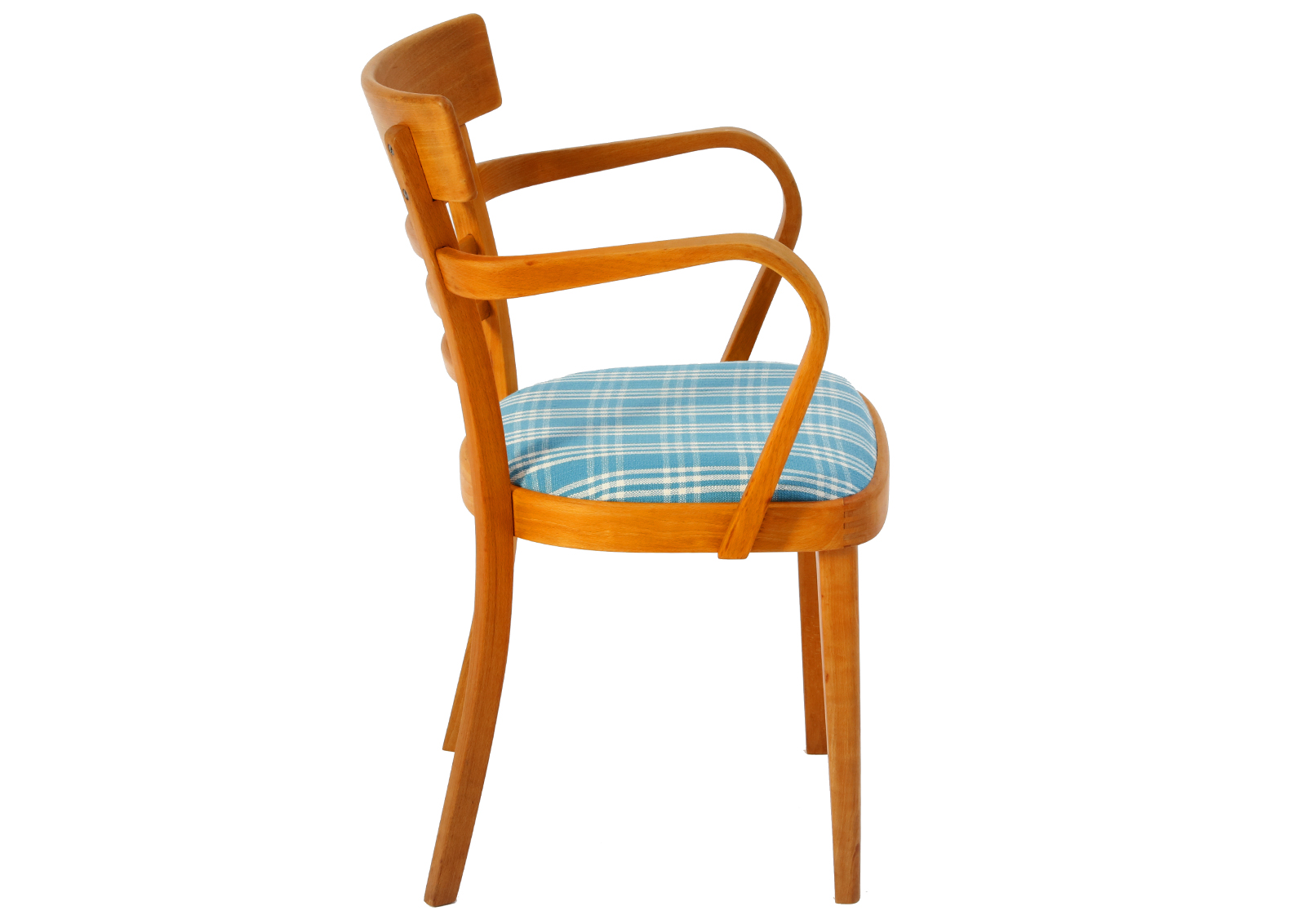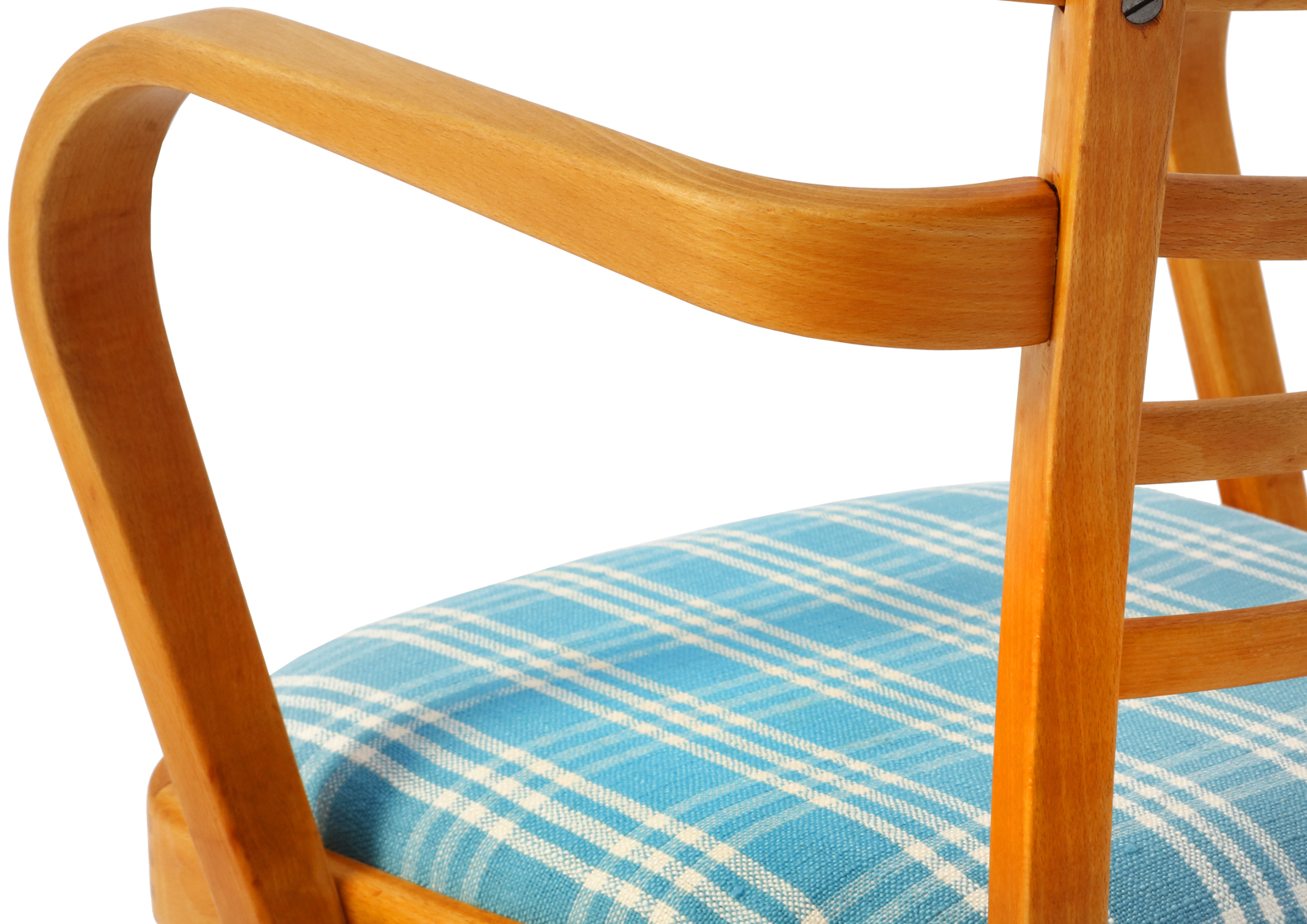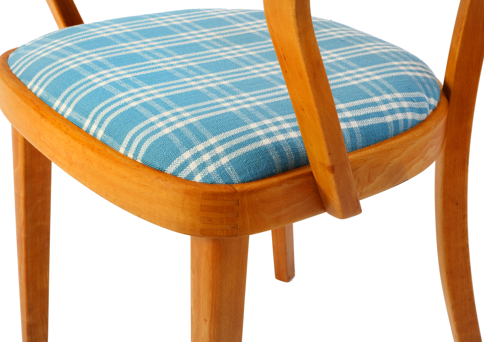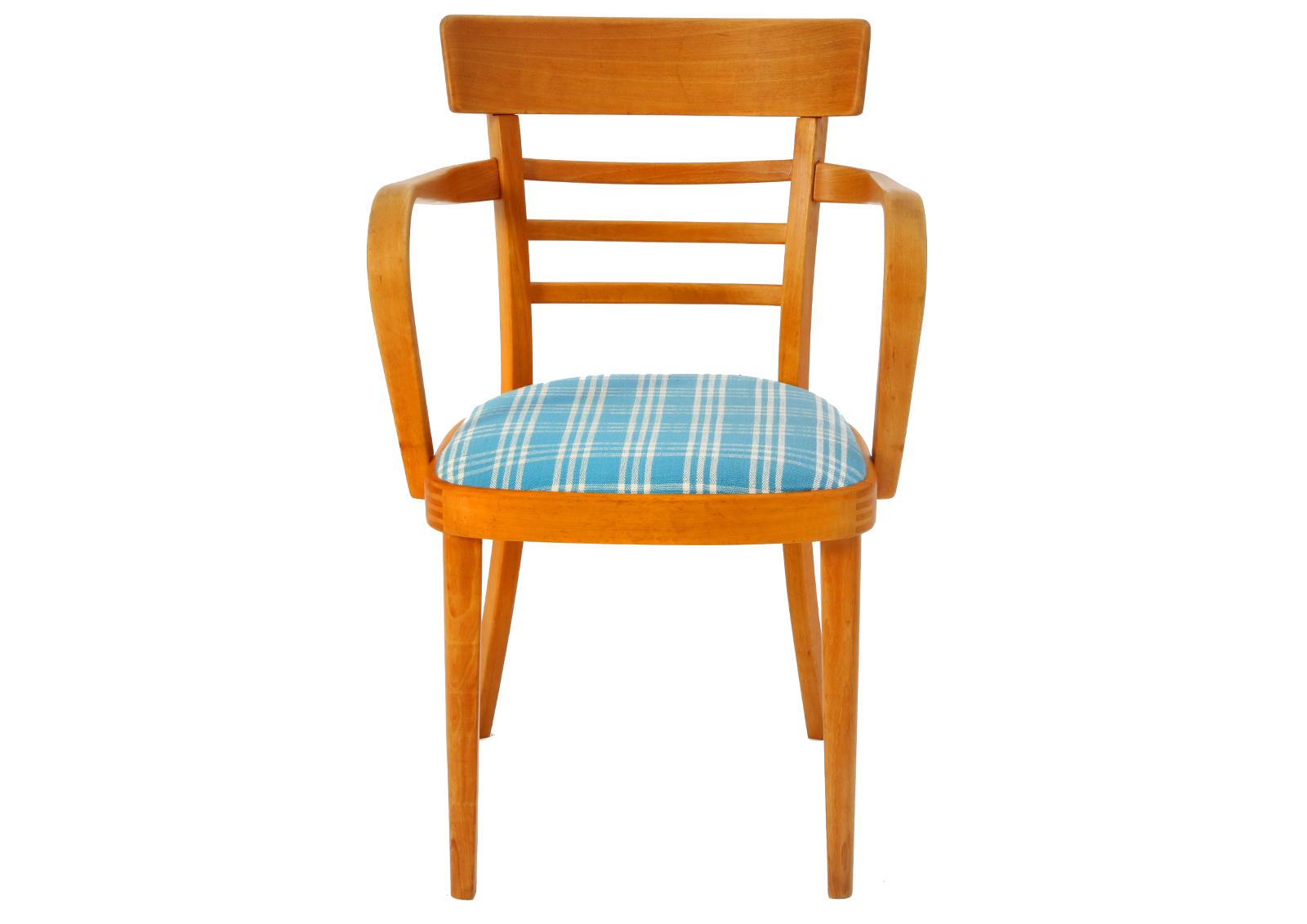 Krzesła zostały całkowicie rozebrane, drewno oczyszczone ze starych powłok, ponownie sklejone, zabezpieczone olejem na bazie naturalnych olei chińskich, przyjaznym dla środowiska. Nowa tapicerka, wymieniona gąbka. Bardzo dobrej jakości tkanina, odporność na ścieranie 50 000 suwów. Wykonane z drewna bukowego. Bardzo wygodne, świetnie wyprofilowane do biurka.