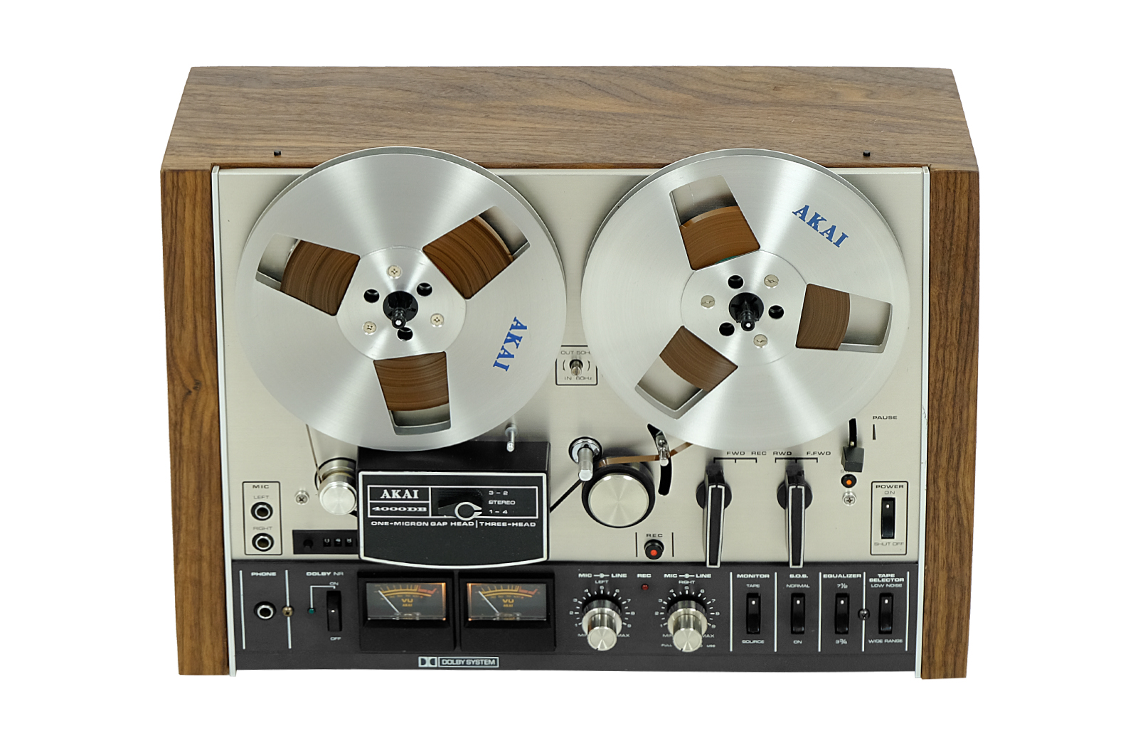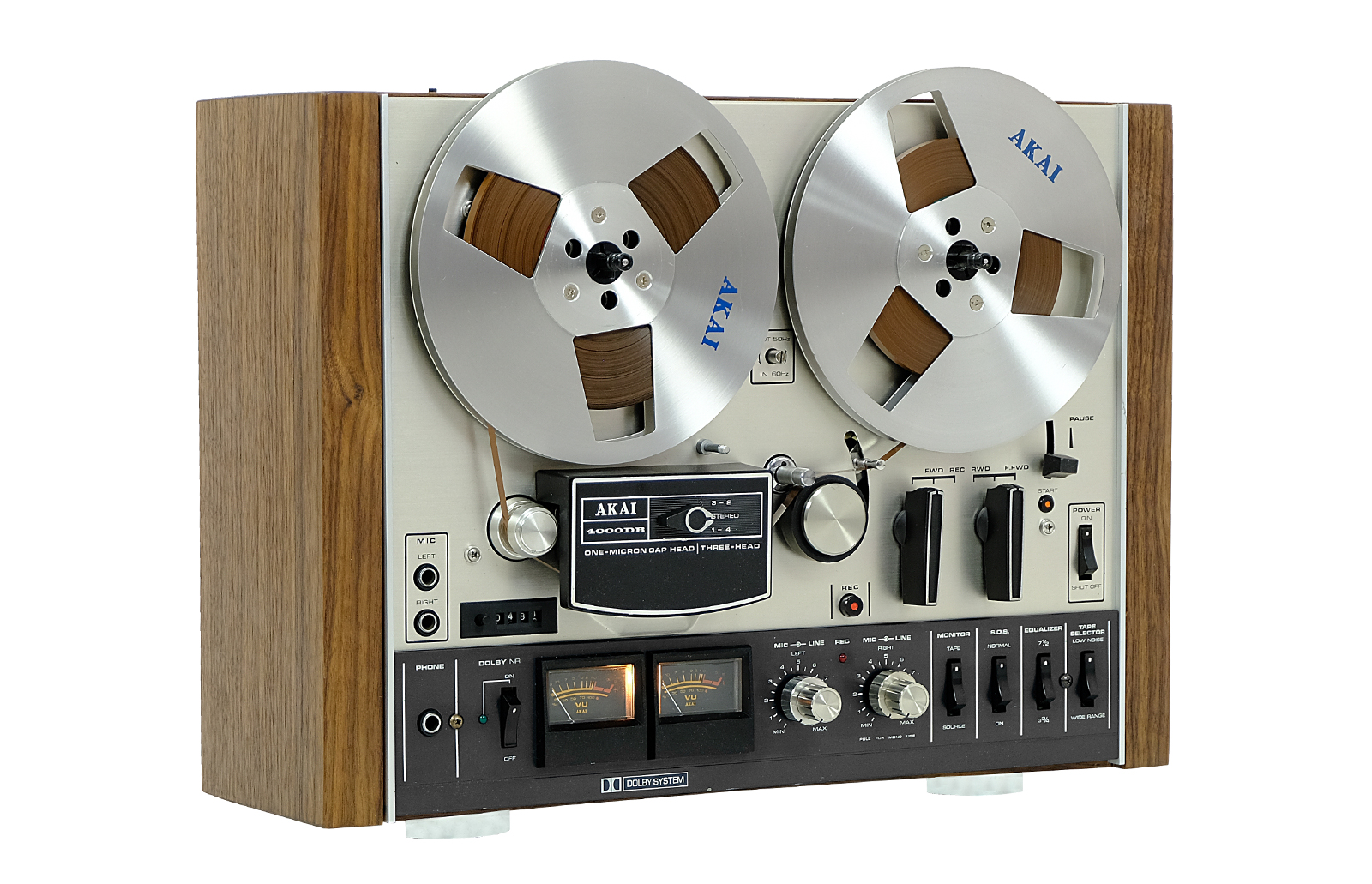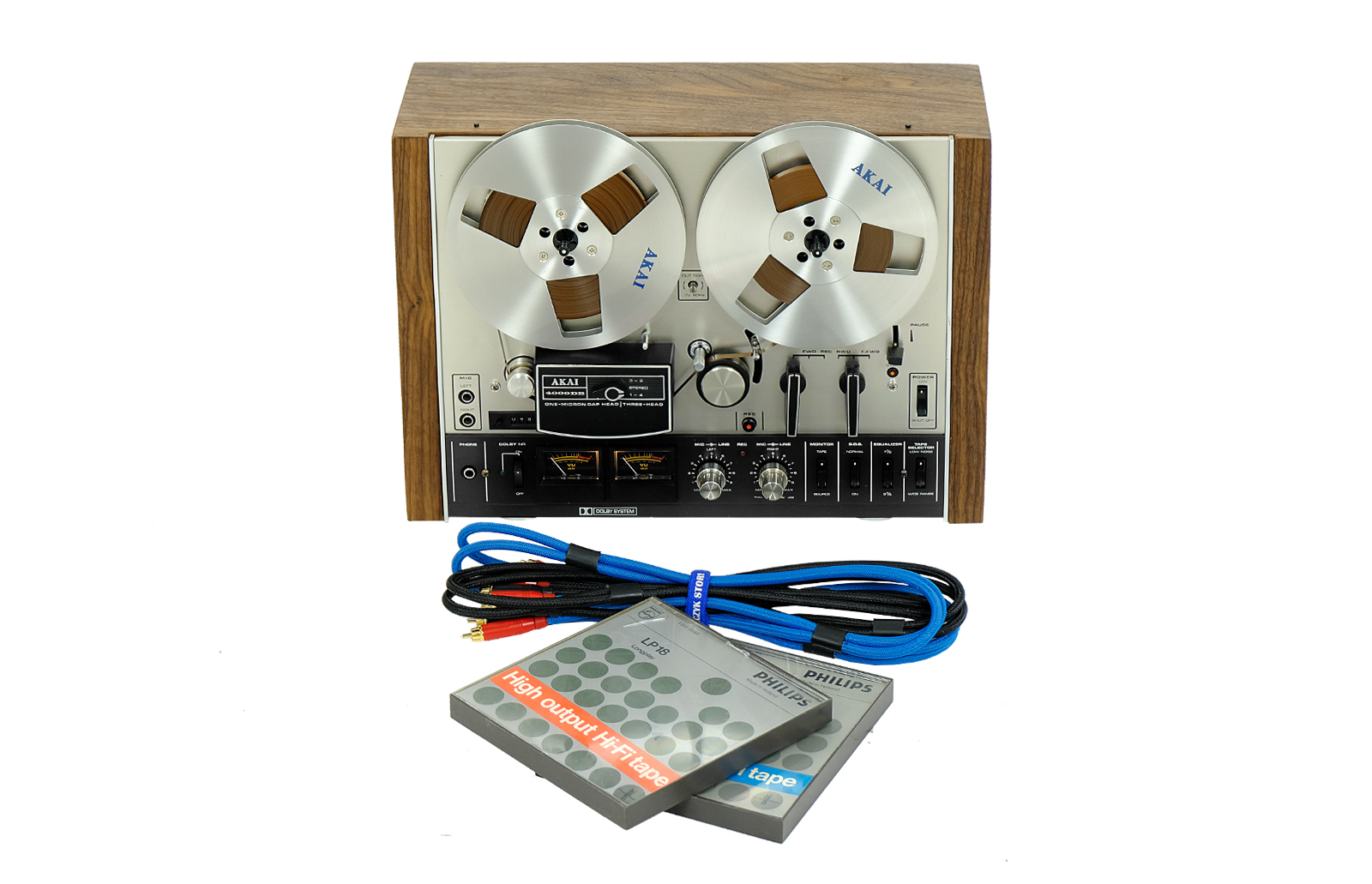 Magnetofon szpulowy 4000 DB, to jeden z pierwszych klasycznych modeli AKAI – firmy, która miała ogromny wkład w rozwój rynku “szpulowców”. Jest to niezwykle solidny i długowieczny magnetofon jednosilnikowy wyposażony w trzy głowice Akai o grubości jednego mikrona zapewniające bardzo wysoką jakość i czystość dźwięku, oraz dobrze znany system redukcji szumów Dolby. Świetnie zaprojektowane koła zamachowe w modelu zapewniają stabilne przesuwanie taśmy zmniejszając drgania i trzepotanie.