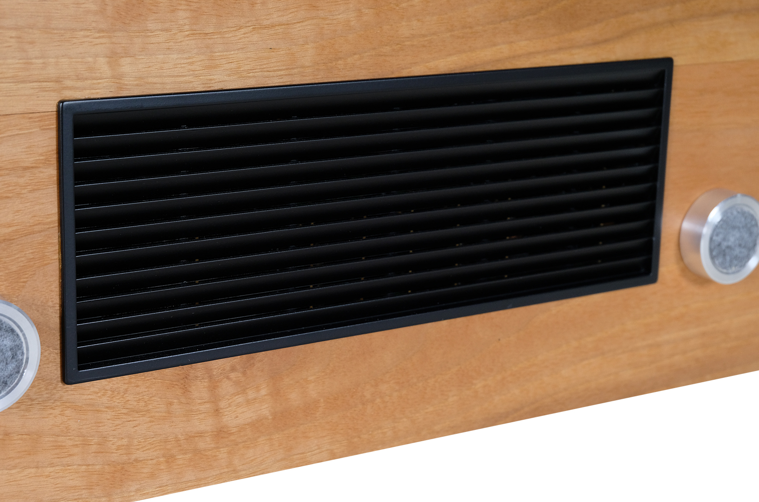 Prezentowany model został wyposażony w nową zaprojektowaną (na bazie starej), w stylu “złotego wieku audio” obudowę wykonaną z drewna orzecha włoskiego, co nadaje urządzeniu wyjątkowo klasyczny i elegancki wygląd.