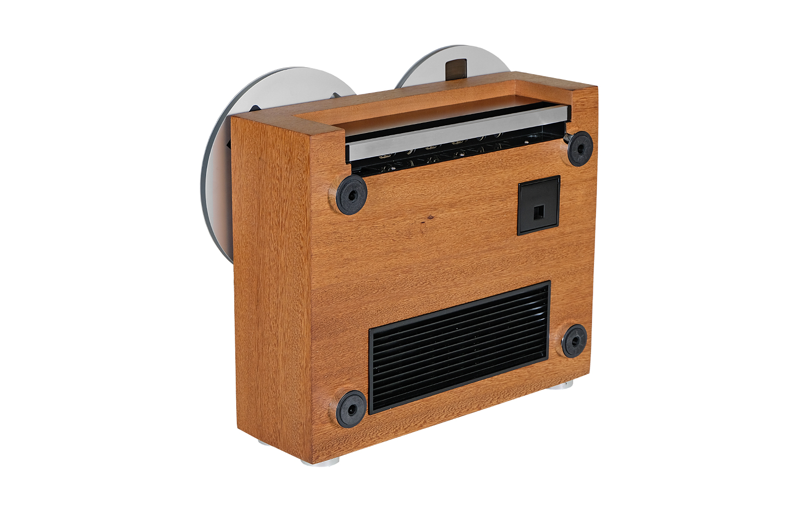 Prezentowany model został wyposażony w nową zaprojektowaną (na bazie starej), w stylu “złotego wieku audio” obudowę wykonaną z drewna egzotycznego Iroko z rodziny Meranti, co nadaje urządzeniu wyjątkowo klasyczny i elegancki wygląd.